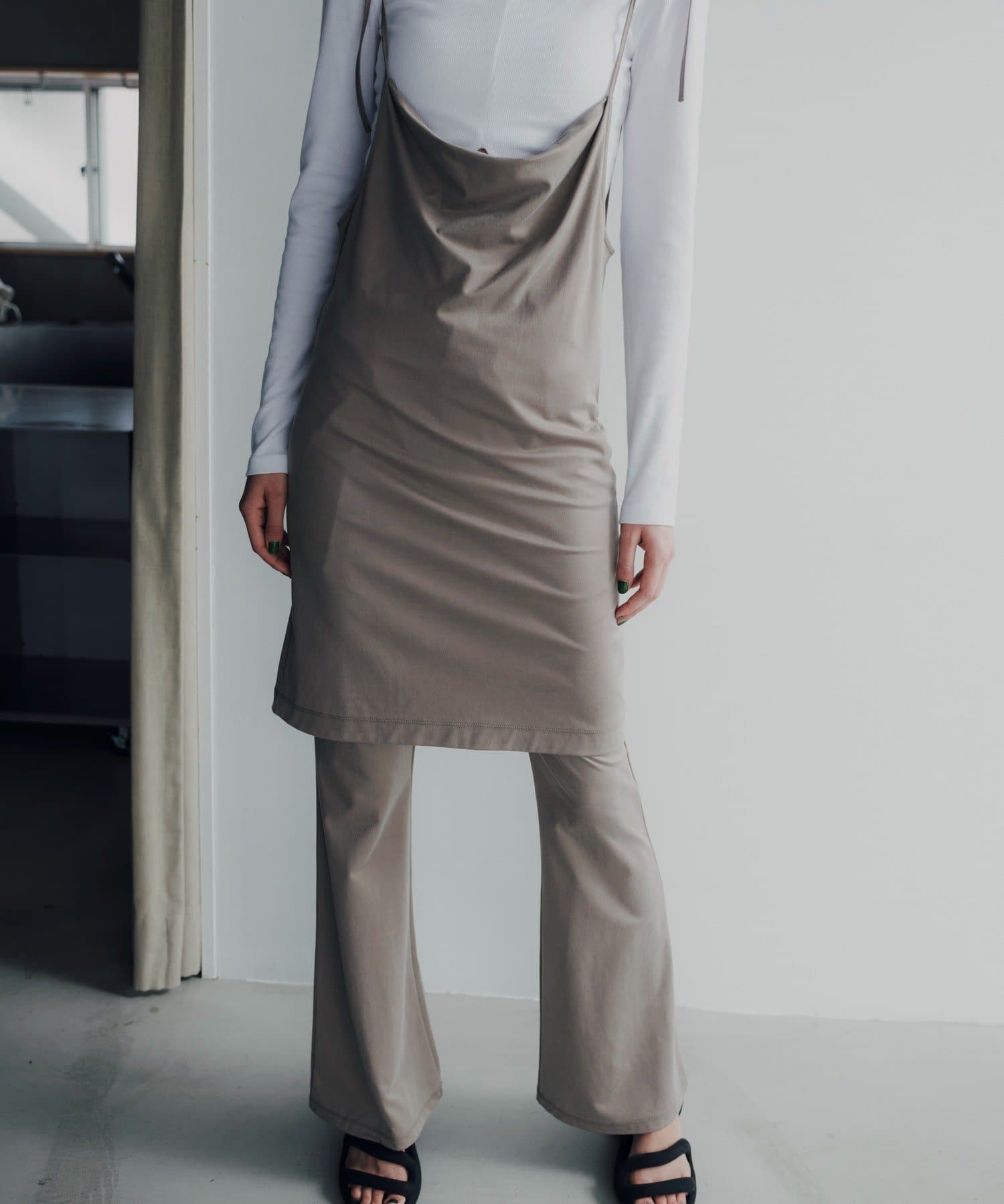 同素材でSETUP着用いただけるキャミソールタイプと、サイドにマチが付いたワイドパンツ、クロップドのフレアパンツを展開します。