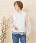 prose verse(プロズヴェール) 花柄レースシャーリングネックブラウス