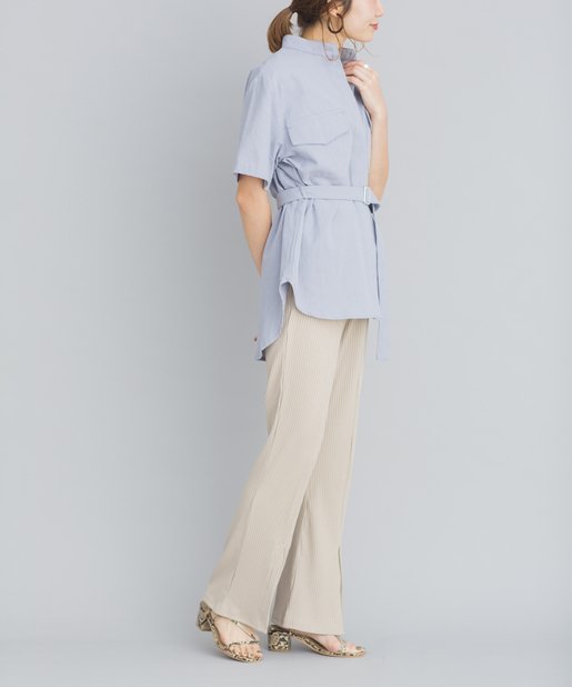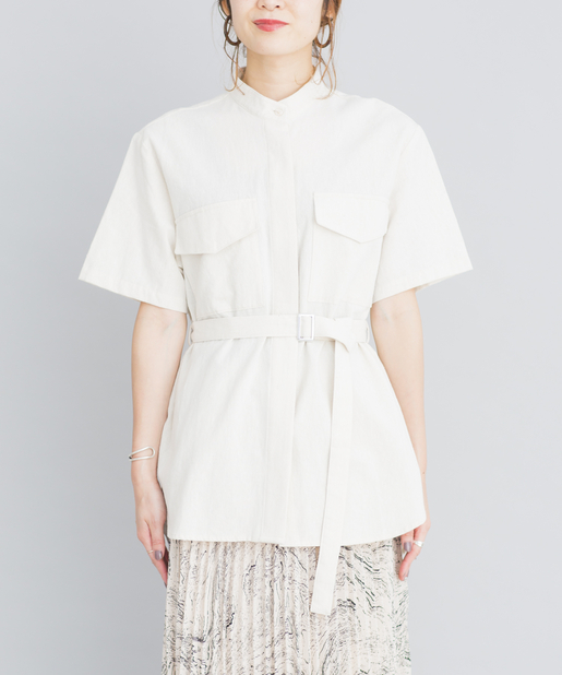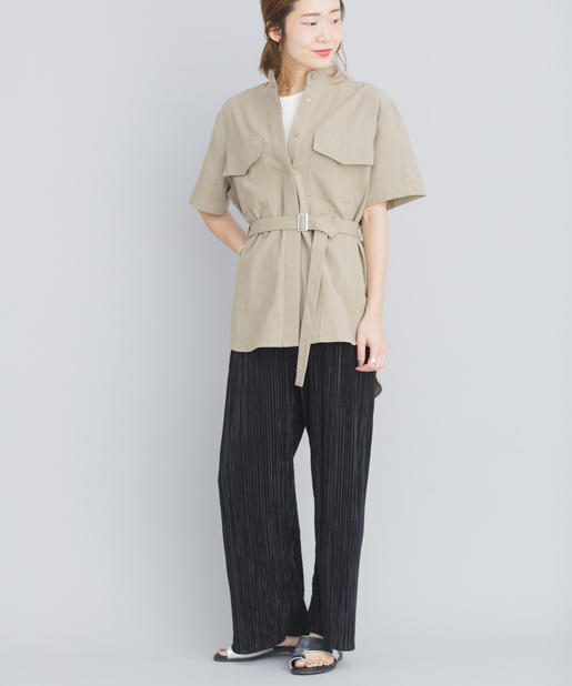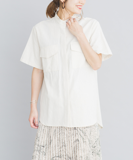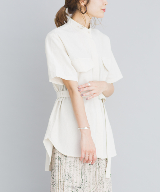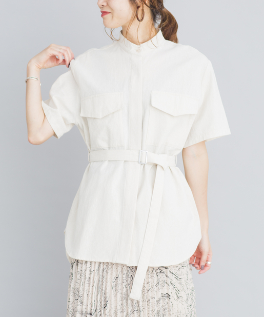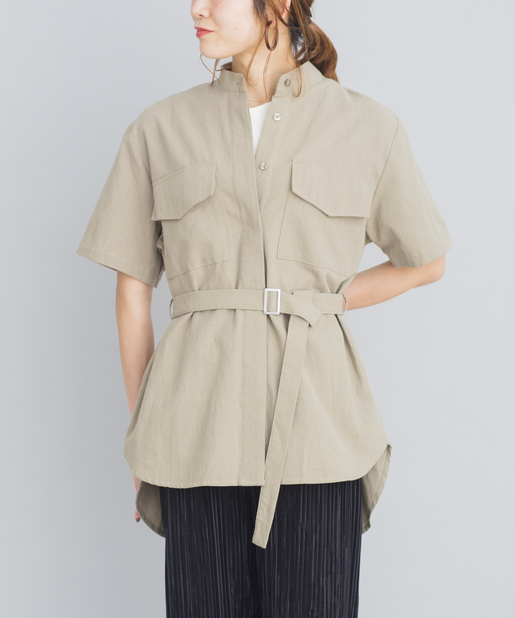 《WEB限定》【大人コーデに取り入れたい】綿麻サファリシャツ