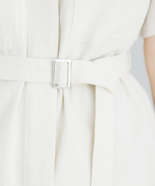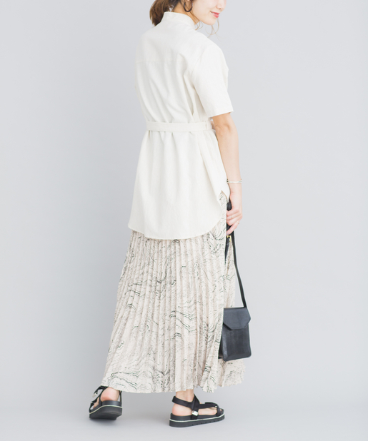 ●メンズライクな印象ながら付属の共地リボンベルトで