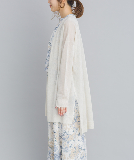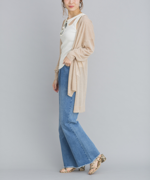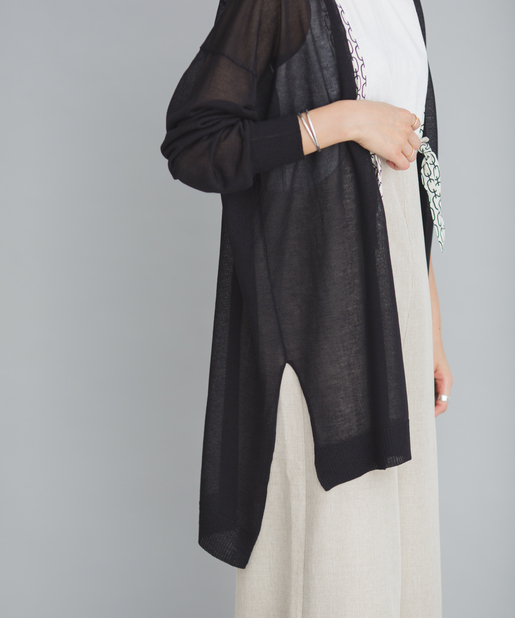●程良い透け感のあるシアー素材が旬なロング丈のカーディガン