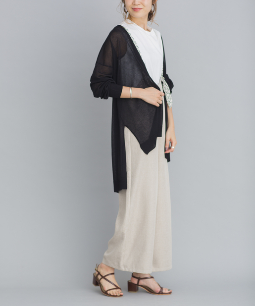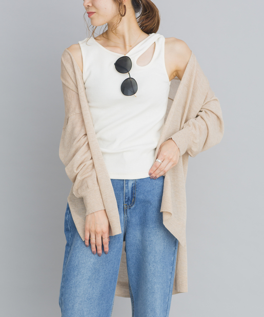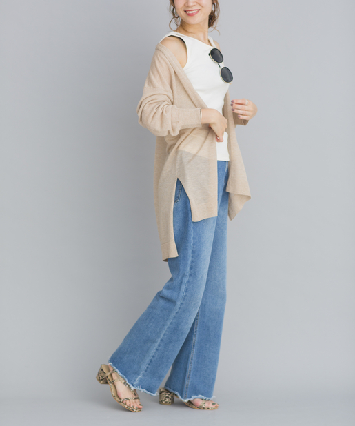羽織るだけで旬顔のシアーニットカーディガン!