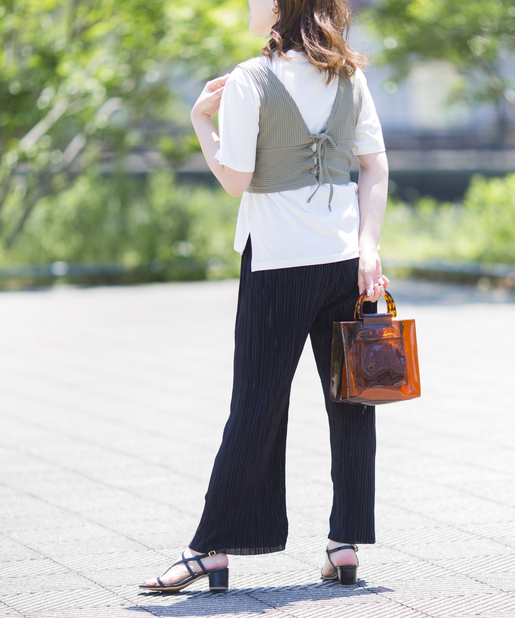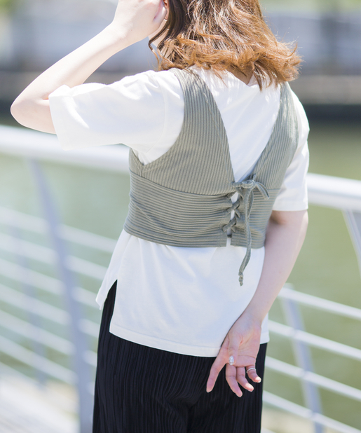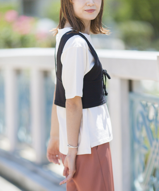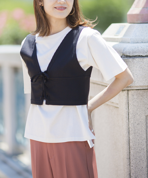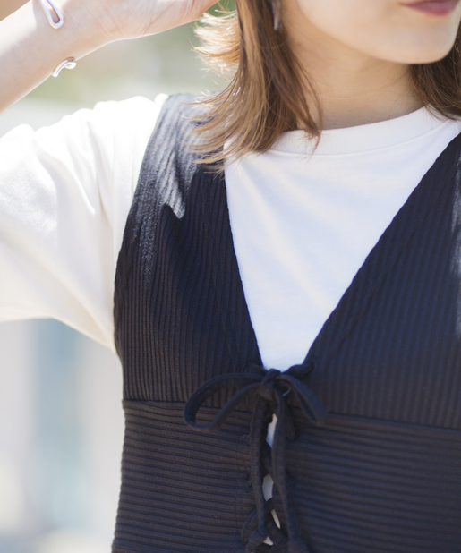 ●テレコリブ素材のビスチェとシンプルな