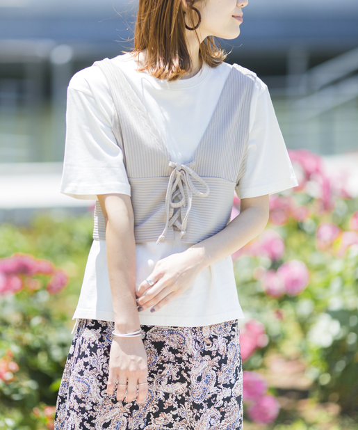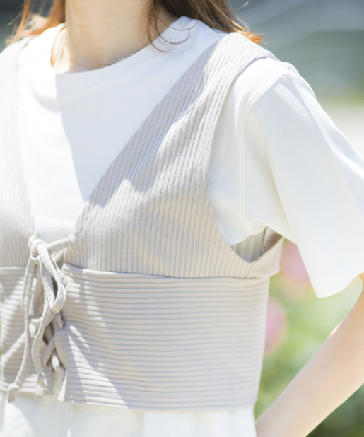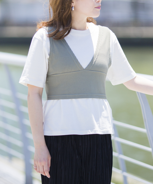 【嬉しいプチプラセットアイテム】ビスチェ×スリット入りシンプルTシャツ
