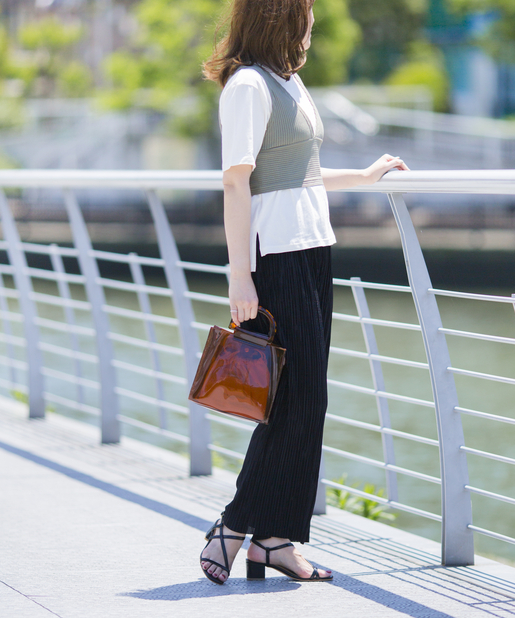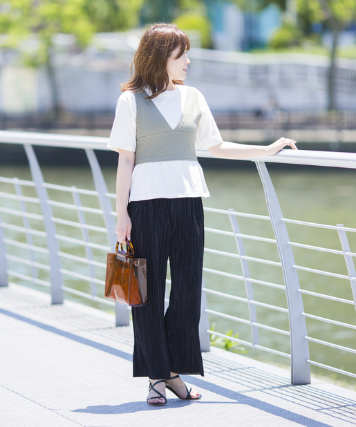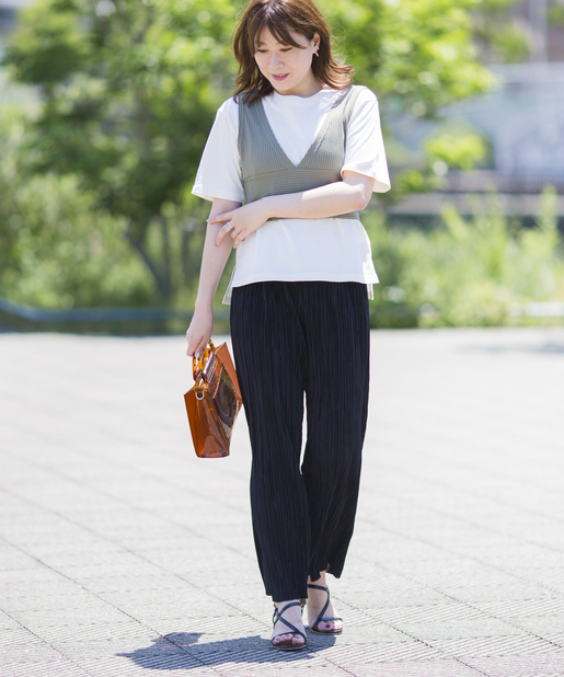 ・トレンドのリブパンツやプリーツパンツと合わせて