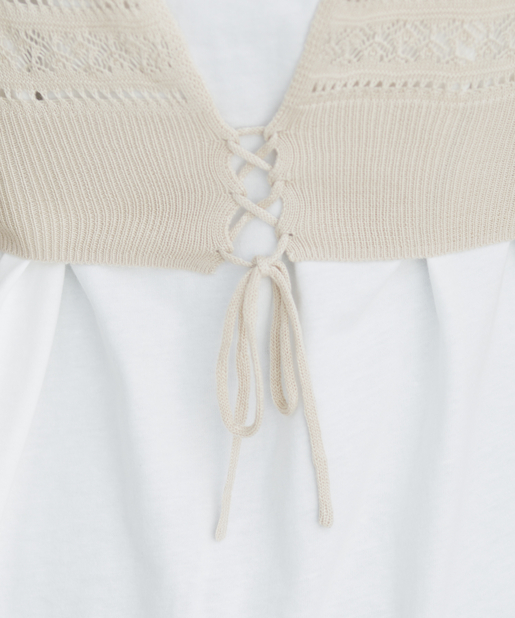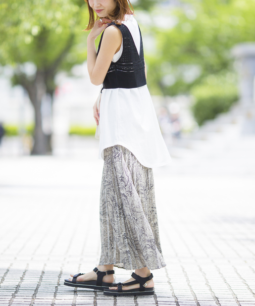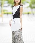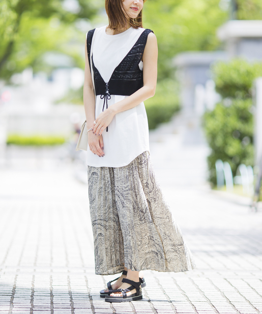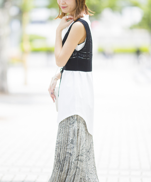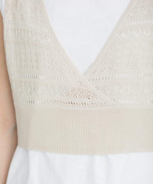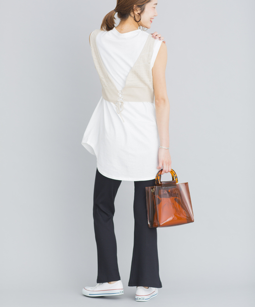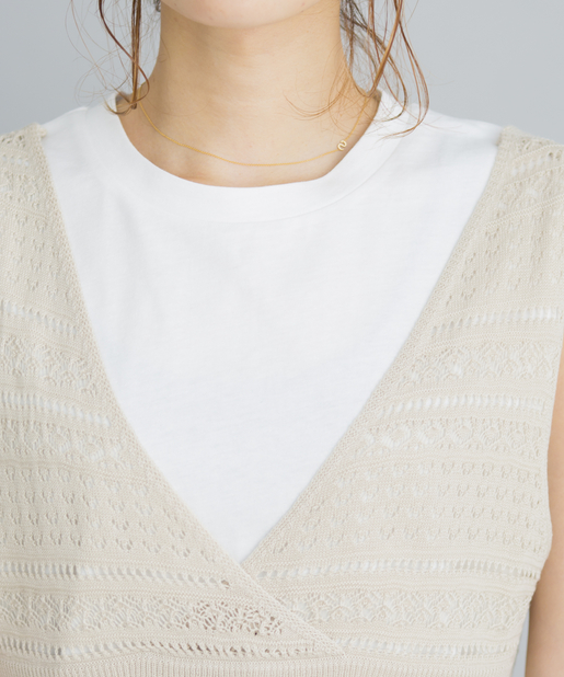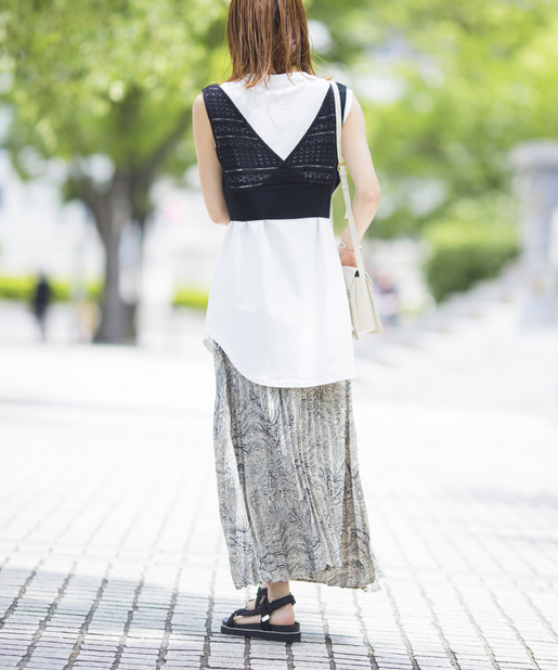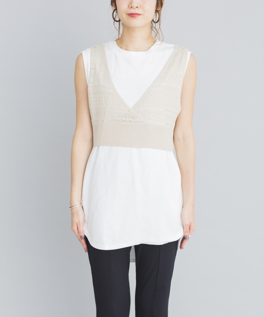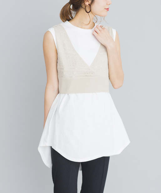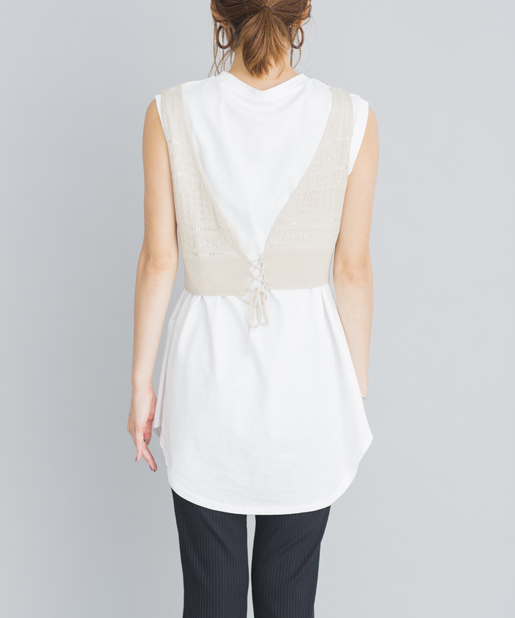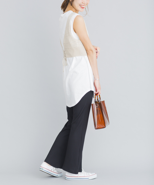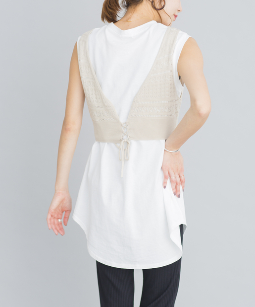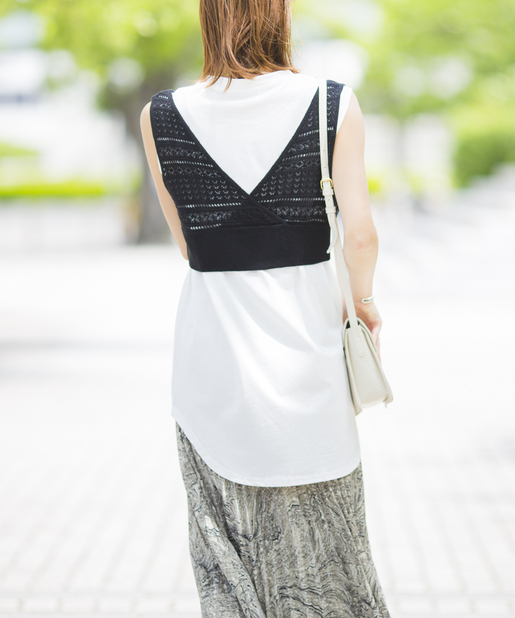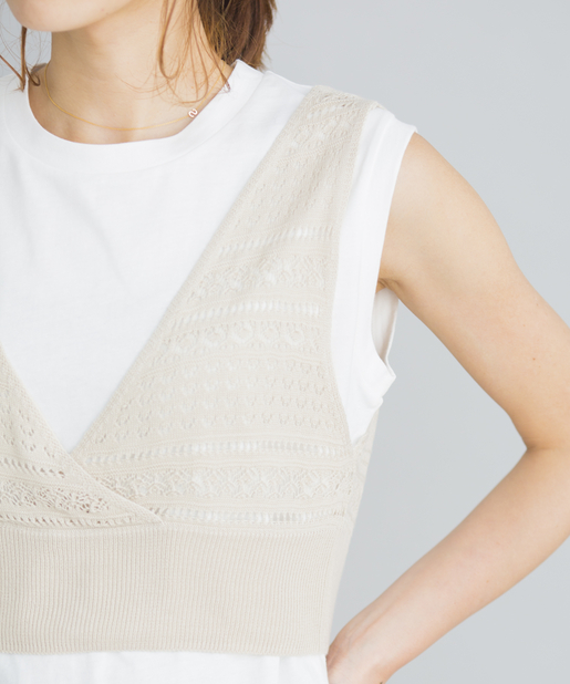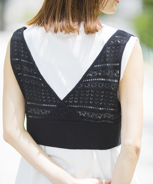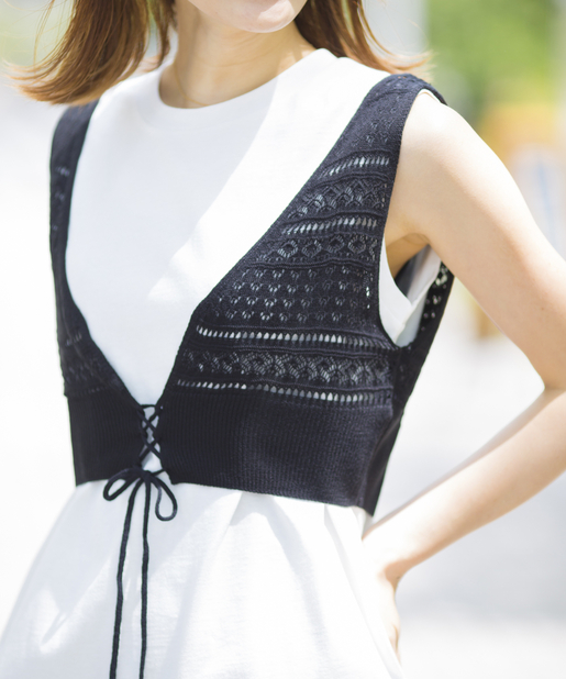●トレンドの透かし編みニットのビスチェとシンプルな