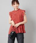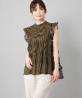 【女性らしさを演出】袖フリル消しプリーツプチハイネックブラウス