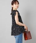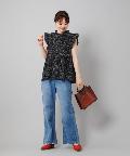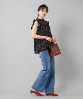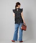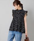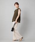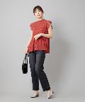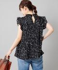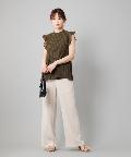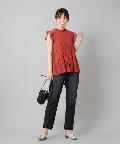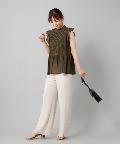 ●プチハイネックや袖のフリルがレディな印象を与えるブラウス