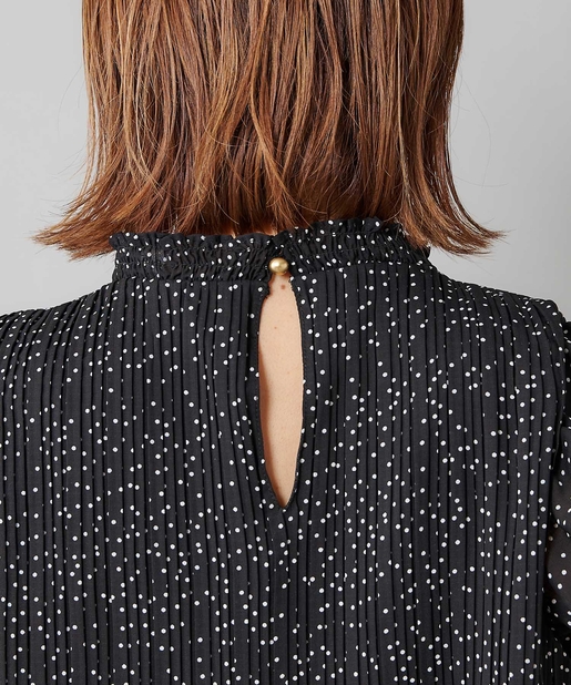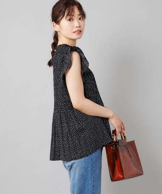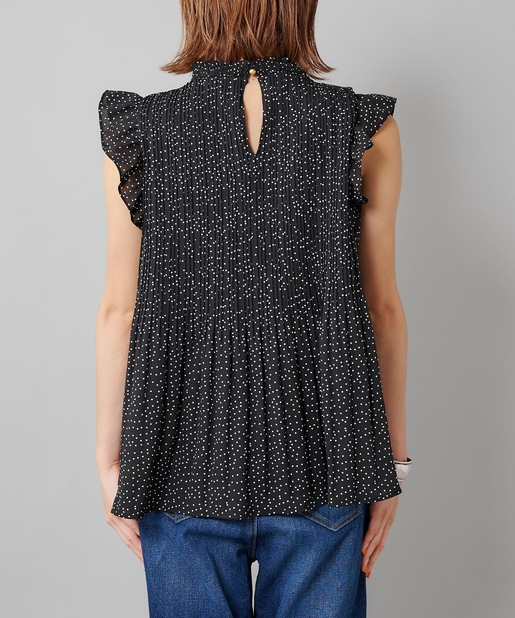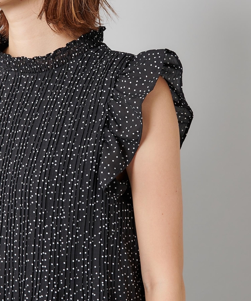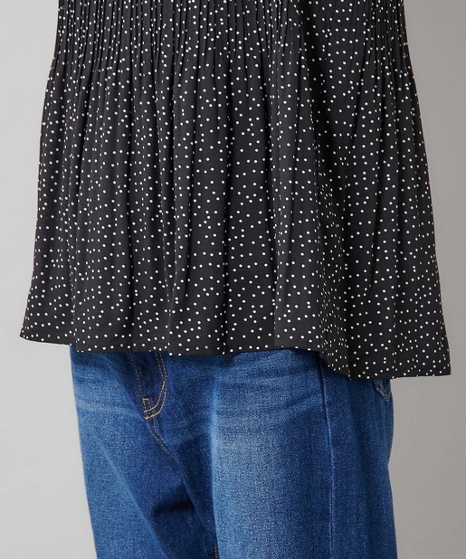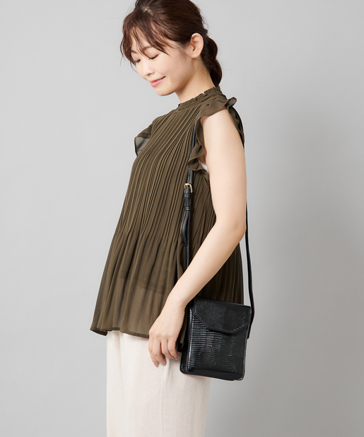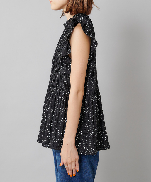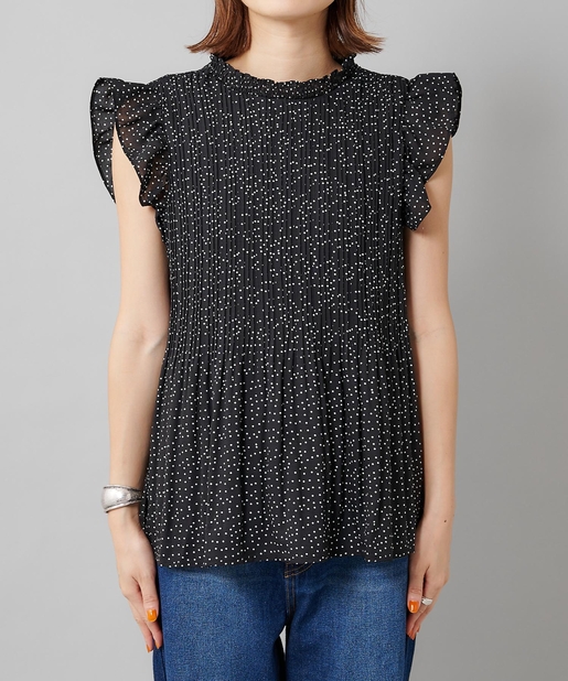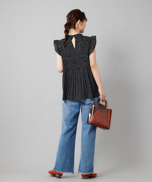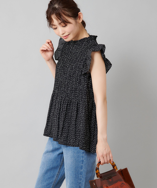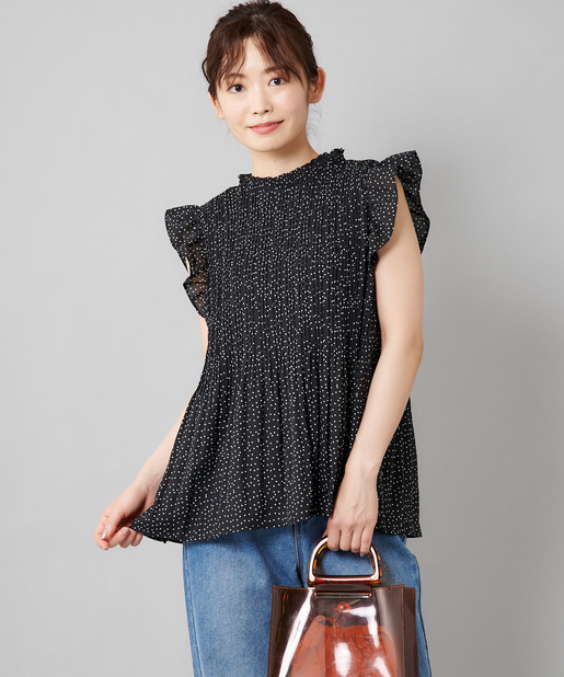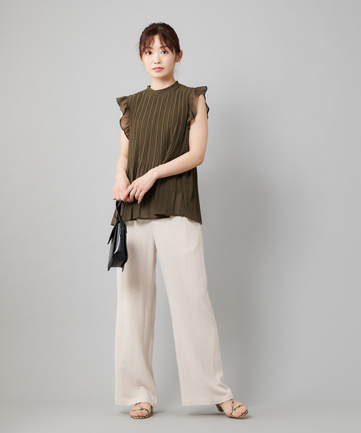 【女性らしさを演出】袖フリル消しプリーツプチハイネックブラウス