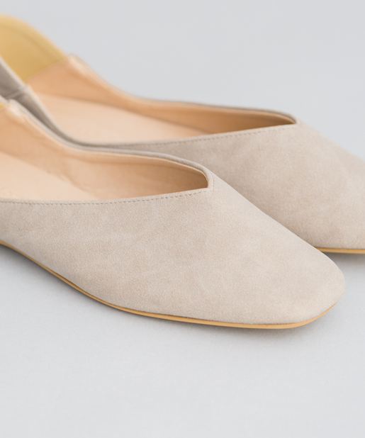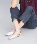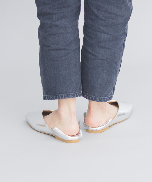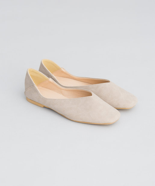 【かかとを踏める2wayデザイン】Vカットバブーシュフラットシューズ
