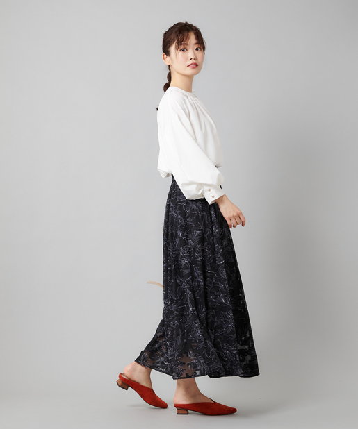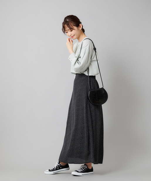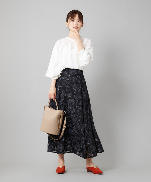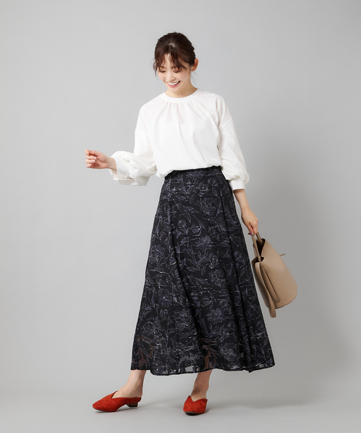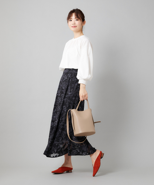 ・フレアスカートと合わせて女性らしいスタイリング