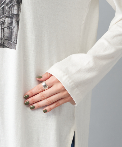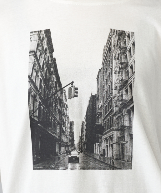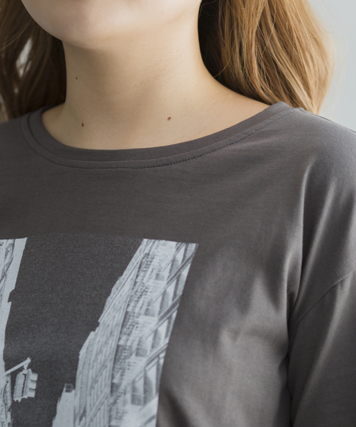 ●アーティスティックな街並みのプリントが目を引くロングTシャツ