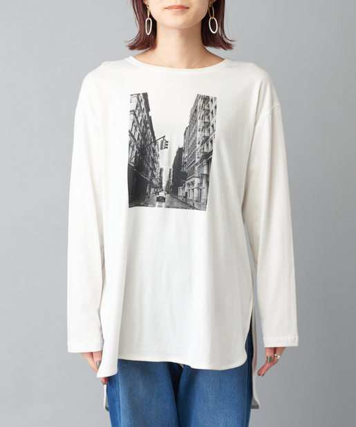 TOP > prose verse > レディース > トップス > Tシャツ/カットソー > 【前後ヘムデザイン】街並み転写プリントロングスリーブTシャツ
