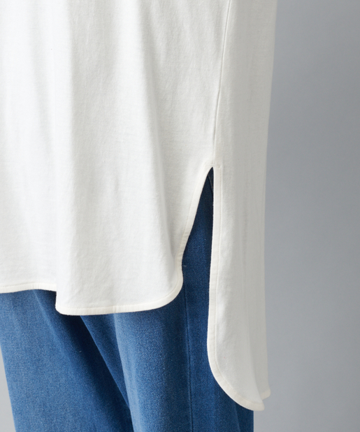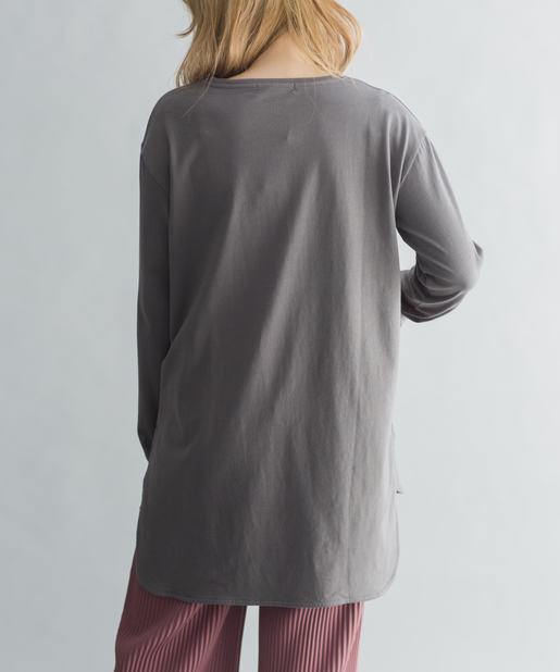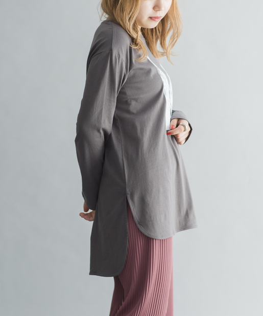 ●前後イレギュラーヘムデザインで、後ろの方が着丈が長いので