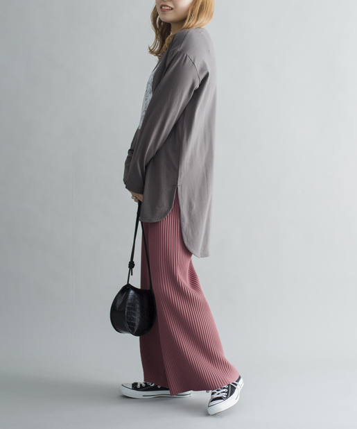 ・お尻が隠れる長めの丈なので、タイトなボトムとも好相性