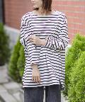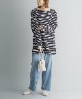 • prose verse(プロズヴェール) 【ゆるっとシルエット】前後2WAYラウンドヘムボーダーロングTシャツ