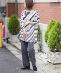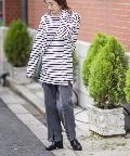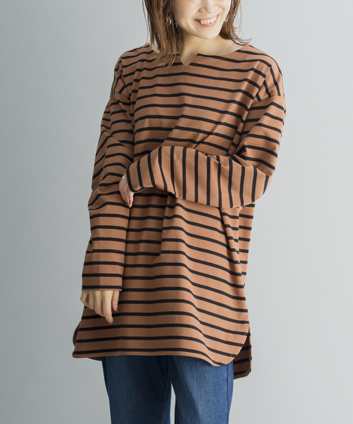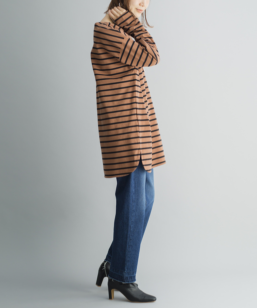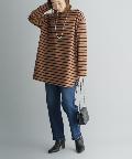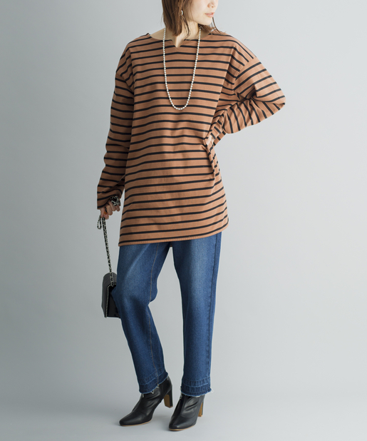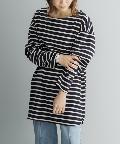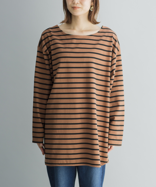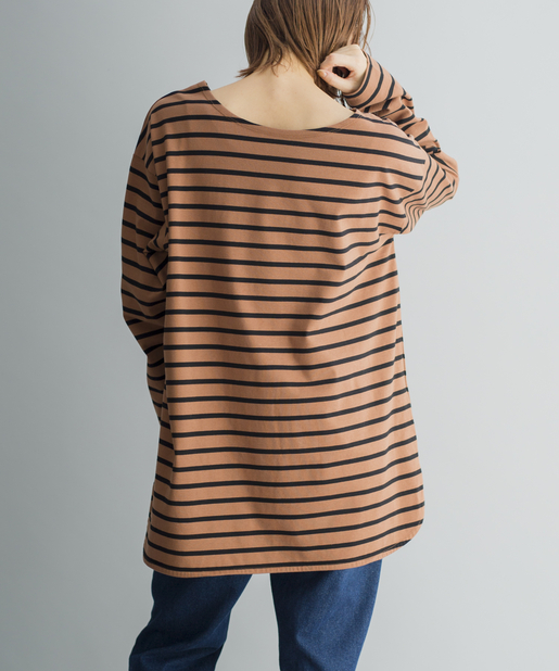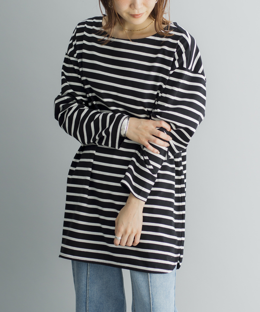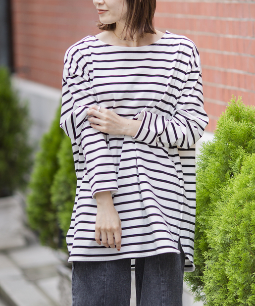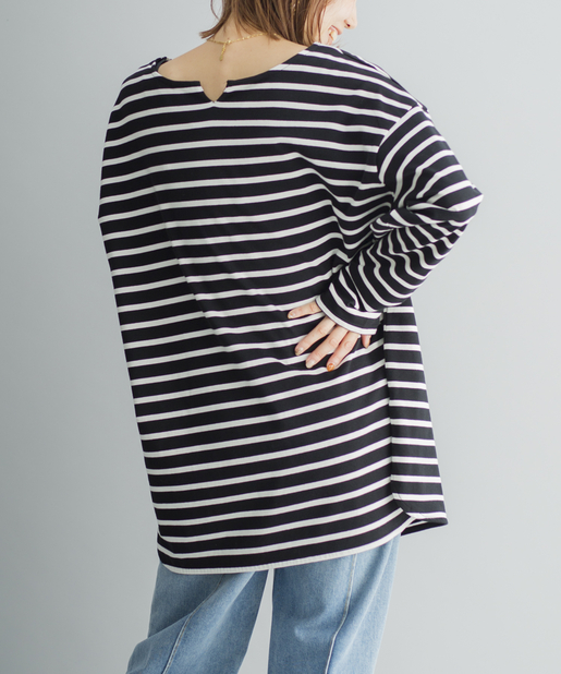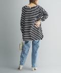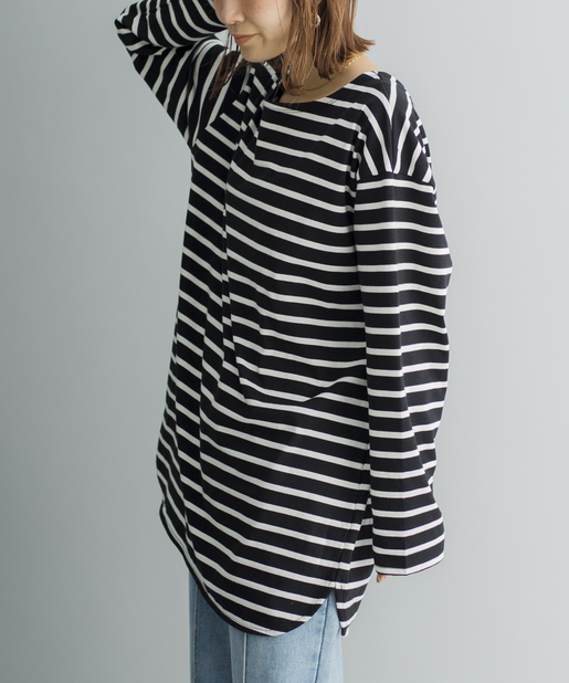 【ゆるっとシルエット】前後2WAYラウンドヘムボーダーロングTシャツ