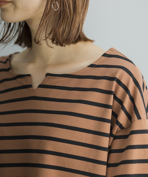 TOP > prose verse > レディース > トップス > Tシャツ/カットソー > 【ゆるっとシルエット】前後2WAYラウンドヘムボーダーロングTシャツ