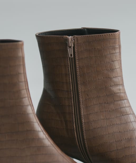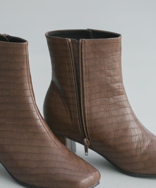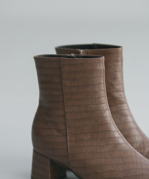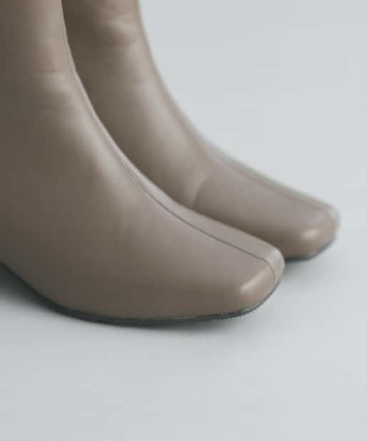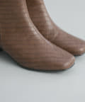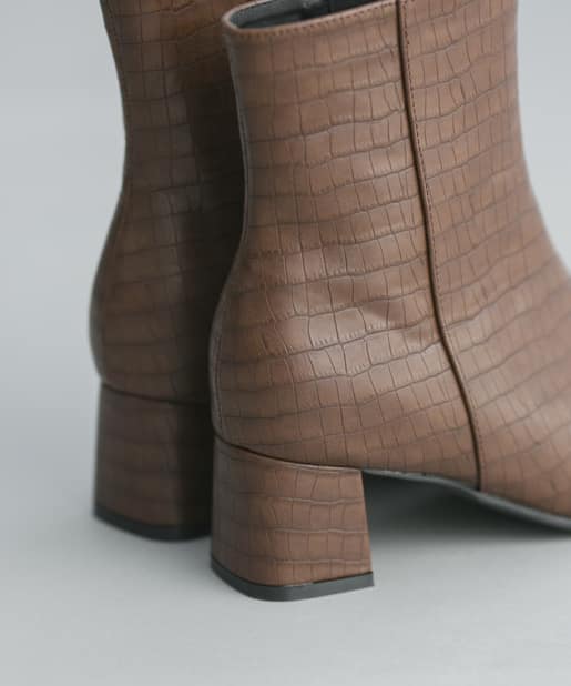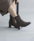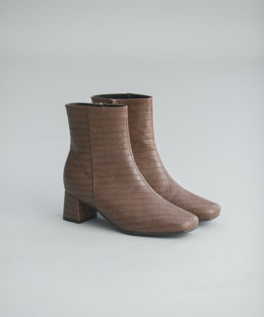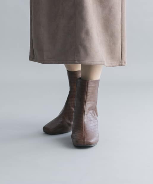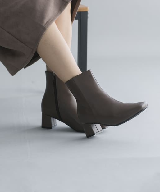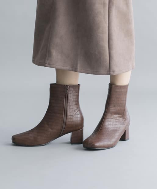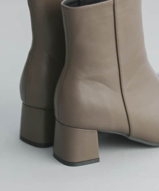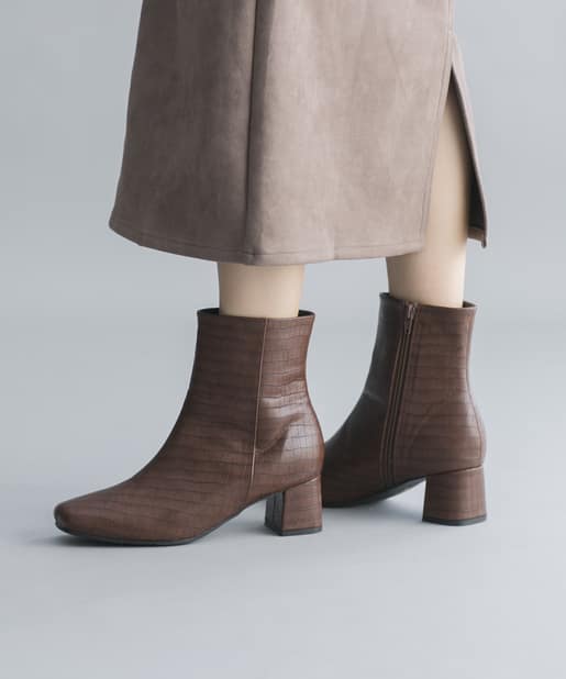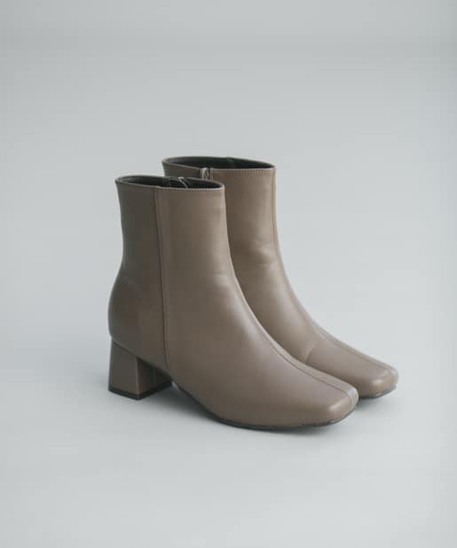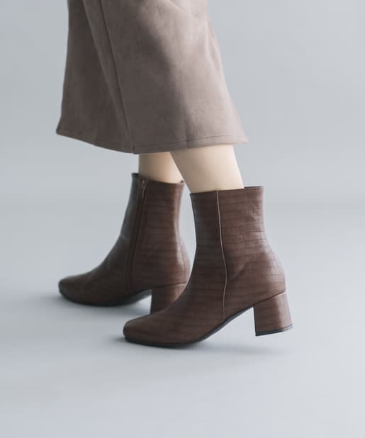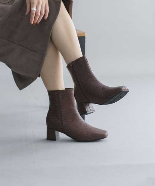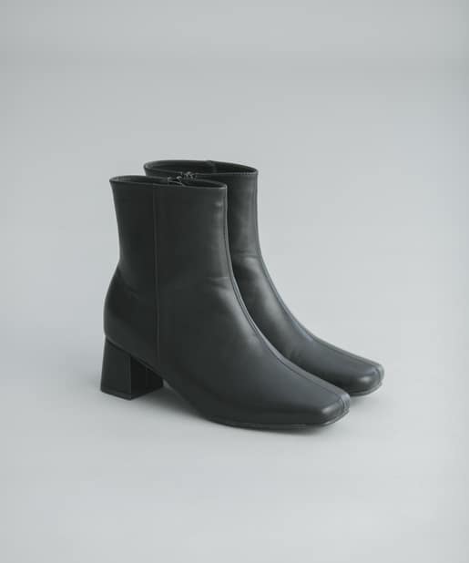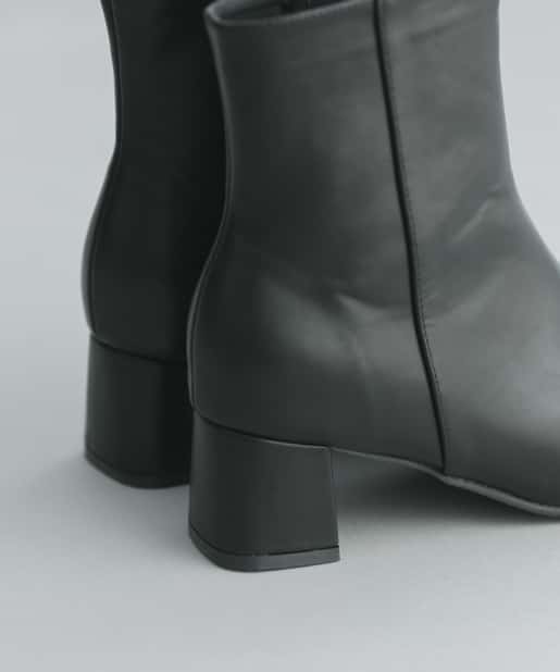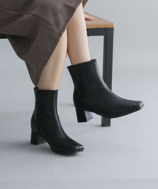 【安定感のある太ヒール】フェイクレザースクエアトゥミドル丈ブーツ