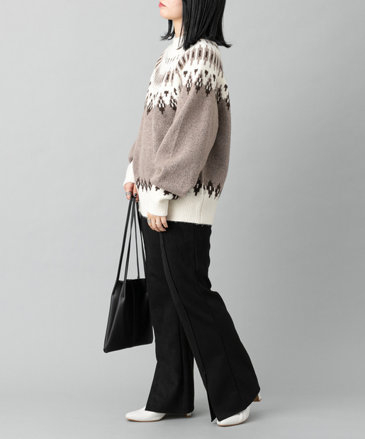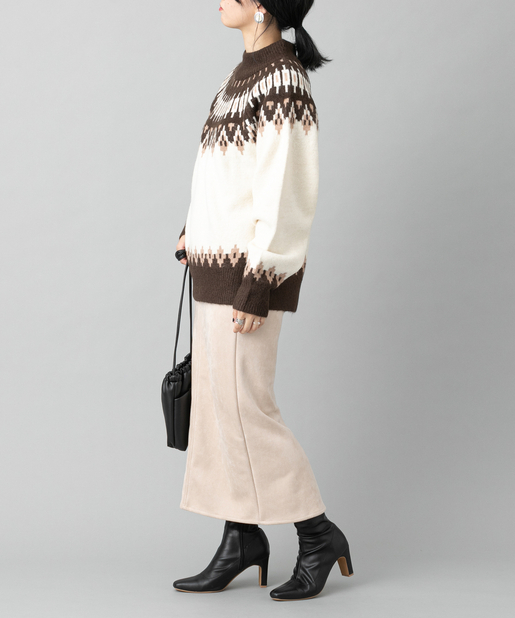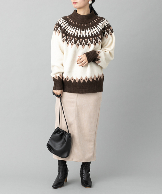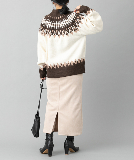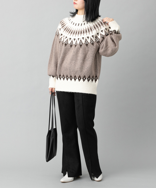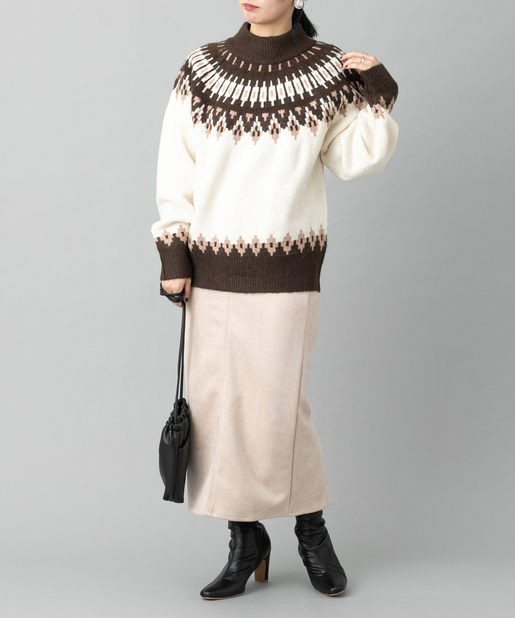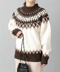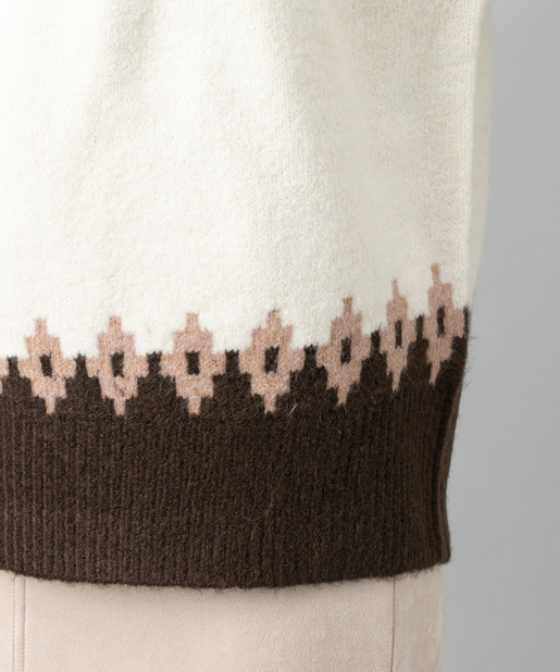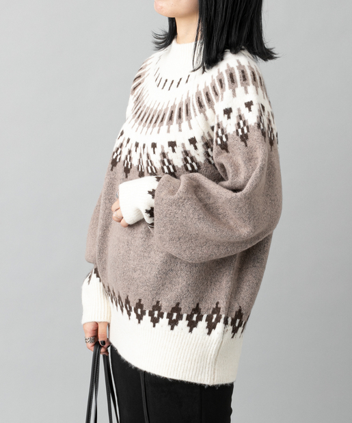●首元に施されたノルディック柄が目を惹くニットプルオーバー
