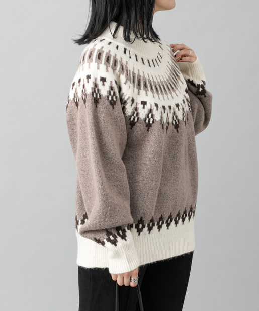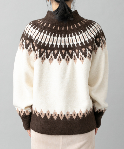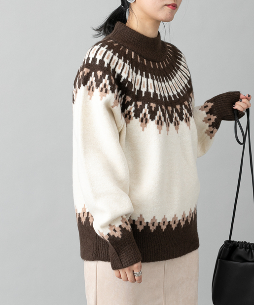 【秋冬の定番】ノルディック柄ハイネックニットプルオーバー