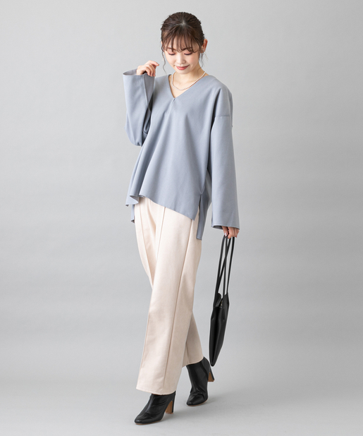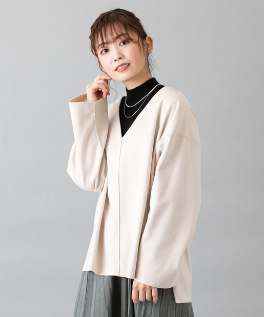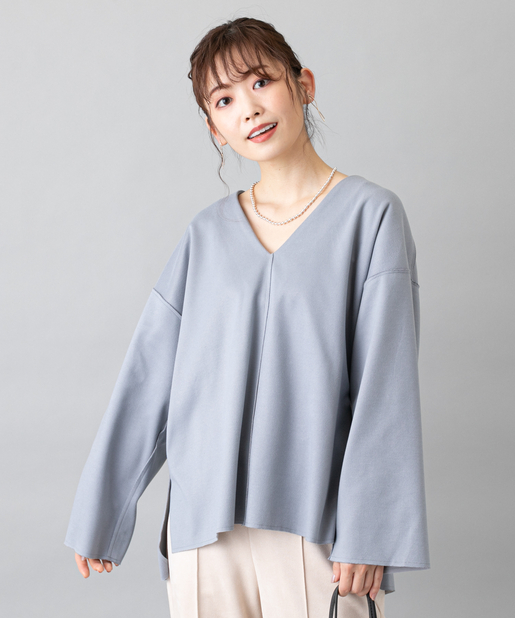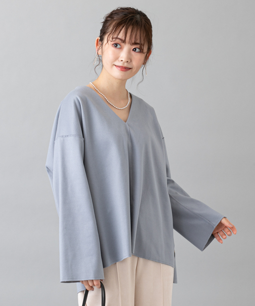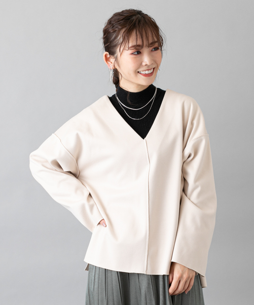 ●程よい開きのVネックなので顔回りをスッキリ見せてくれます