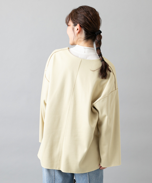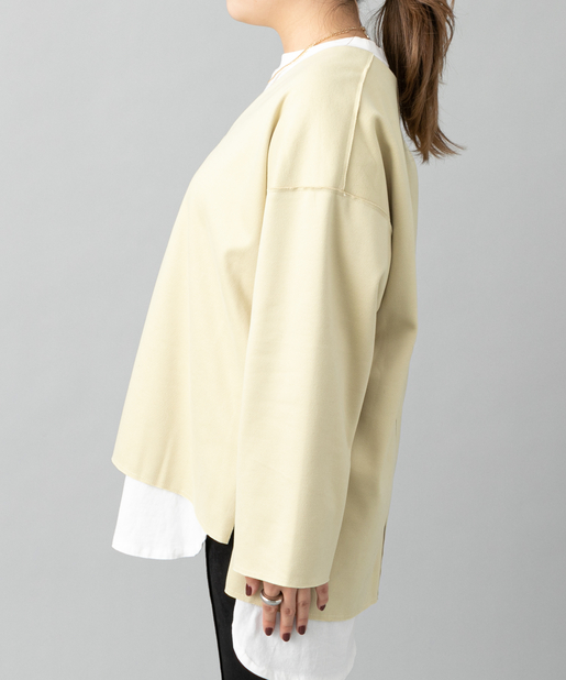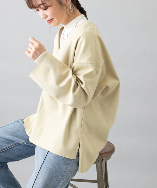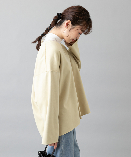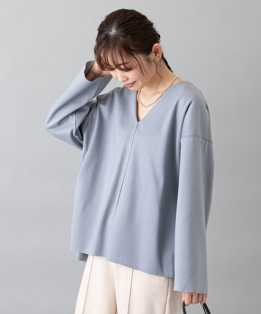 【ウォーム感のある微起毛素材】カルゼボンディングVネックプルオーバー