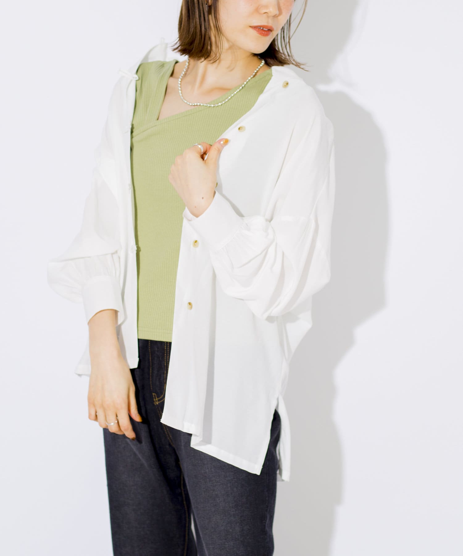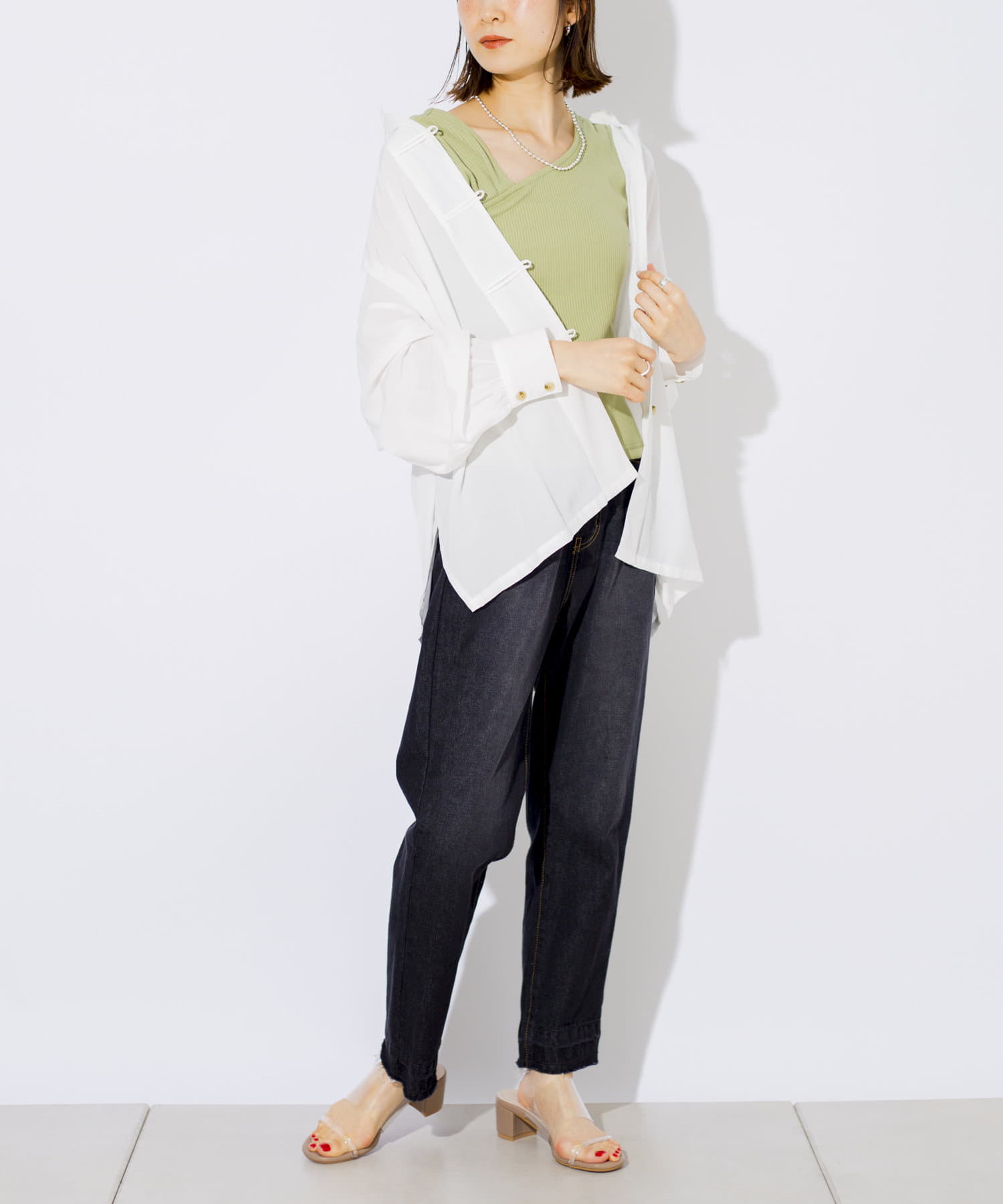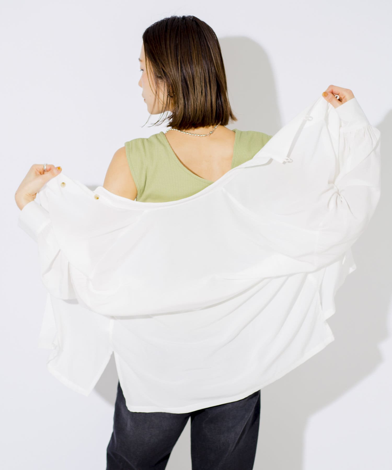 ・上からシャツやシアーシャツを羽織ったトレンド感のあるコーデ