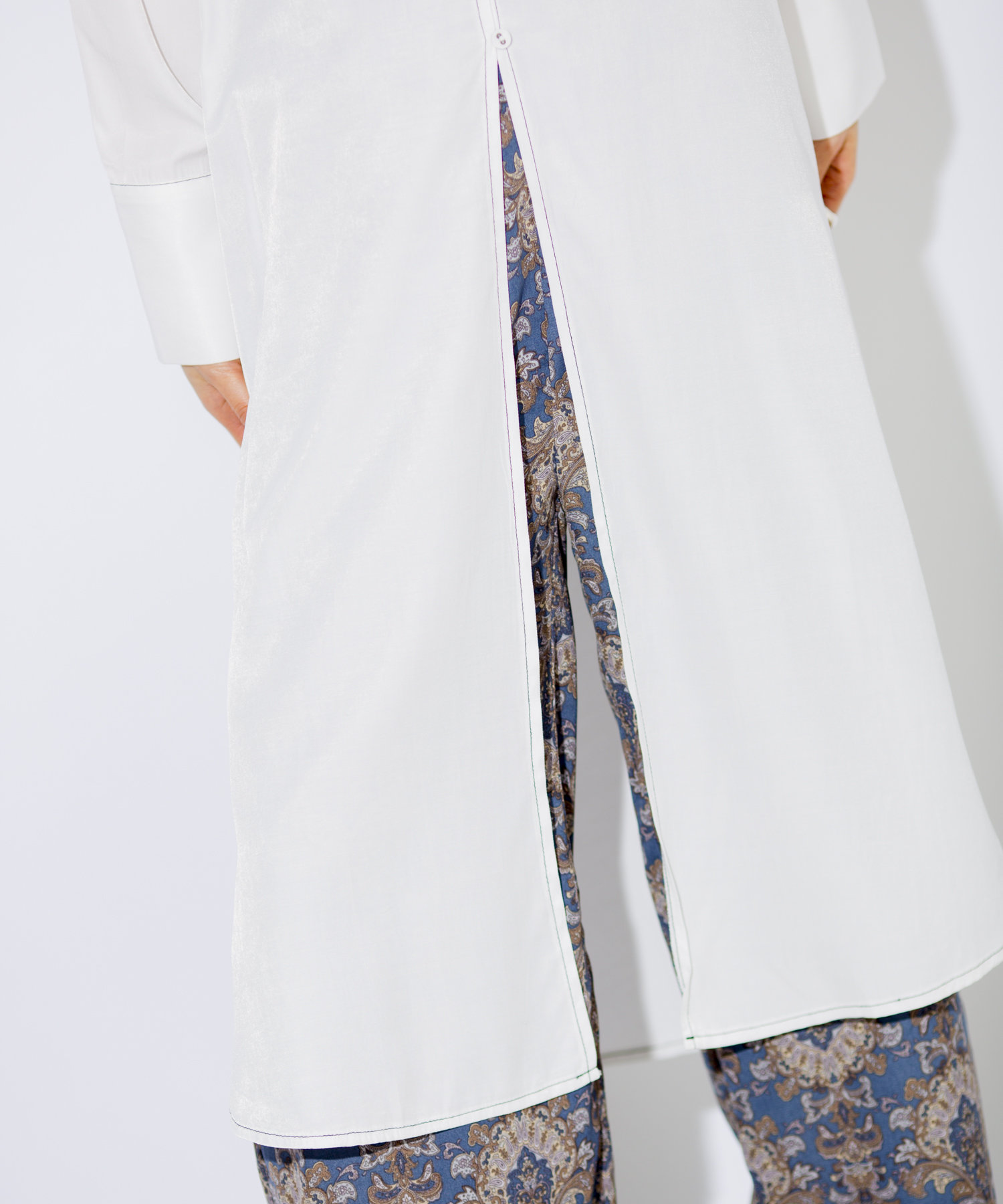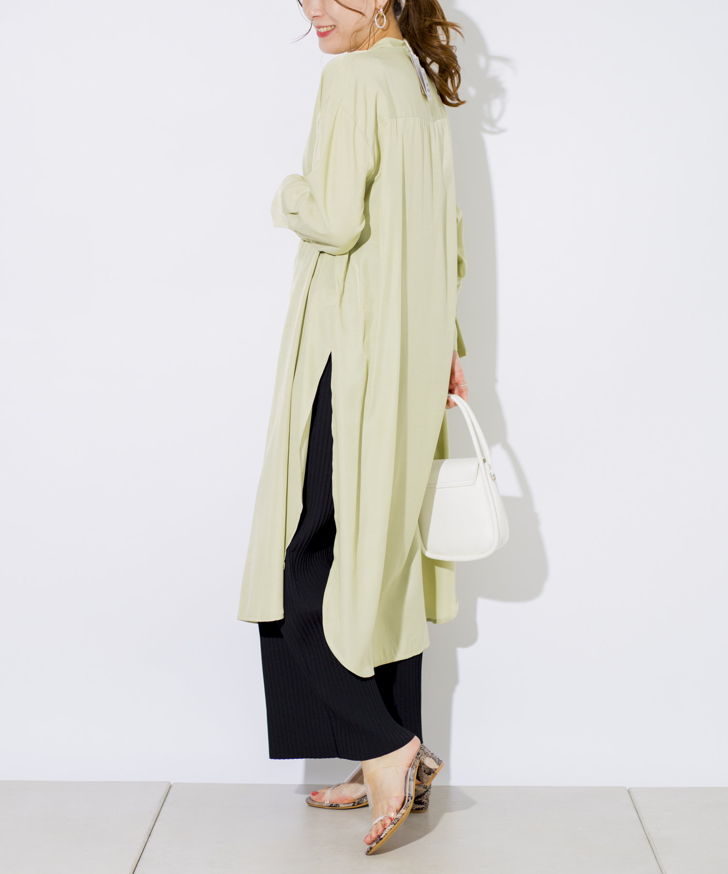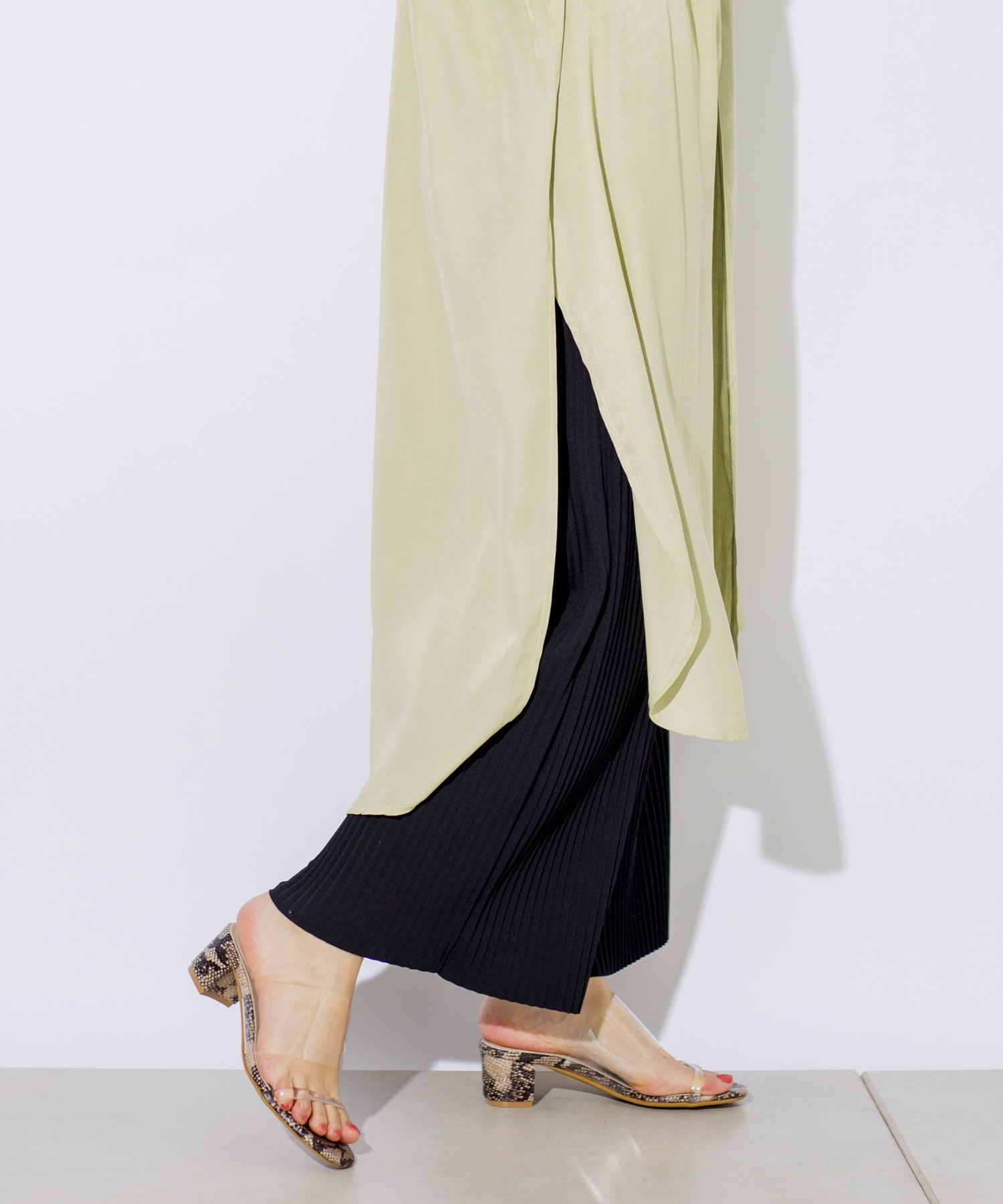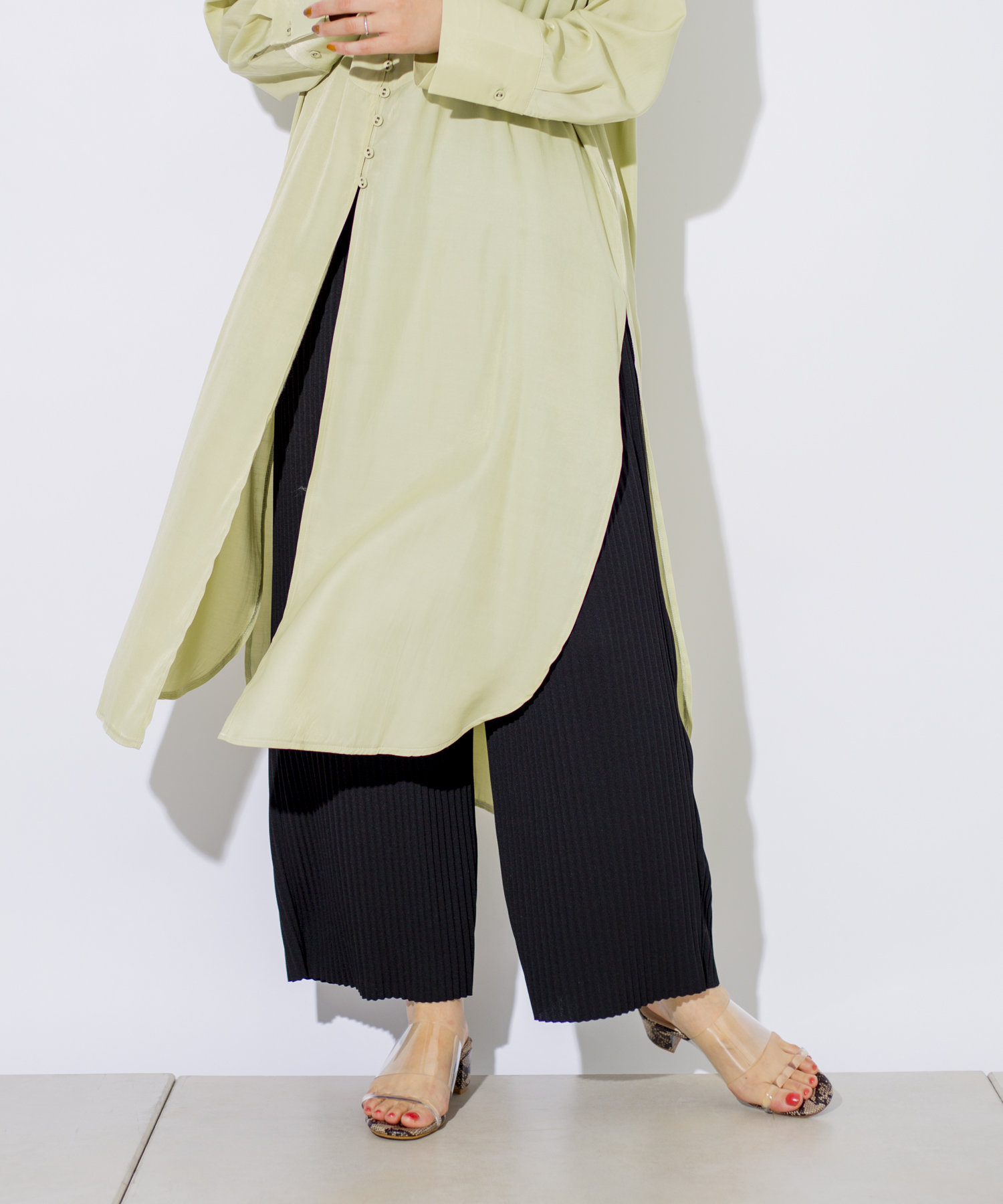 ・スリットが深く入っているのでパンツをレイヤードしたスタイルがオススメ