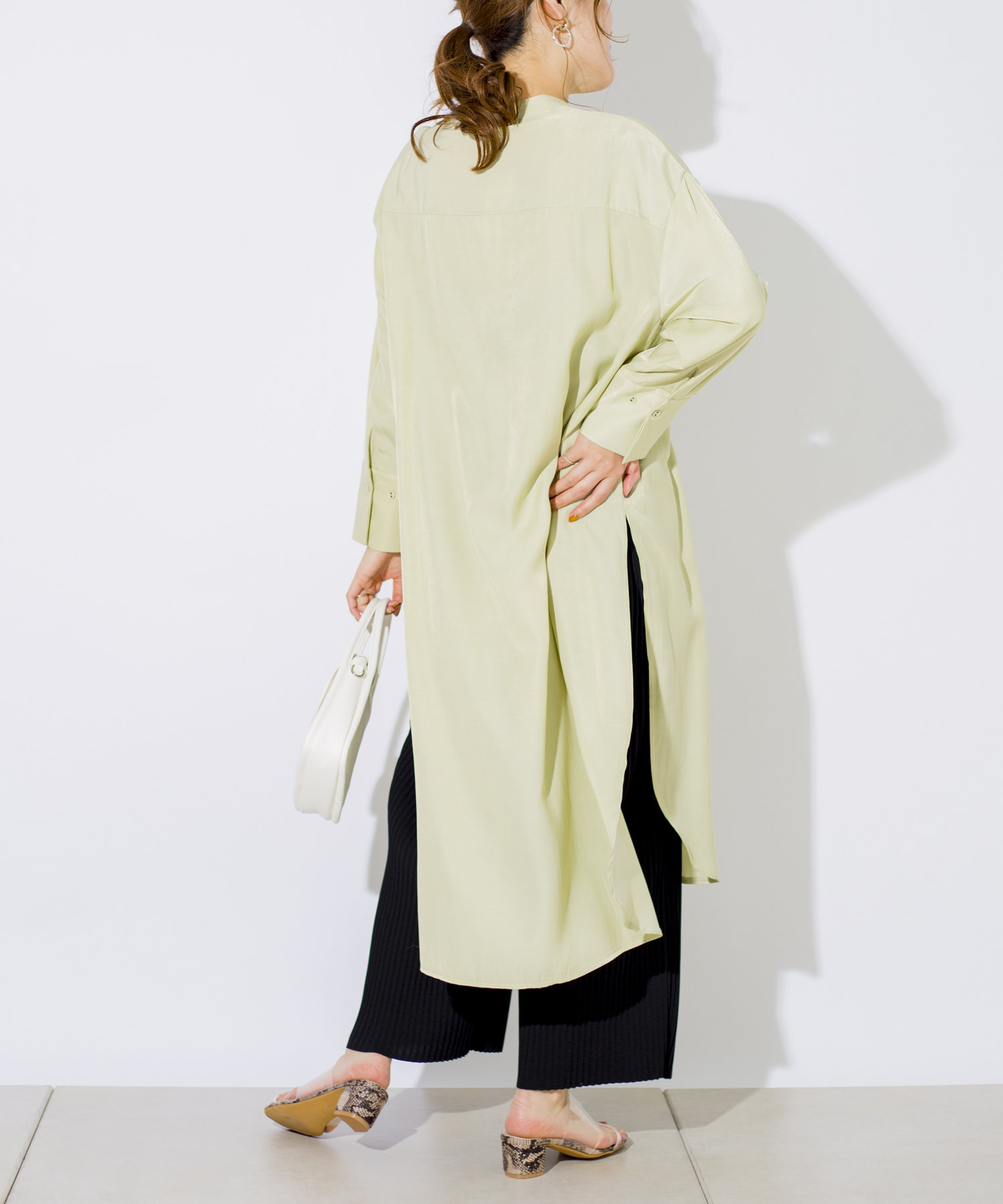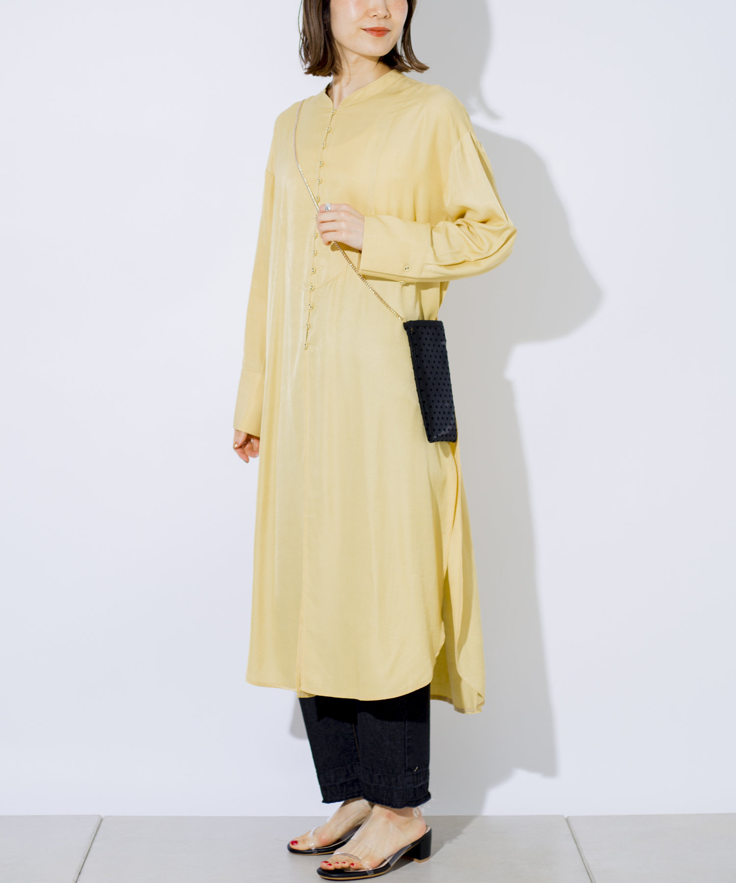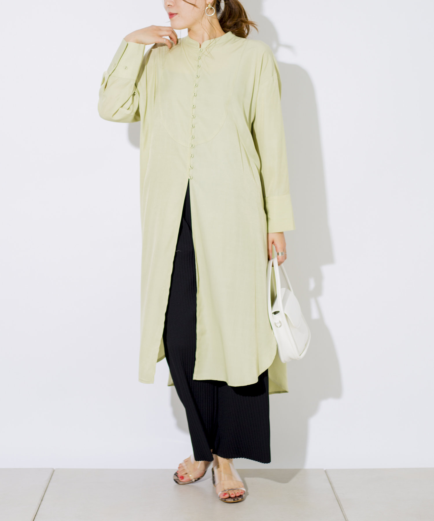 チャイナ風デザインが旬顔なロングシャツワンピ