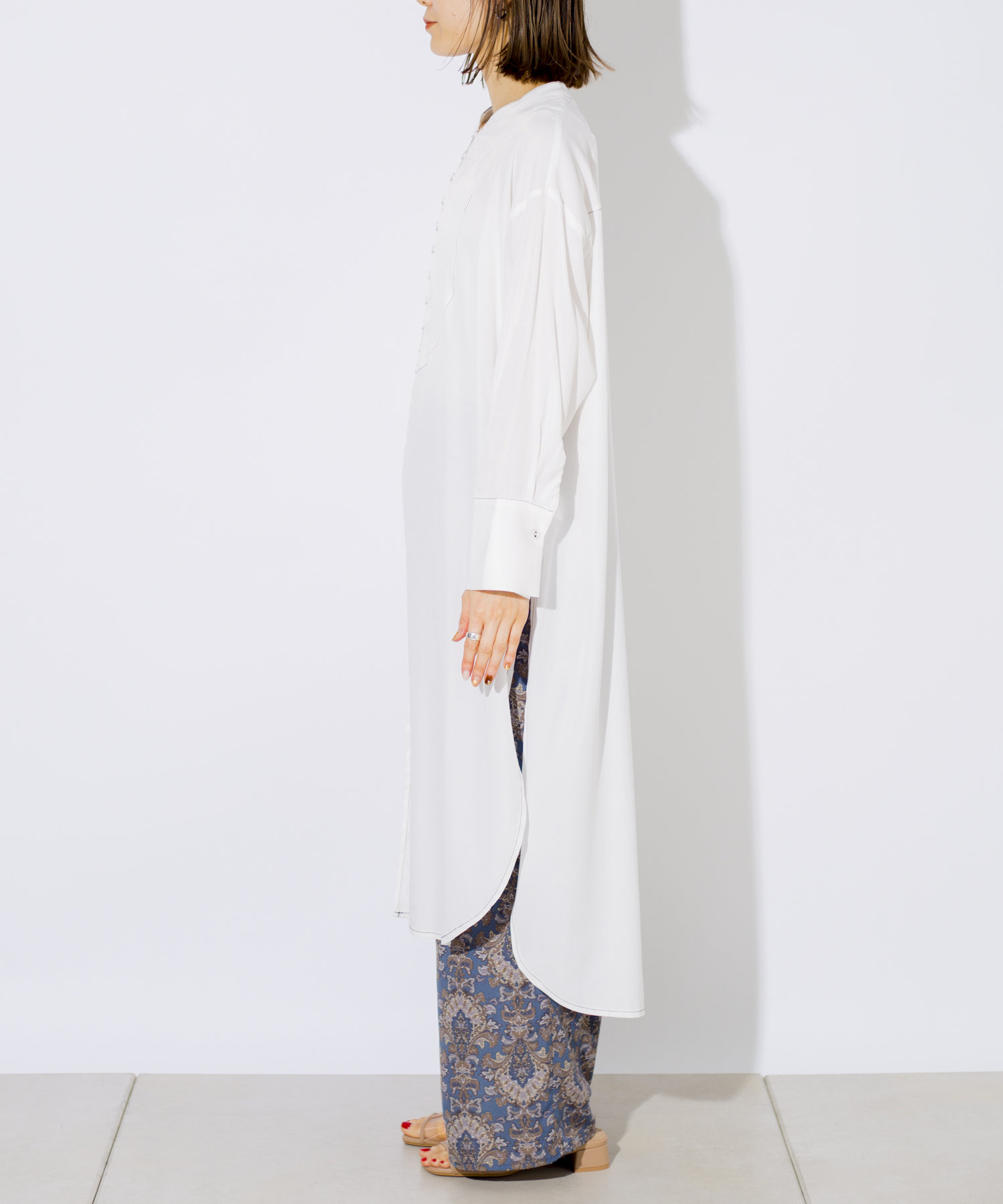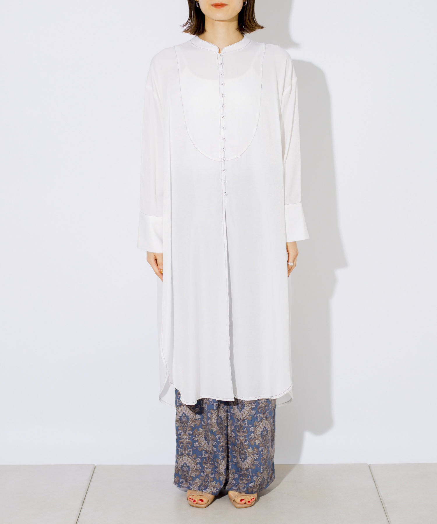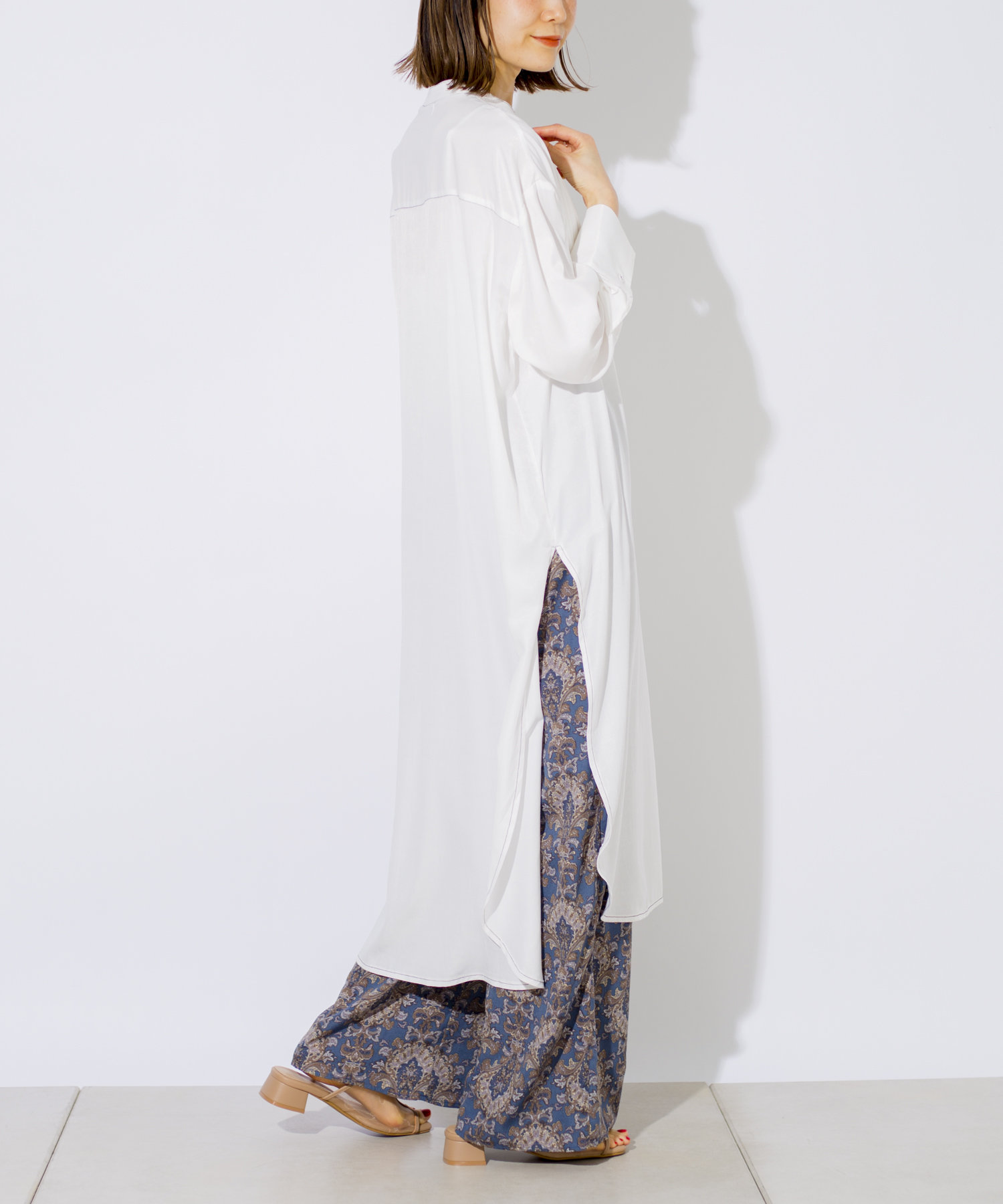 チャイナ風デザインが旬顔なロングシャツワンピ