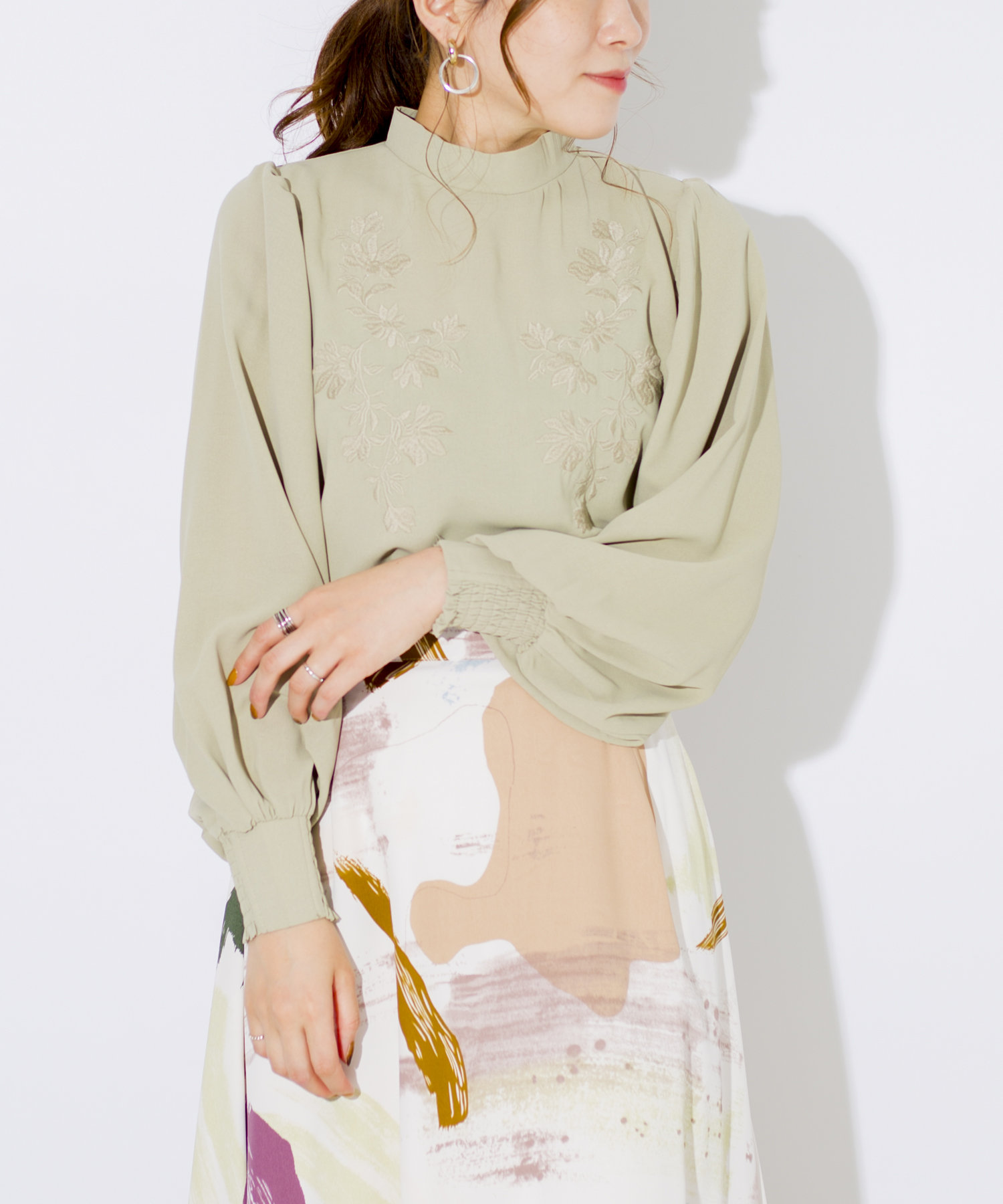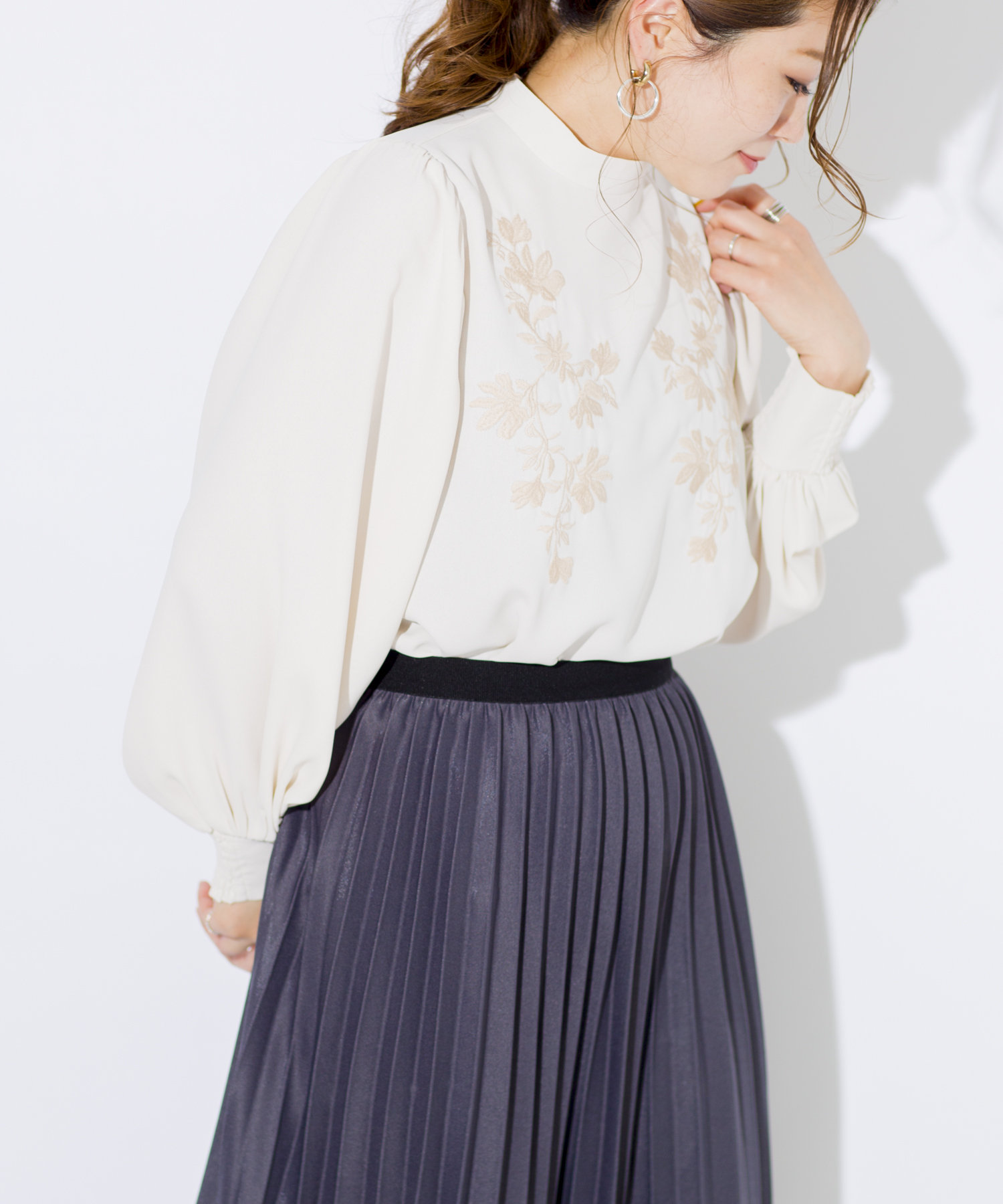 ●胸元に施された刺繍デザインが華やかでガーリーなムードに
