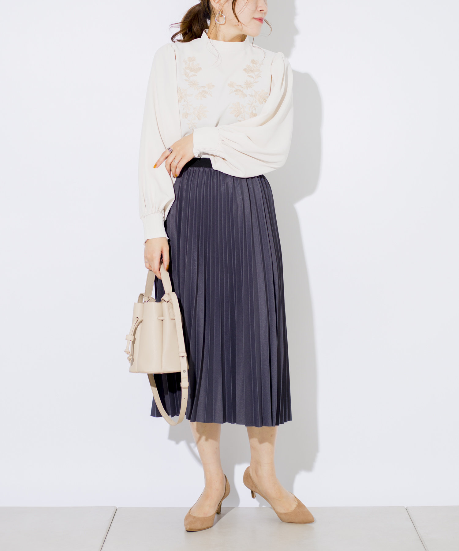 Aラインやプリーツスカートなどの女性らしいアイテムと相性抜群◎