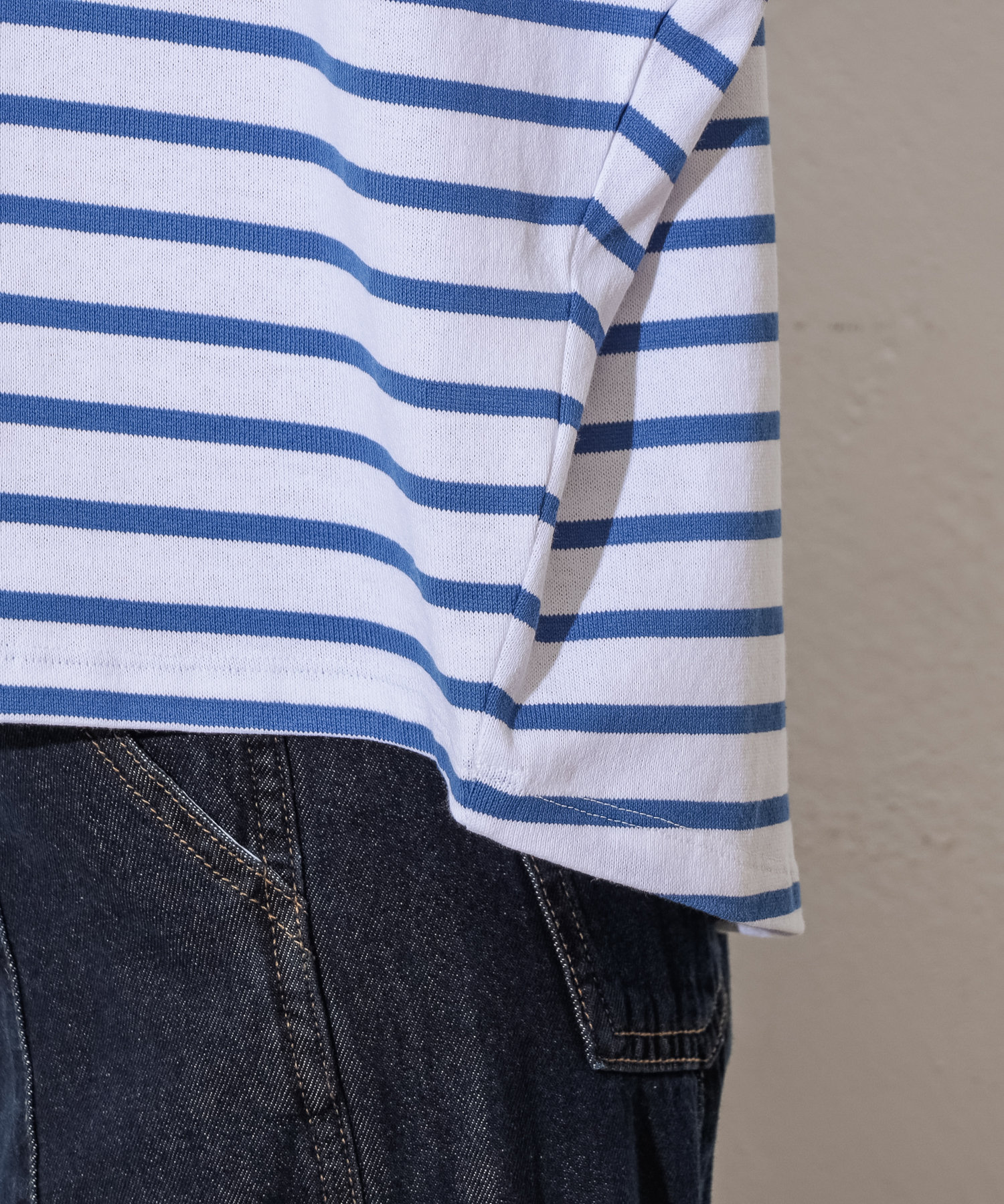 身幅や袖幅が広めですしボーダーなのでだぼっとしたシルエット。生地は思ったより厚めです。