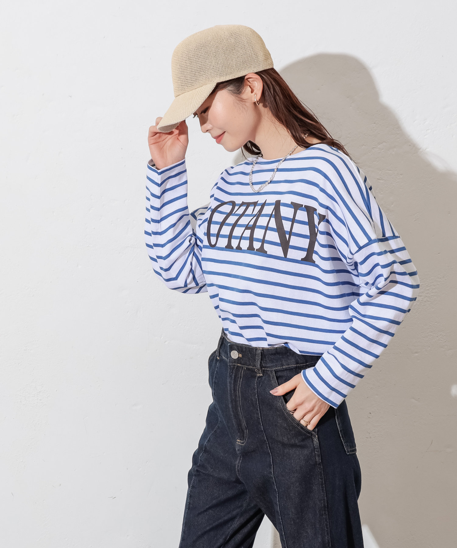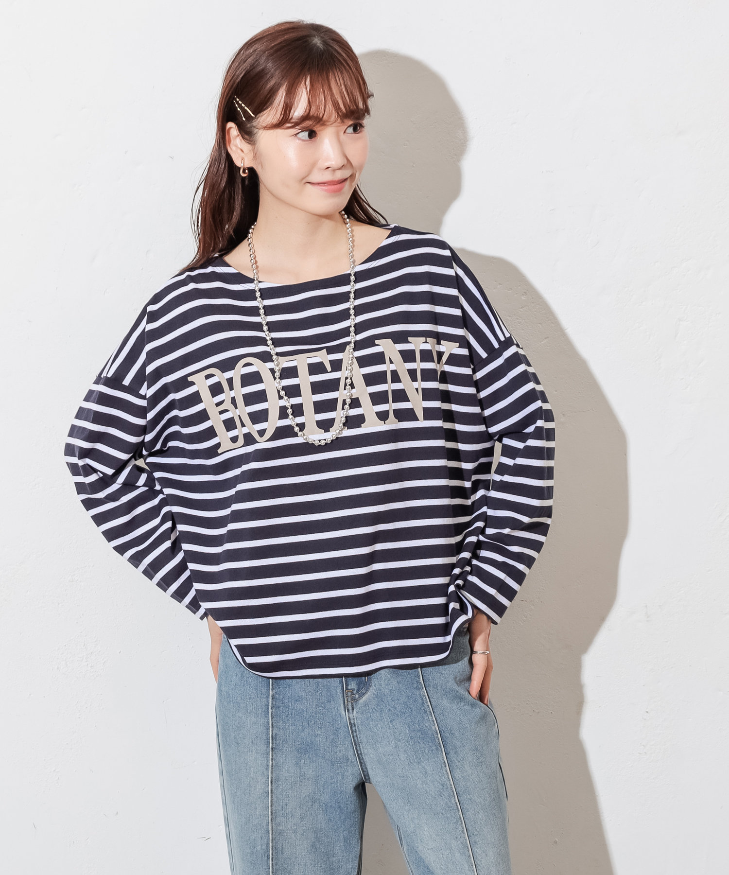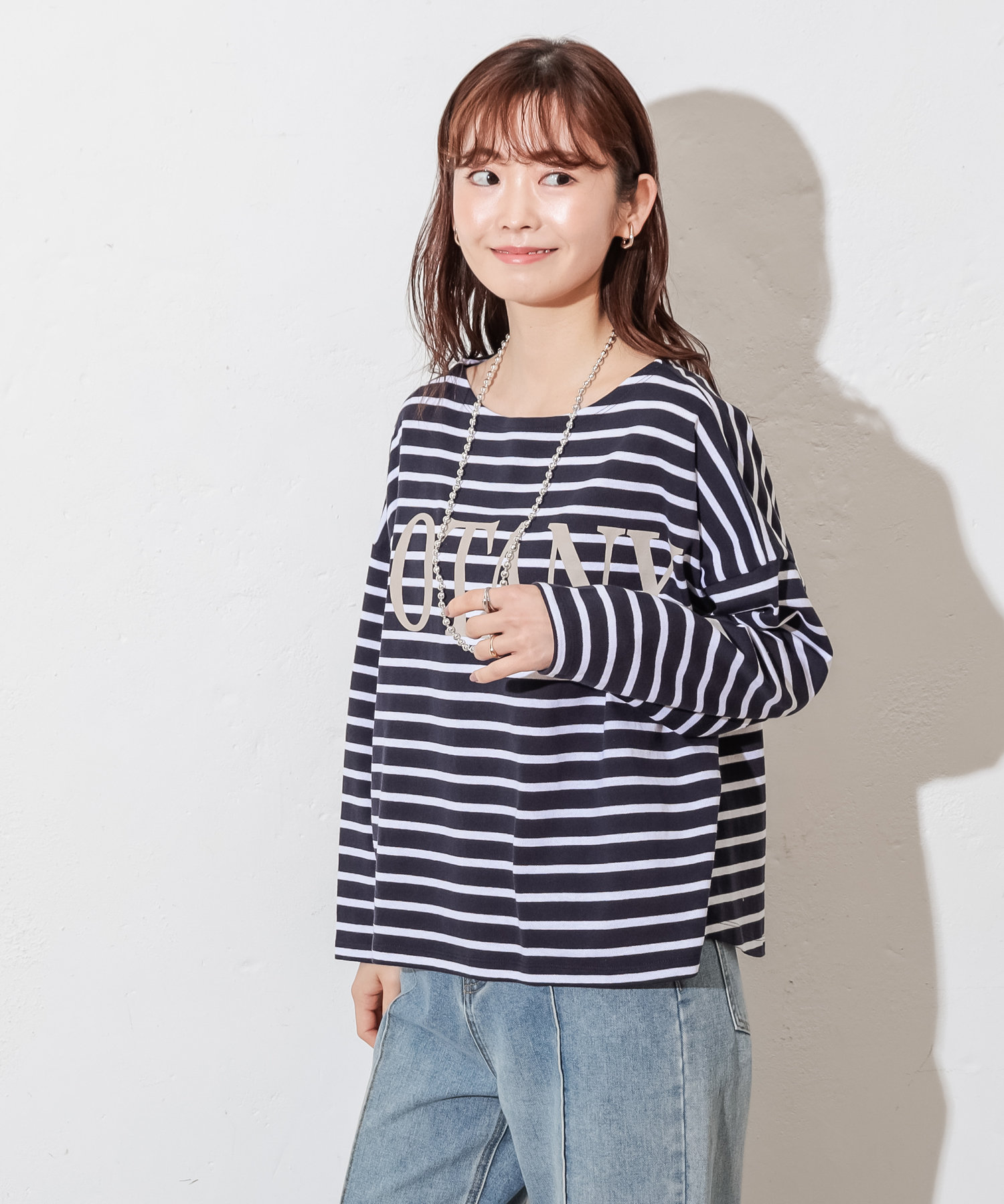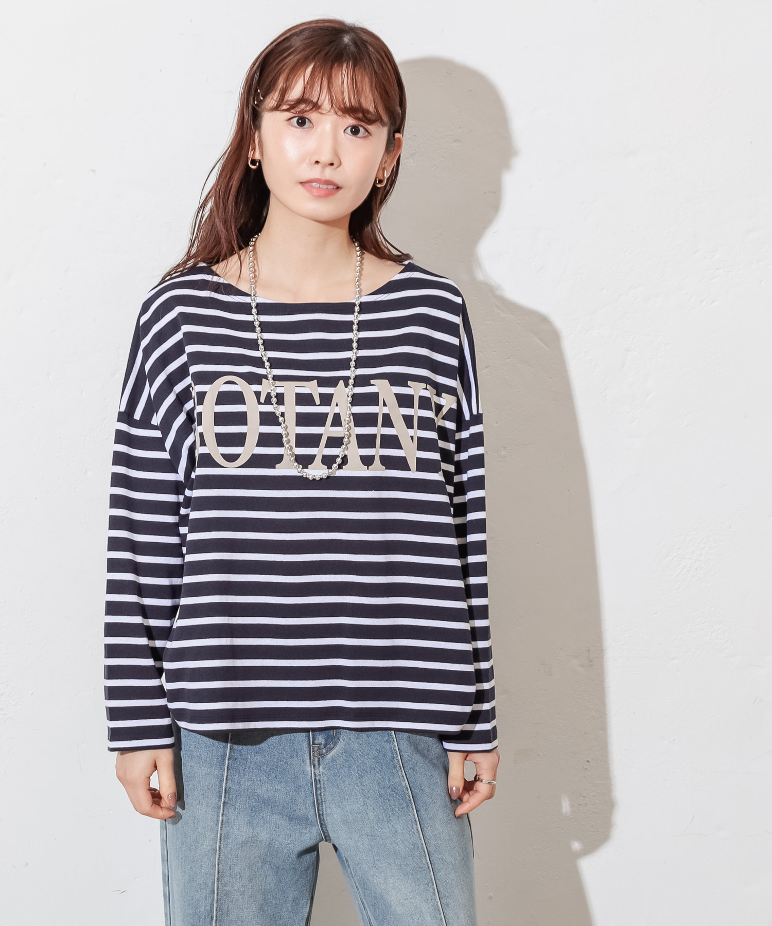 ロゴが入って、いつものボーダーTよりオシャレに着こなせます。