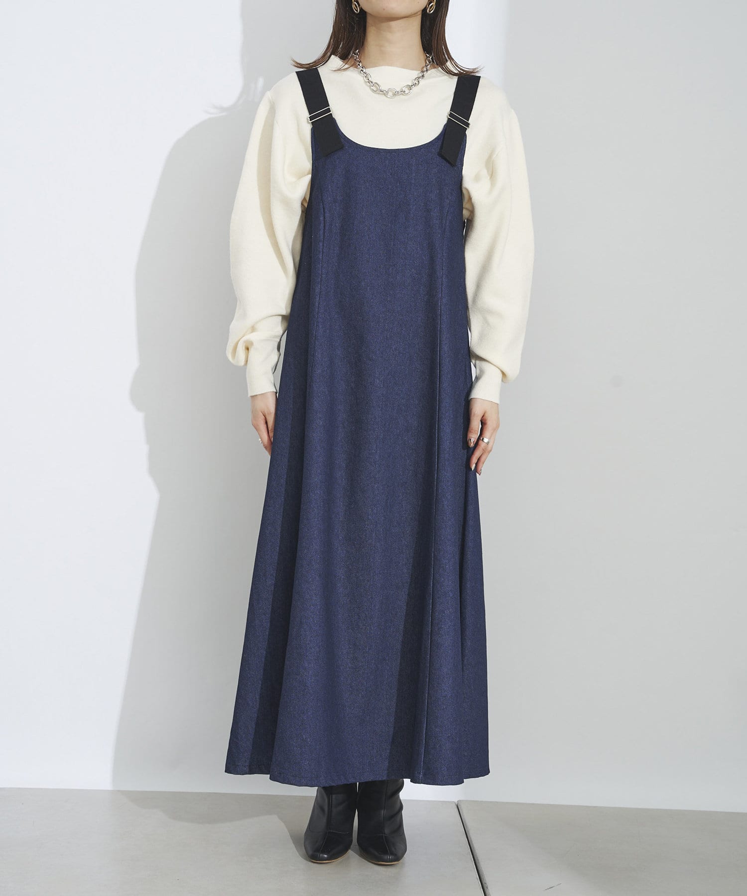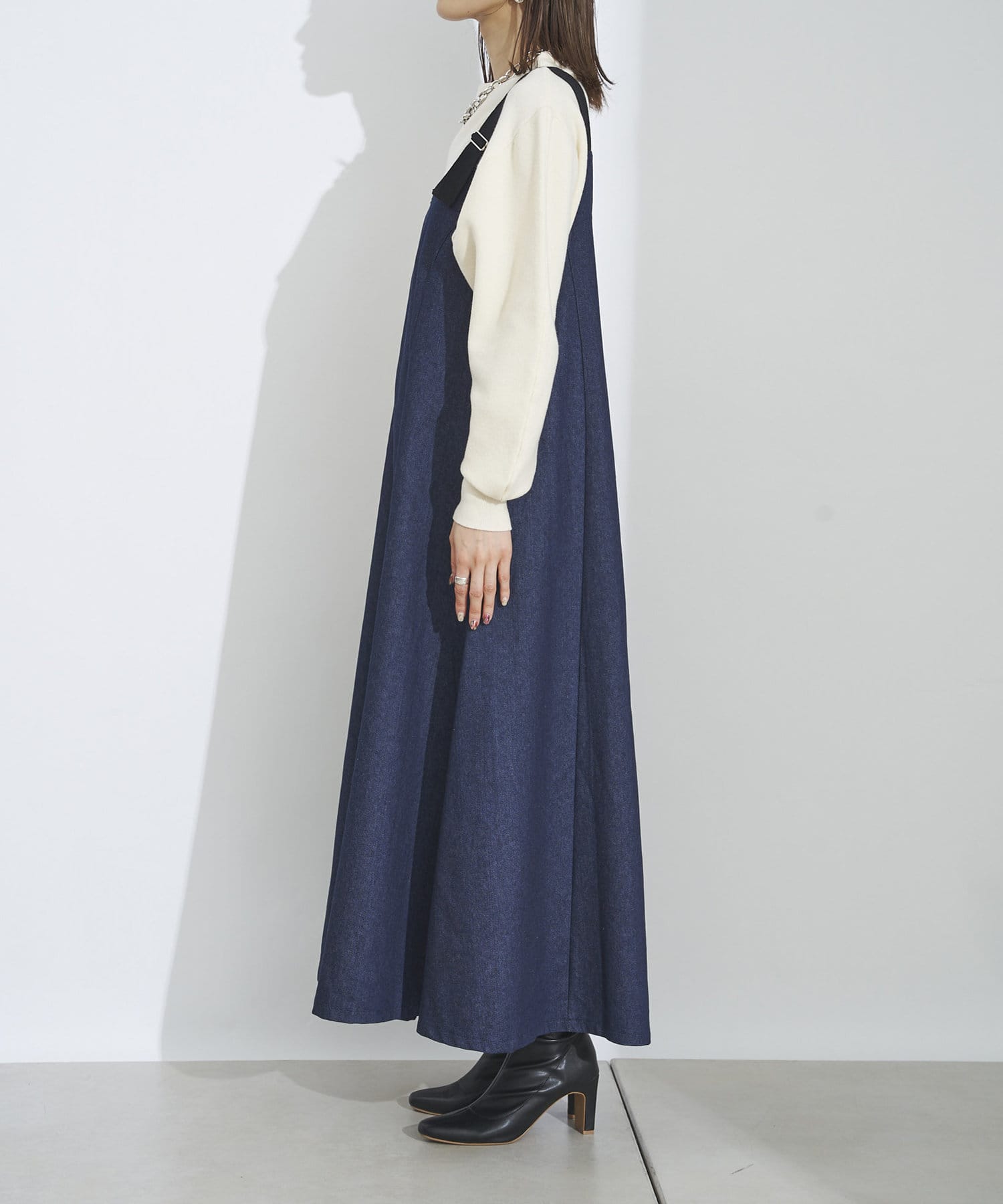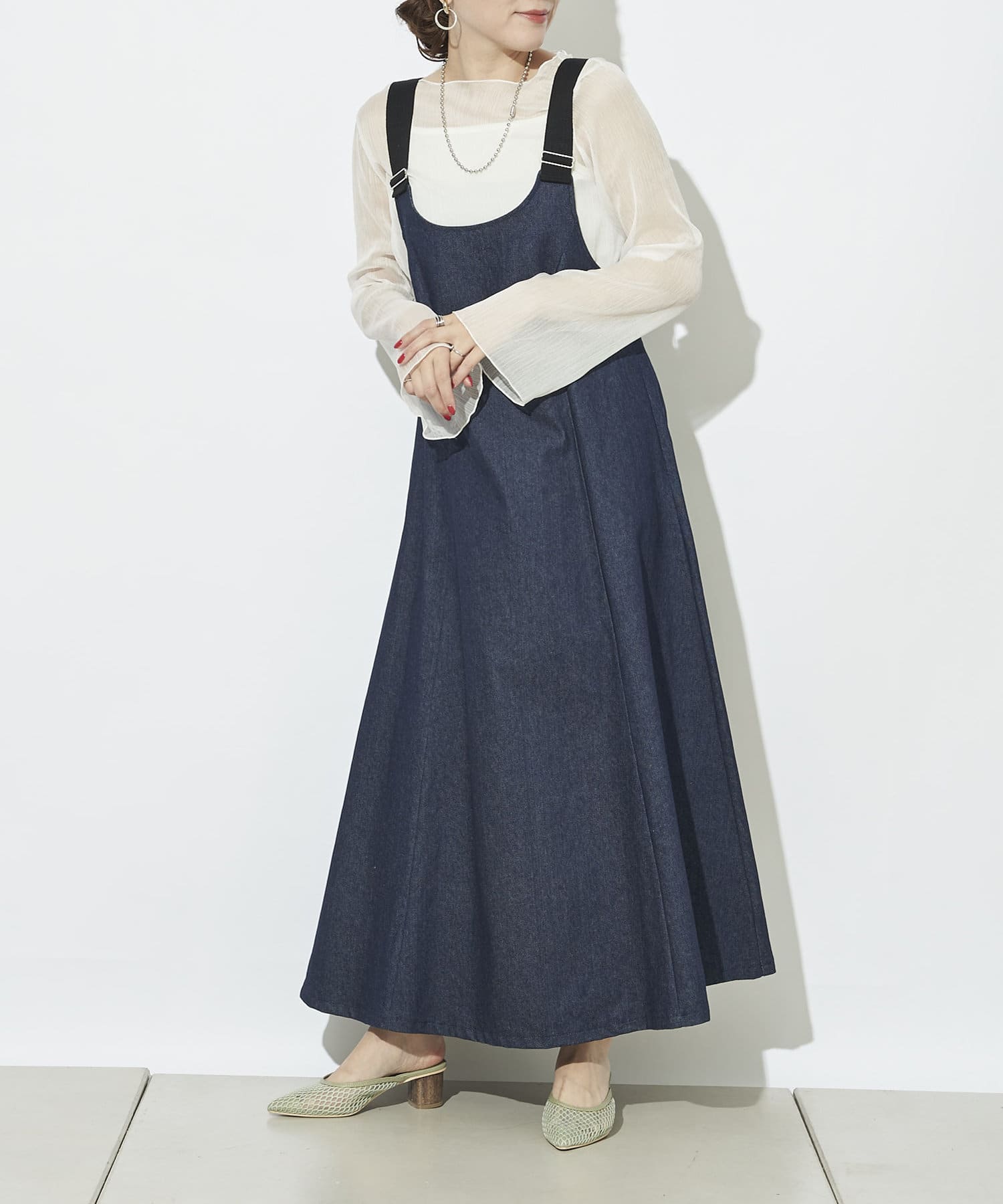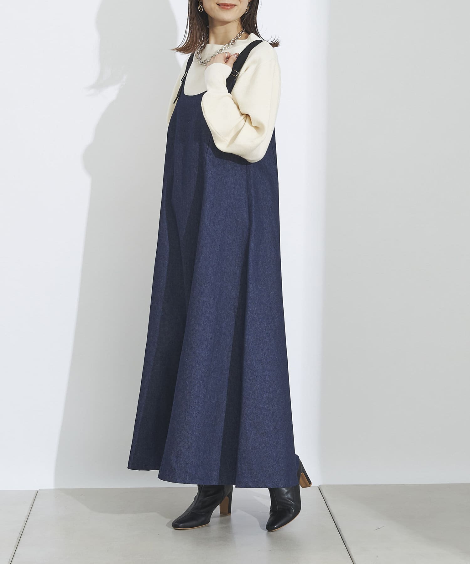 ●Aラインに広がるロング丈が大人な雰囲気漂うジャンパースカート