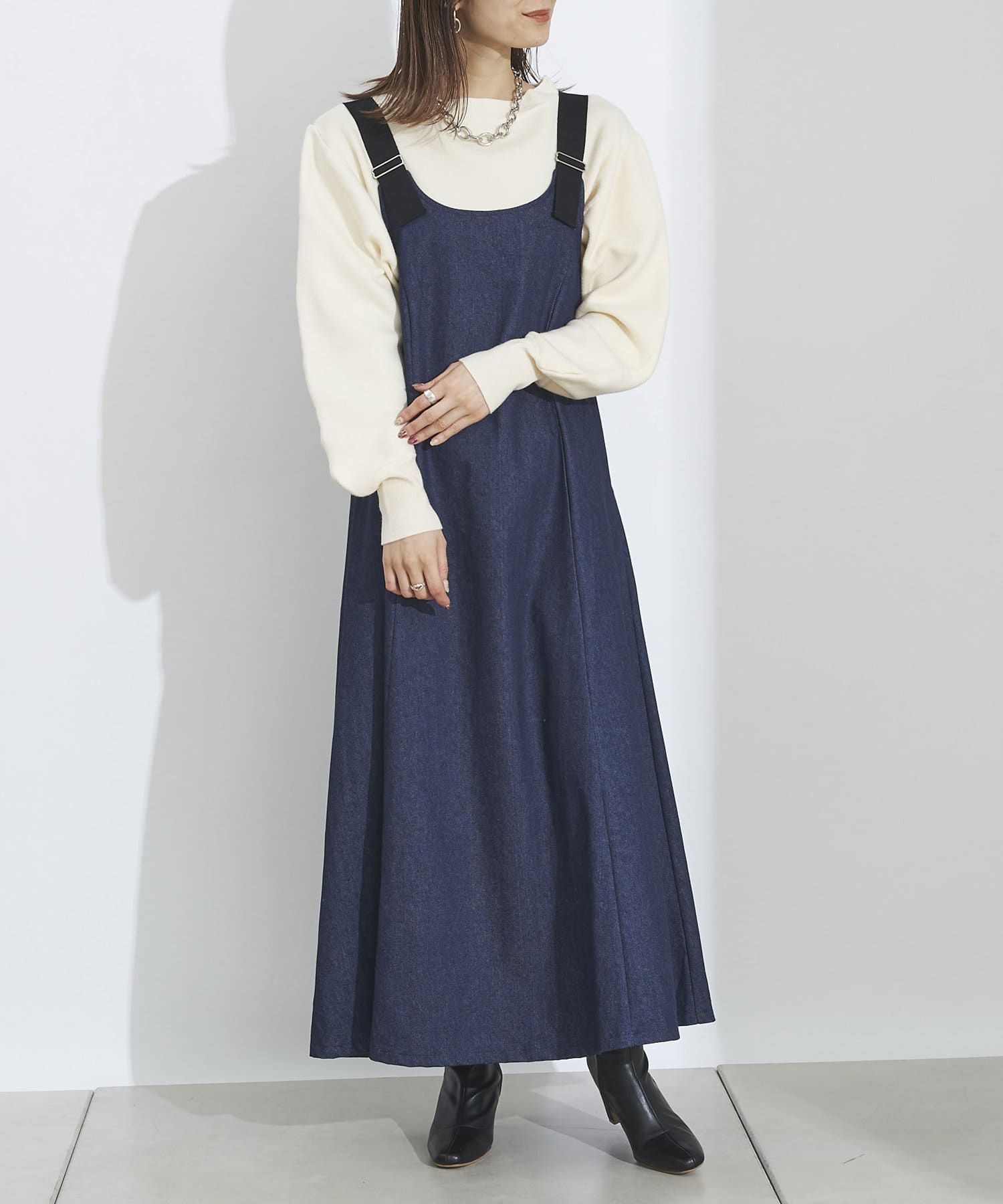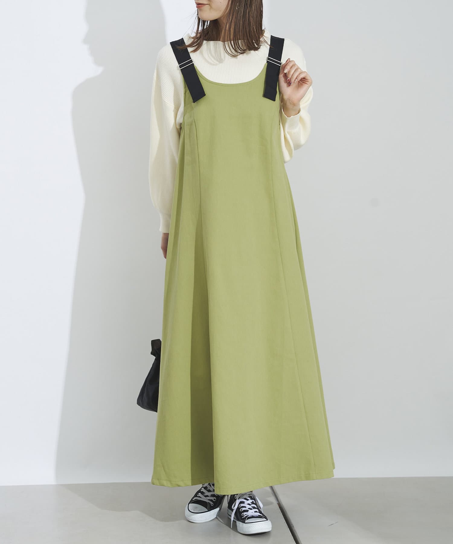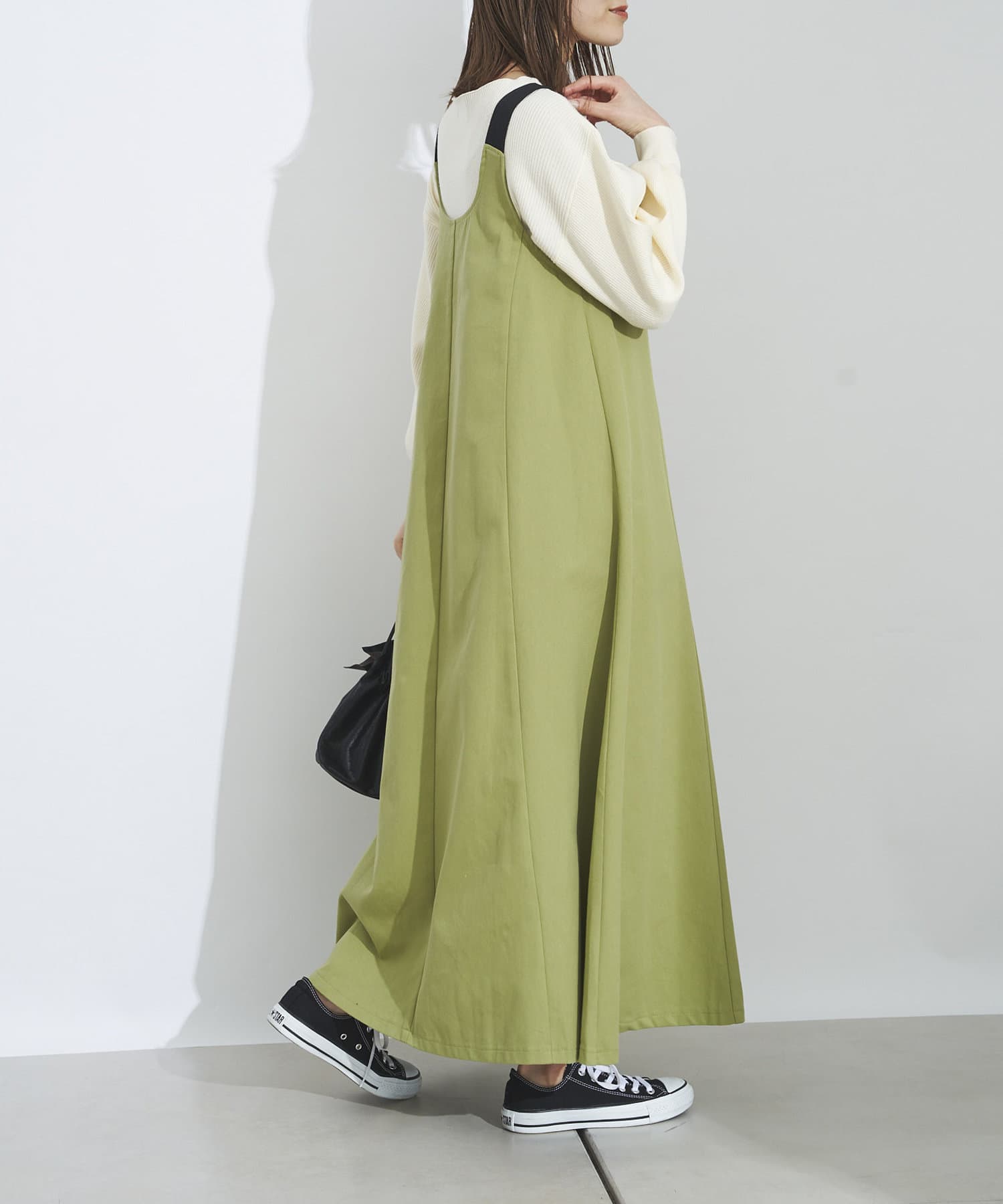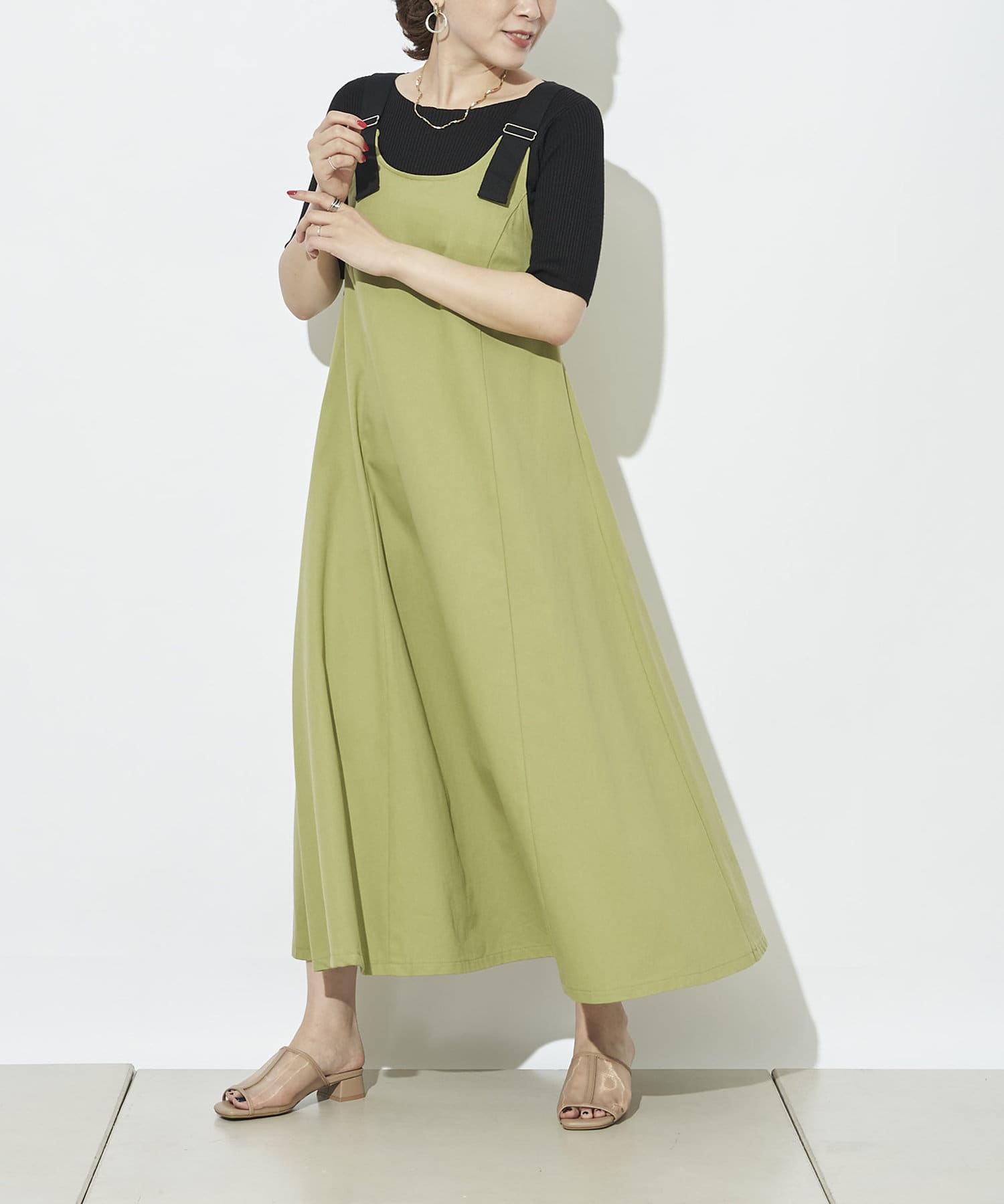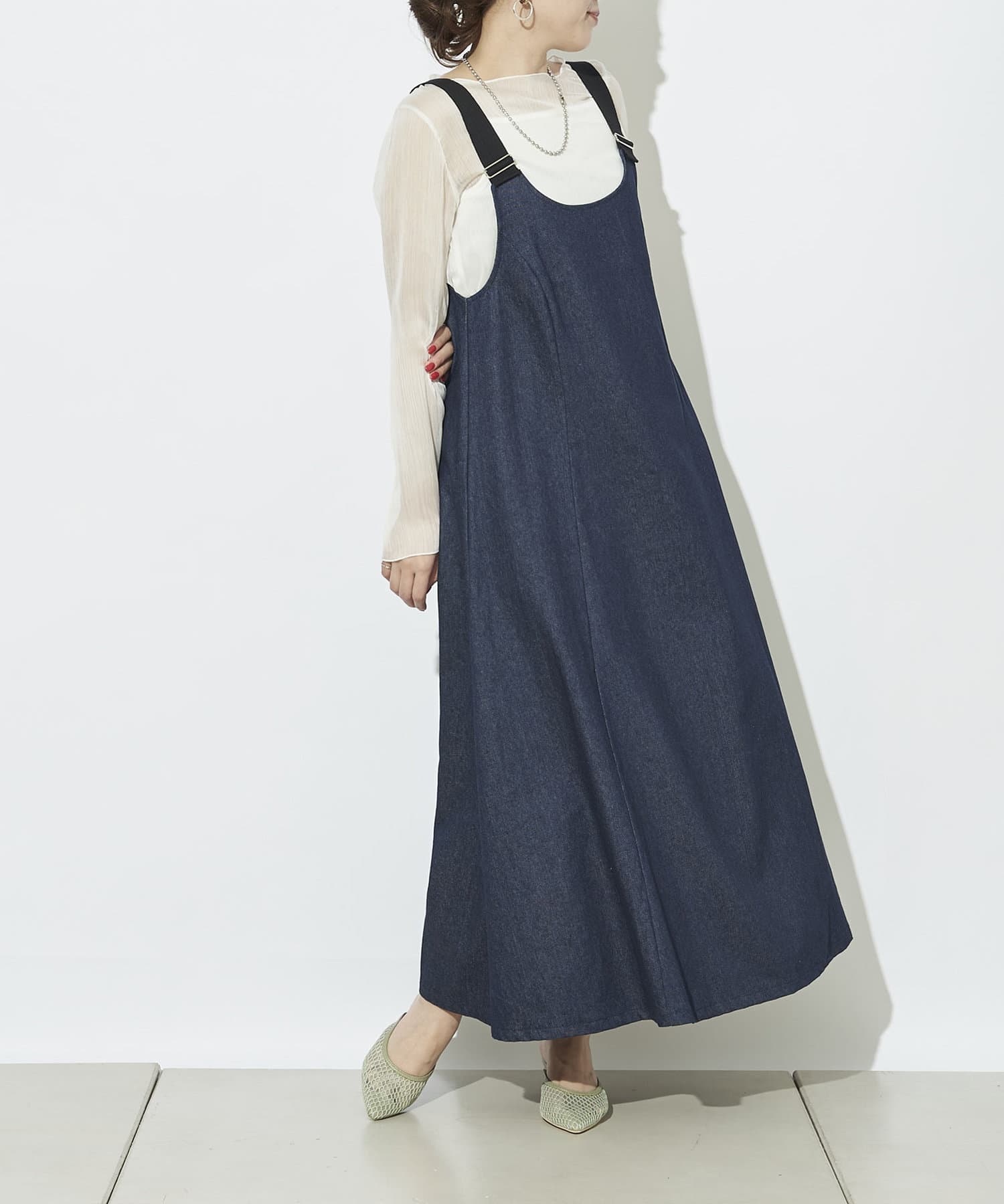 ●Aラインに広がるロング丈が大人な雰囲気漂うジャンパースカート