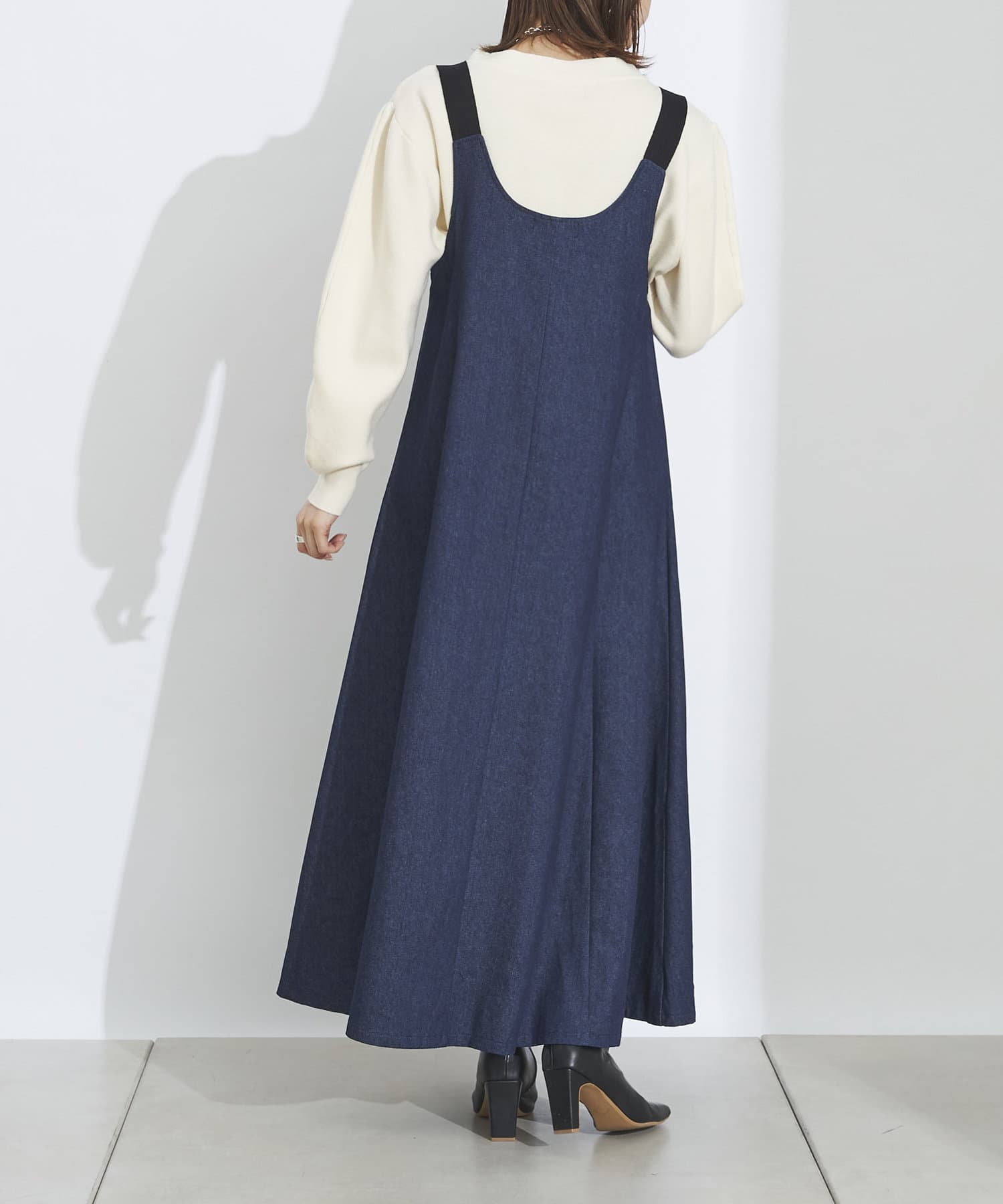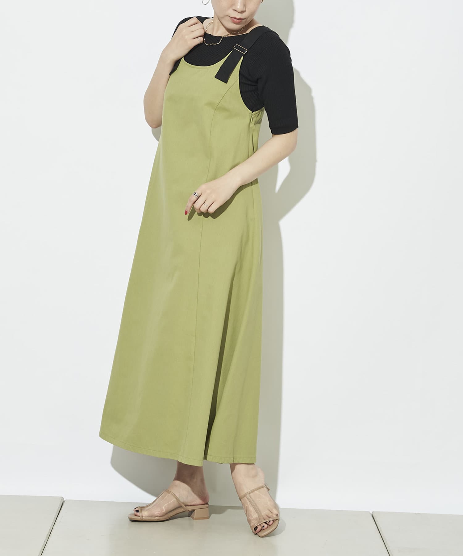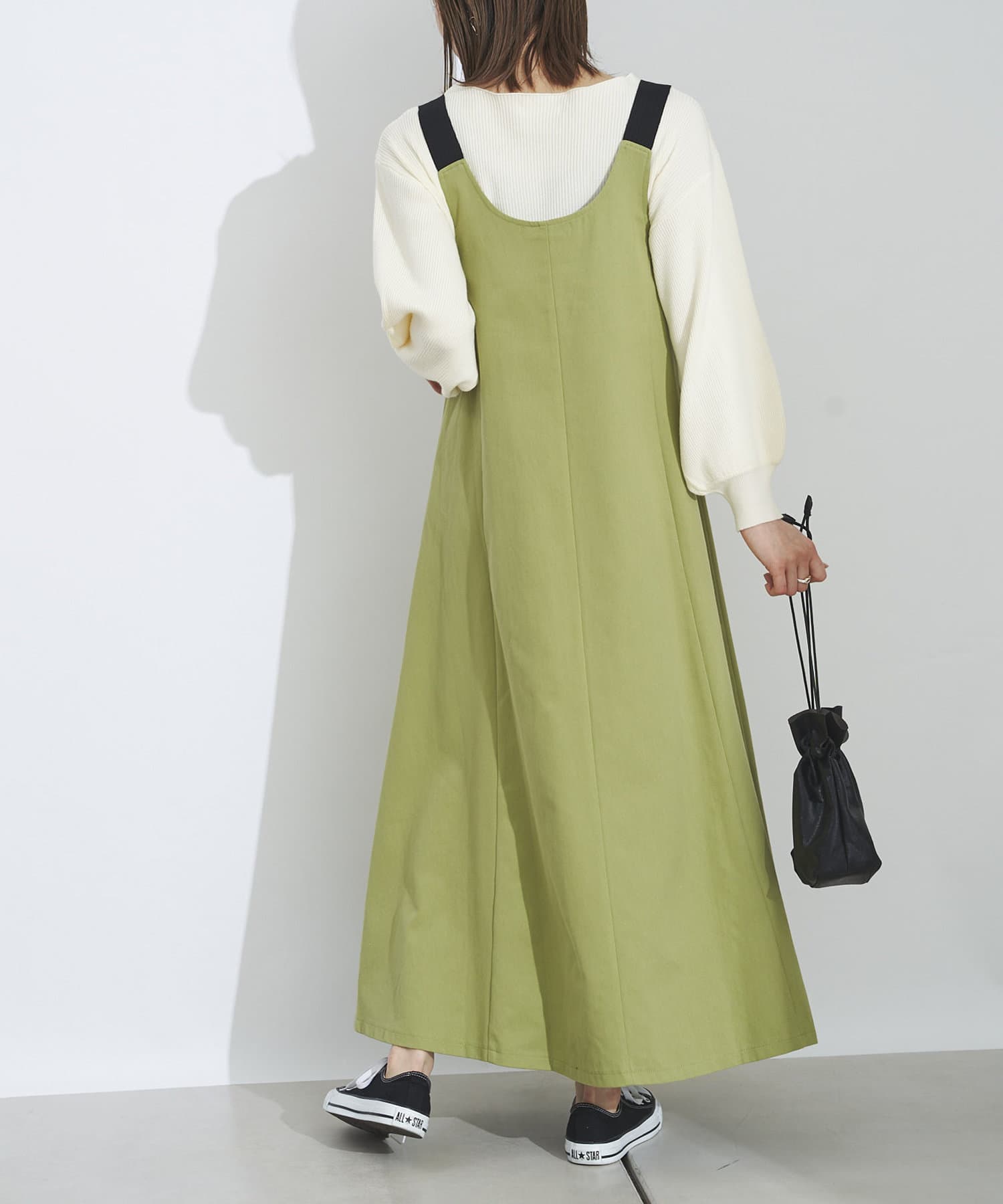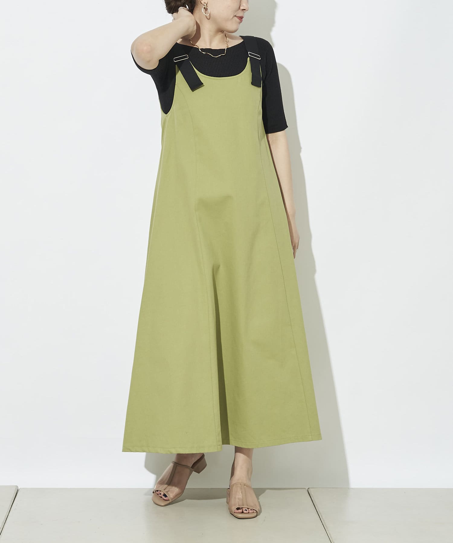 ●Aラインに広がるロング丈が大人な雰囲気漂うジャンパースカート