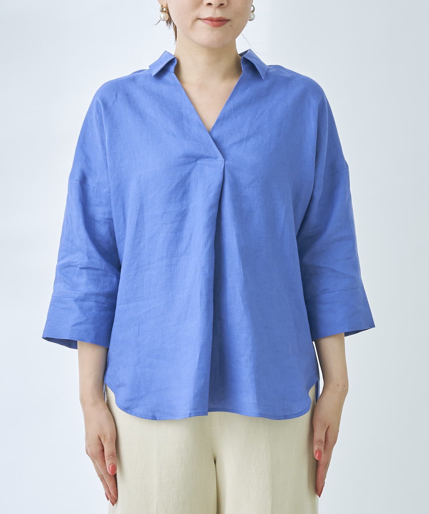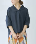 ●スキッパー襟が顔回りに抜け感を与え、スッキリとした印象に