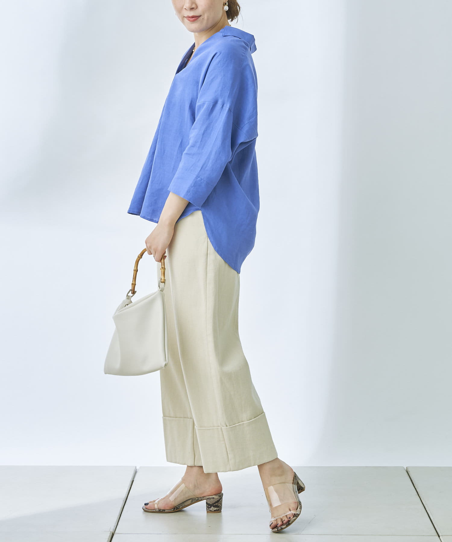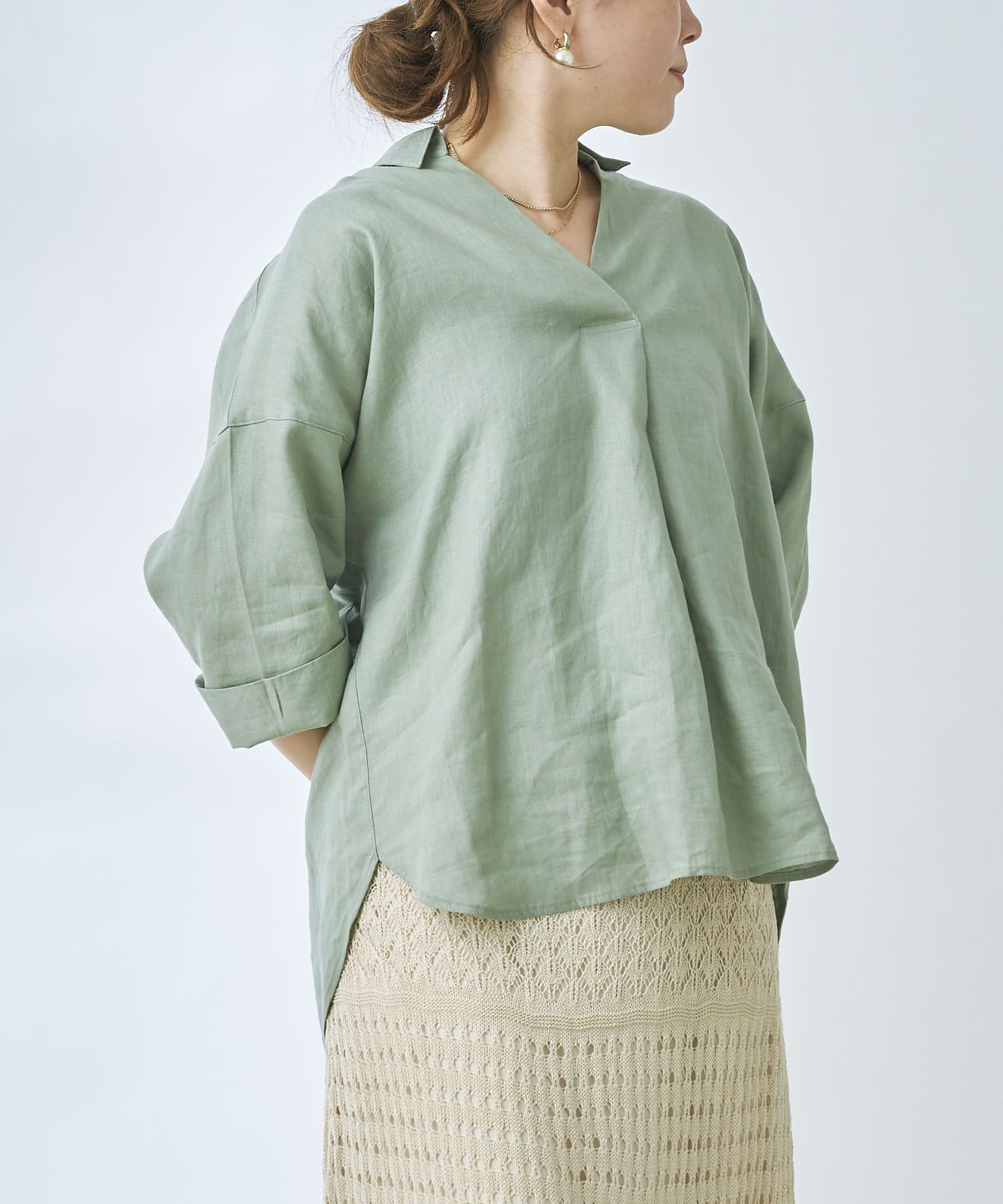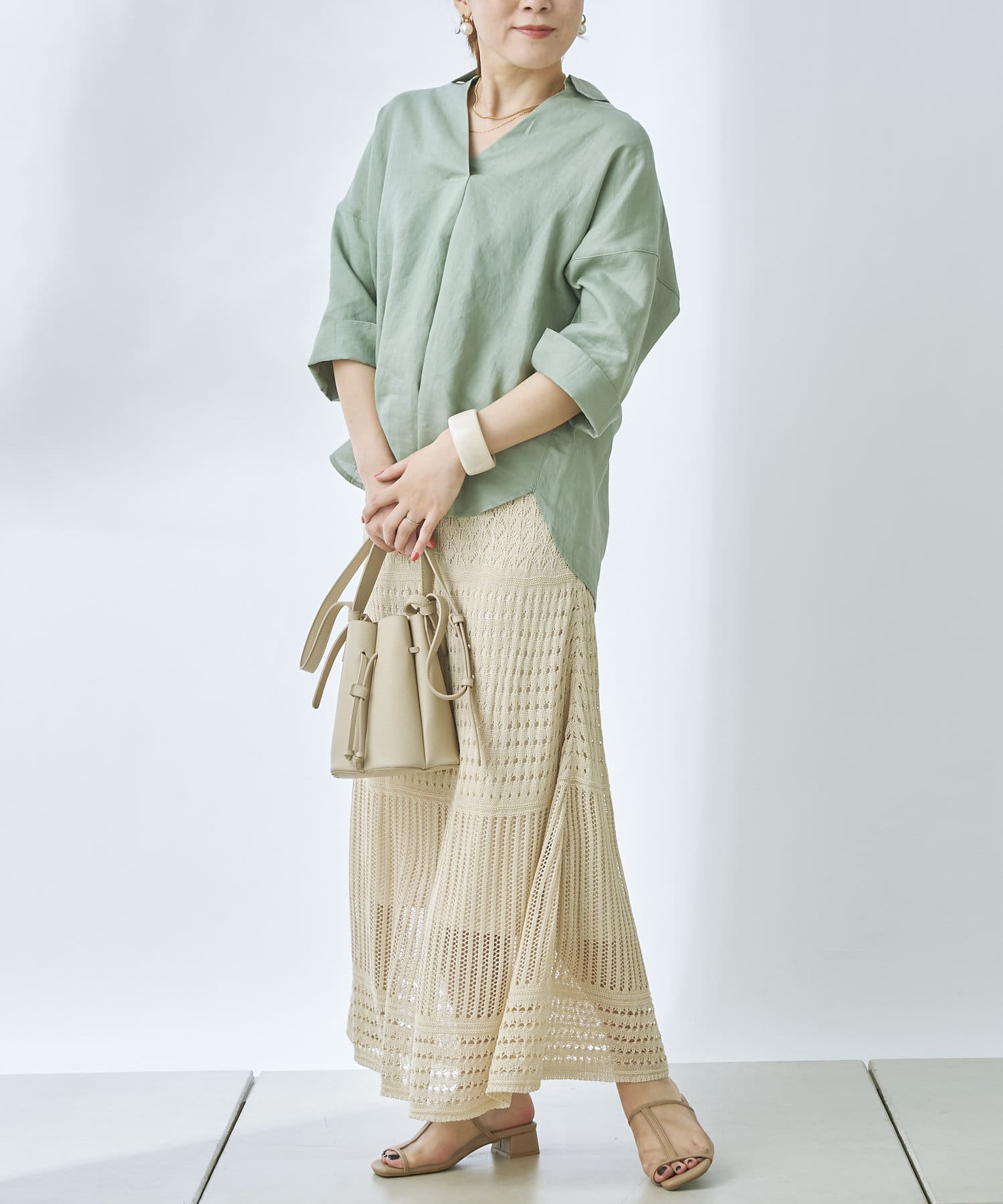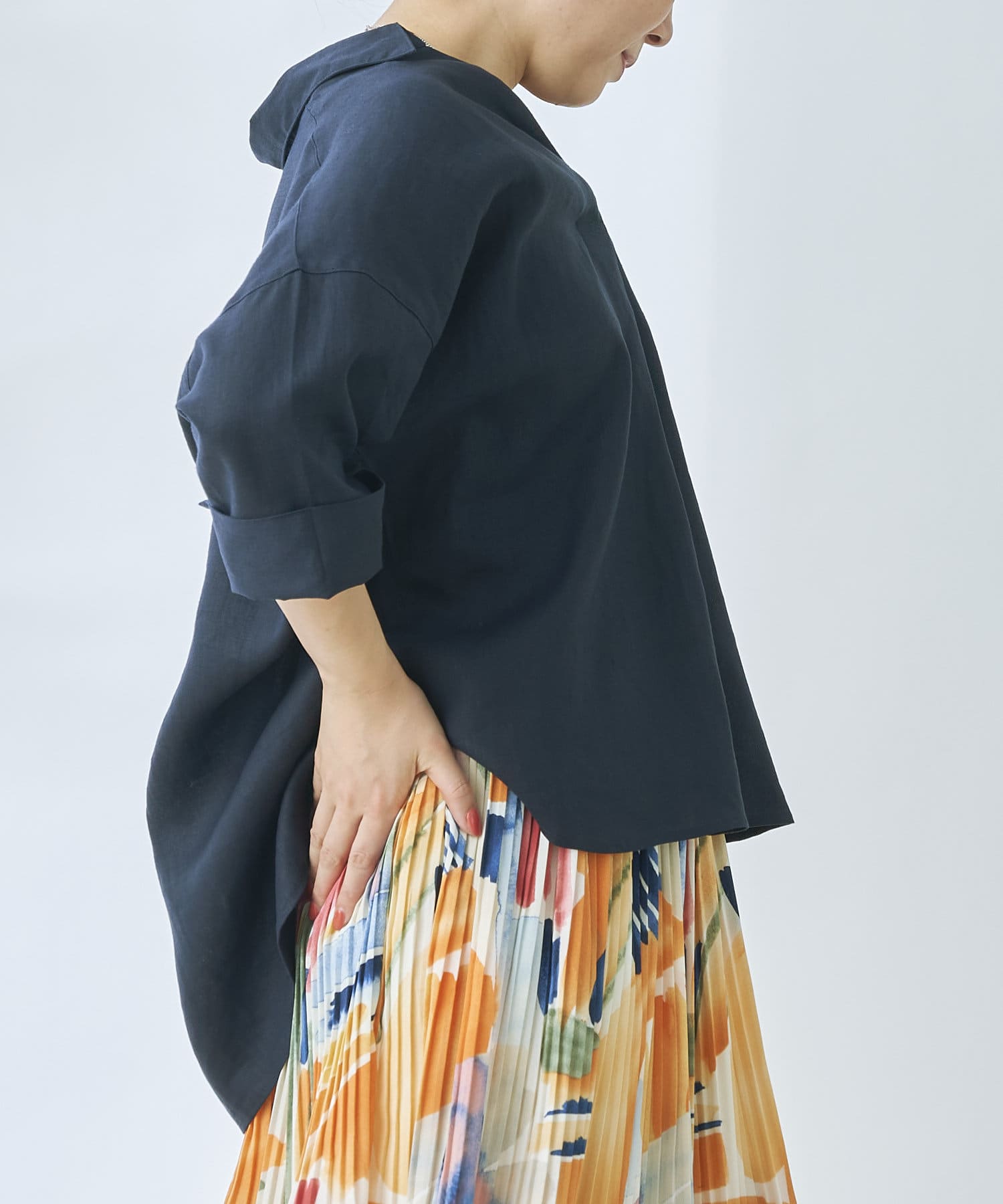 ●リネン100%なのでサラッと冷涼感のある柔らかな肌触りでロングシーズン活躍
