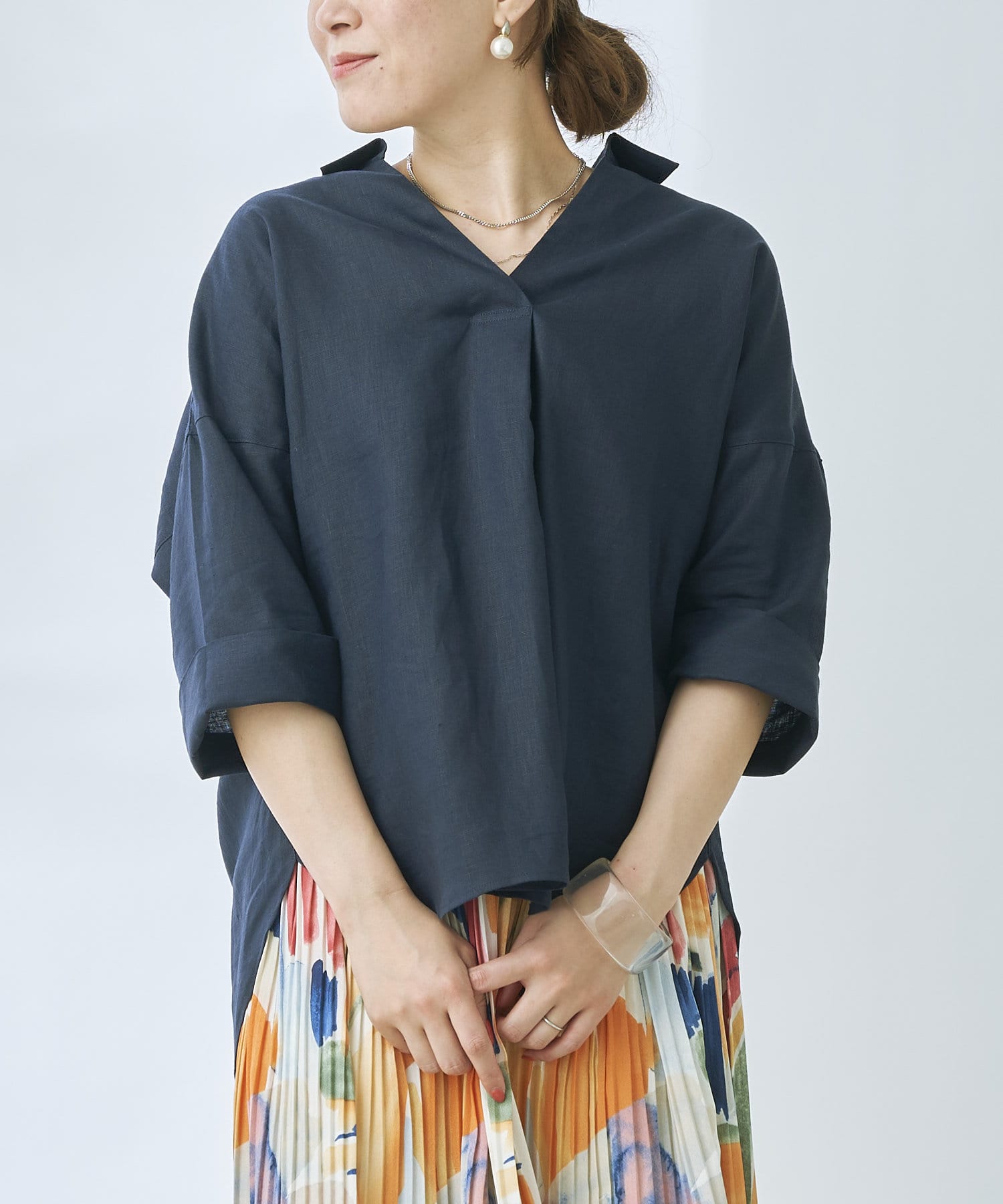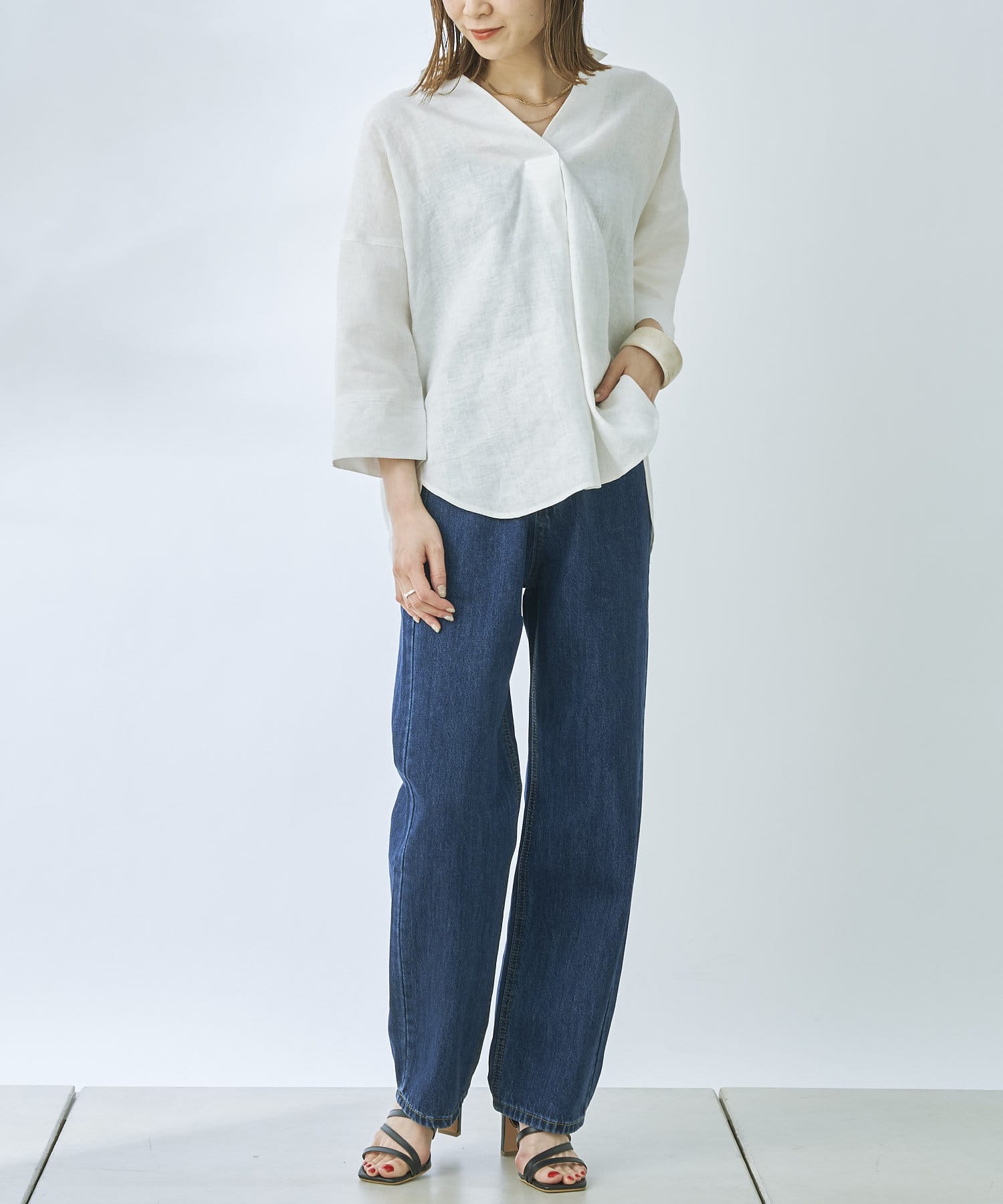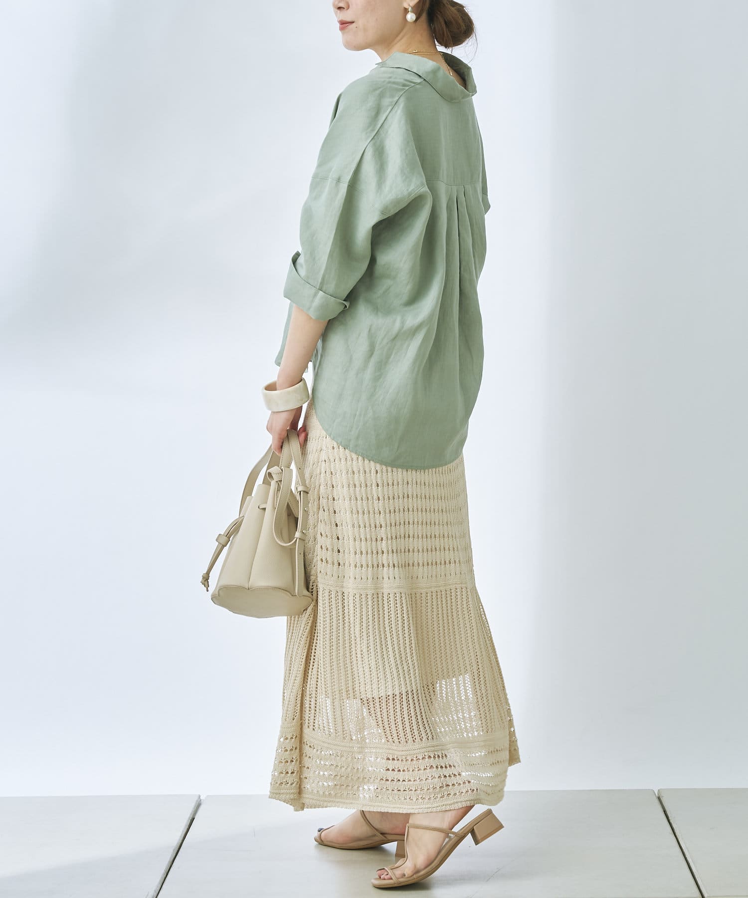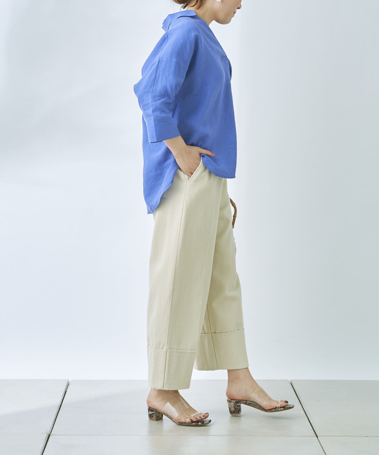 ●リネン100%なのでサラッと冷涼感のある柔らかな肌触りでロングシーズン活躍