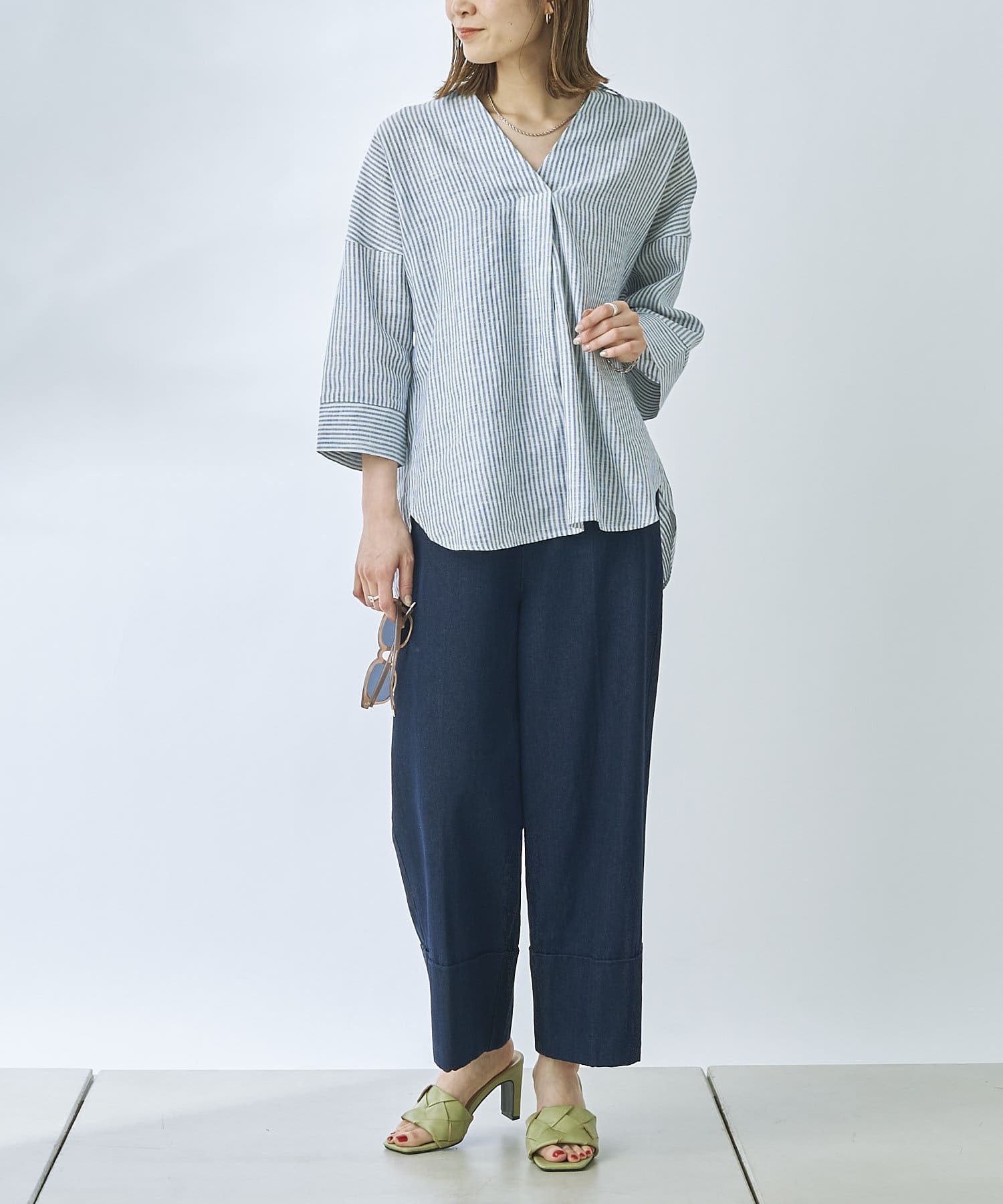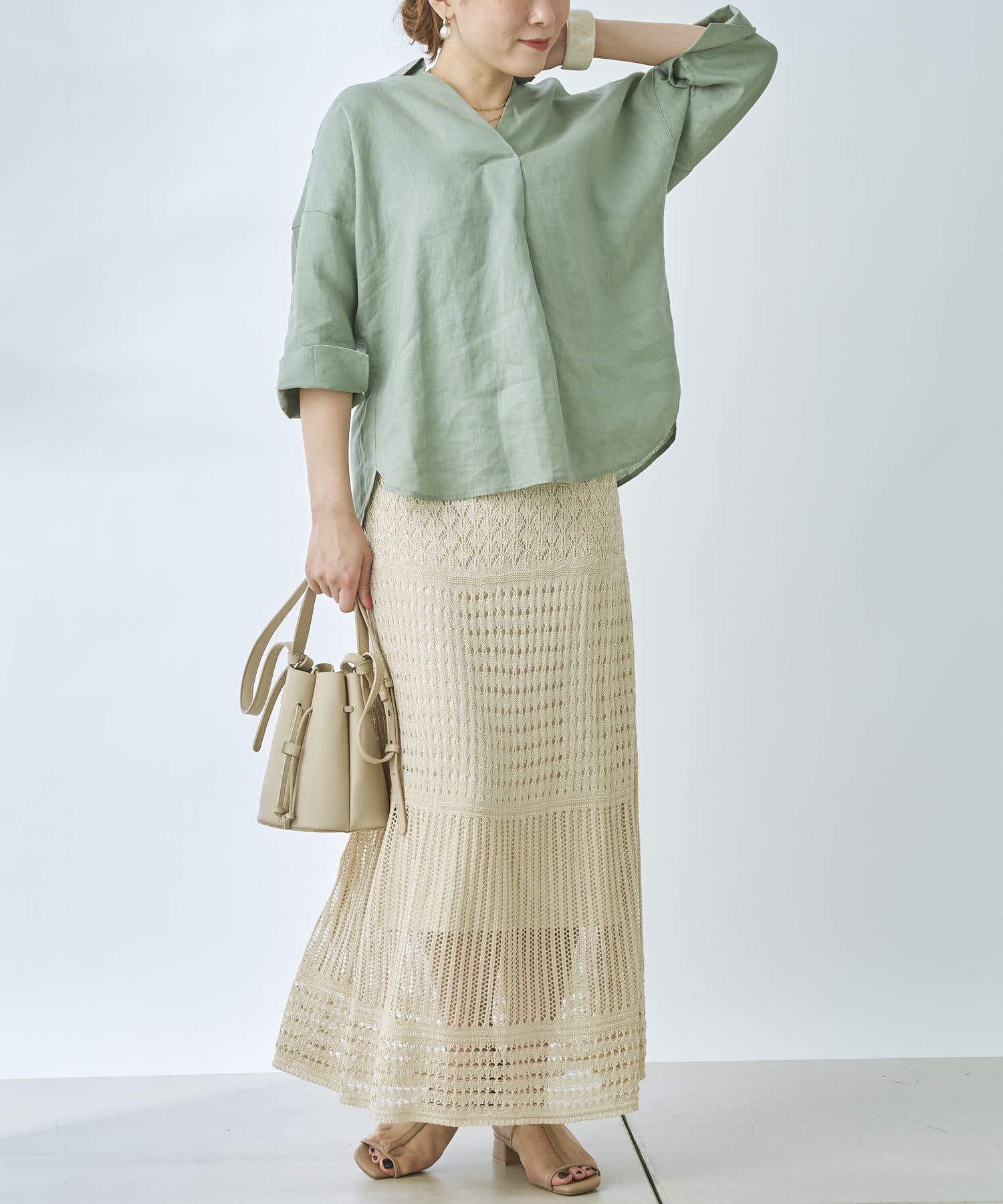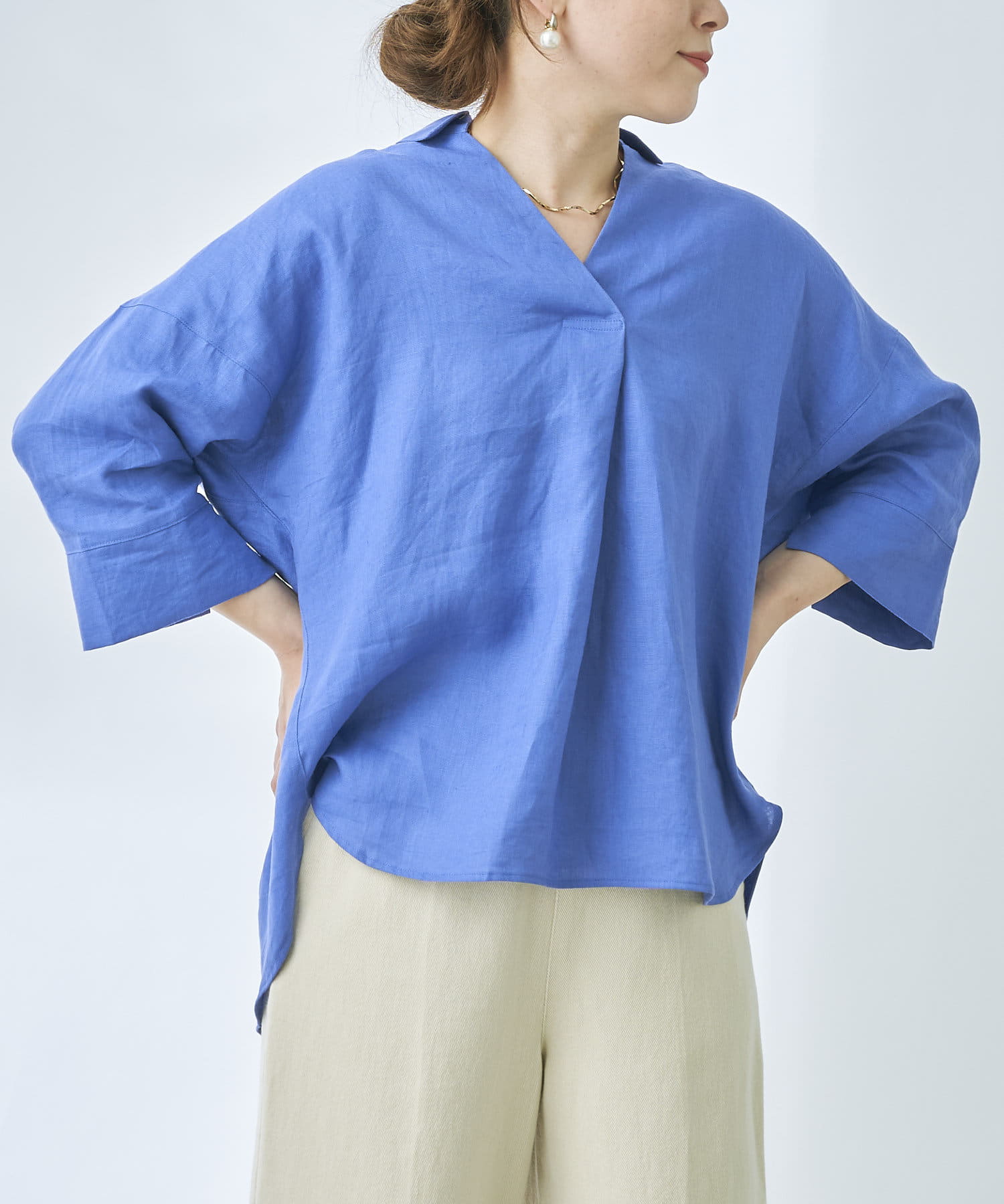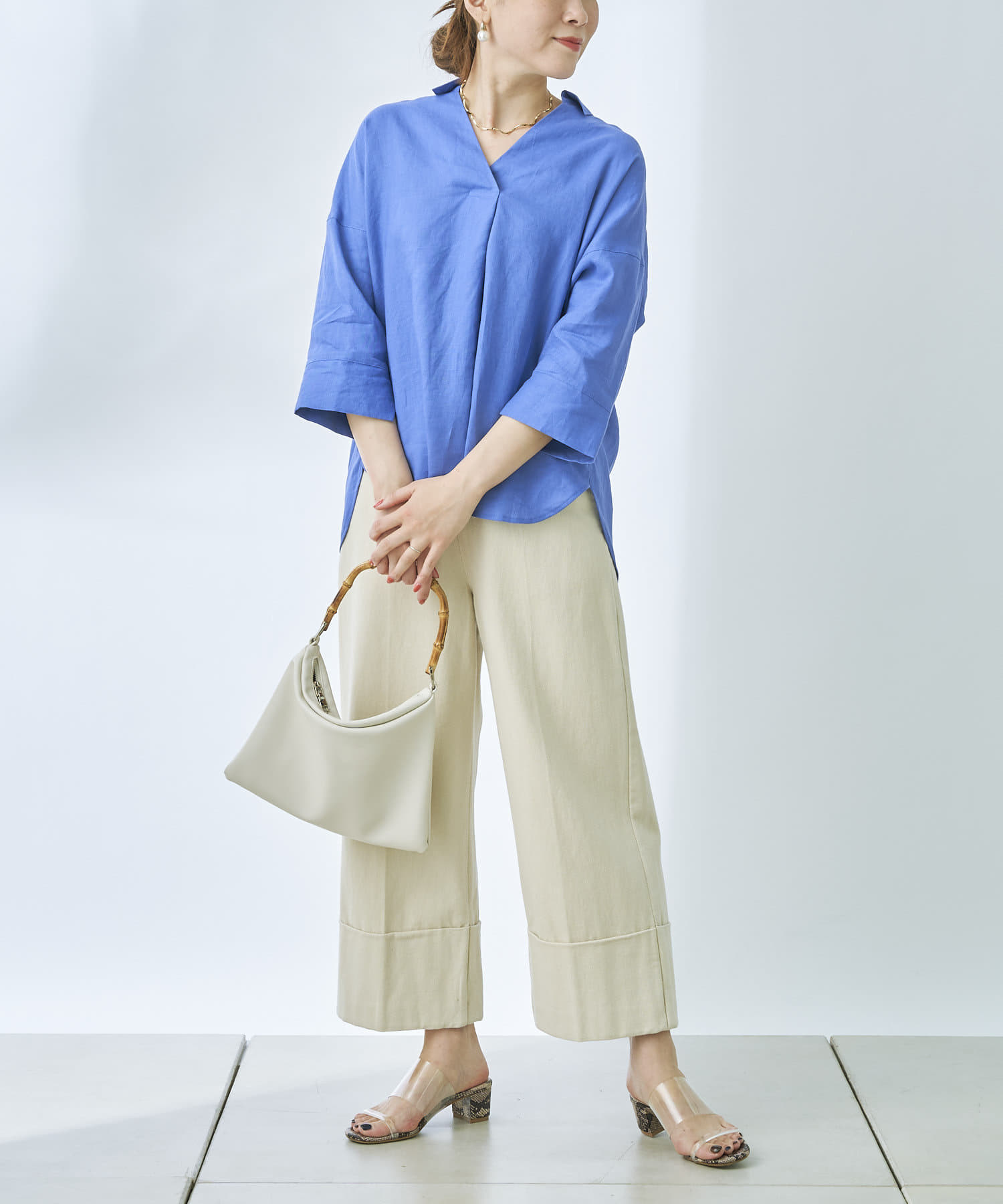 ●リネン100%なのでサラッと冷涼感のある柔らかな肌触りでロングシーズン活躍