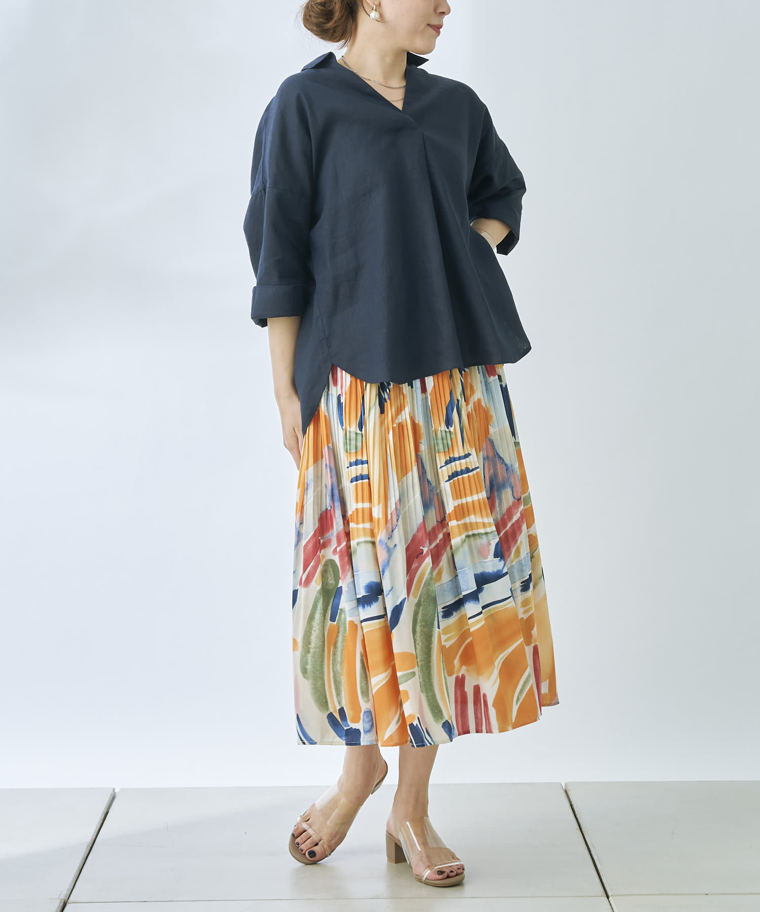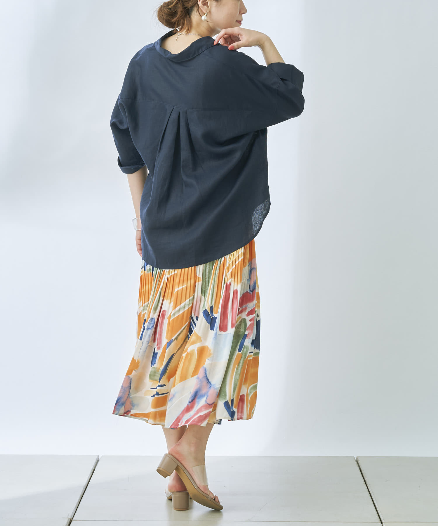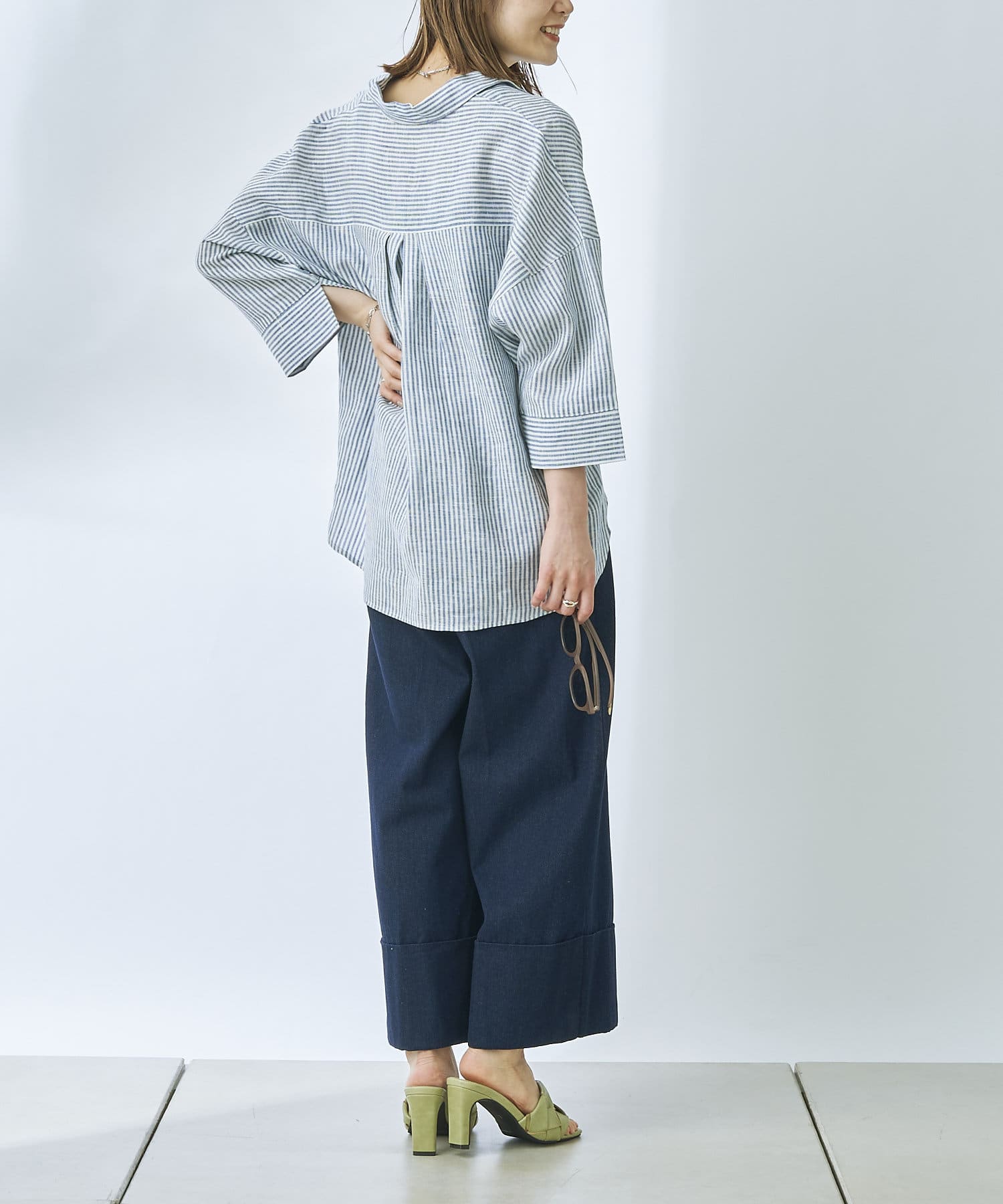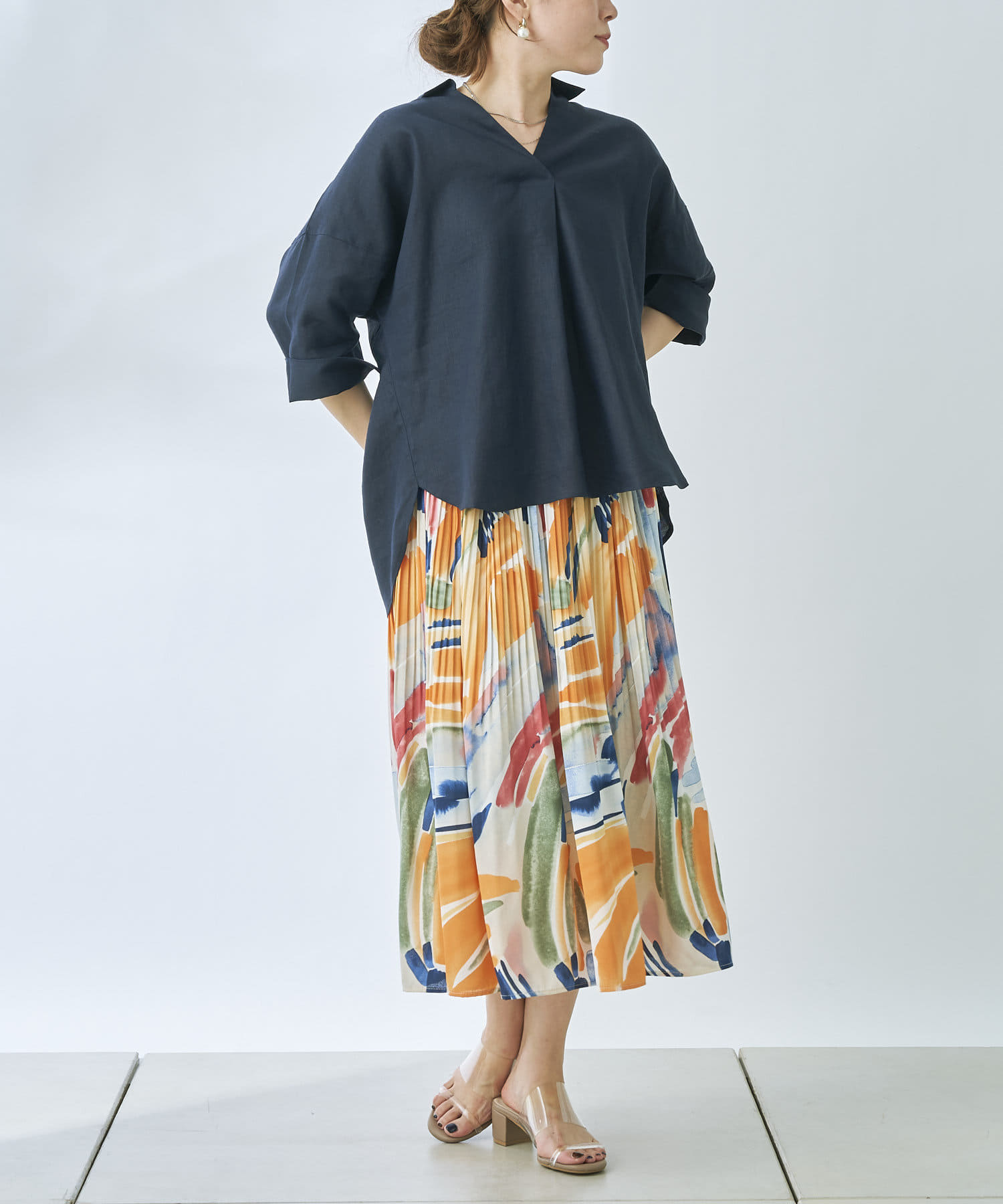 ●リネン100%なのでサラッと冷涼感のある柔らかな肌触りでロングシーズン活躍