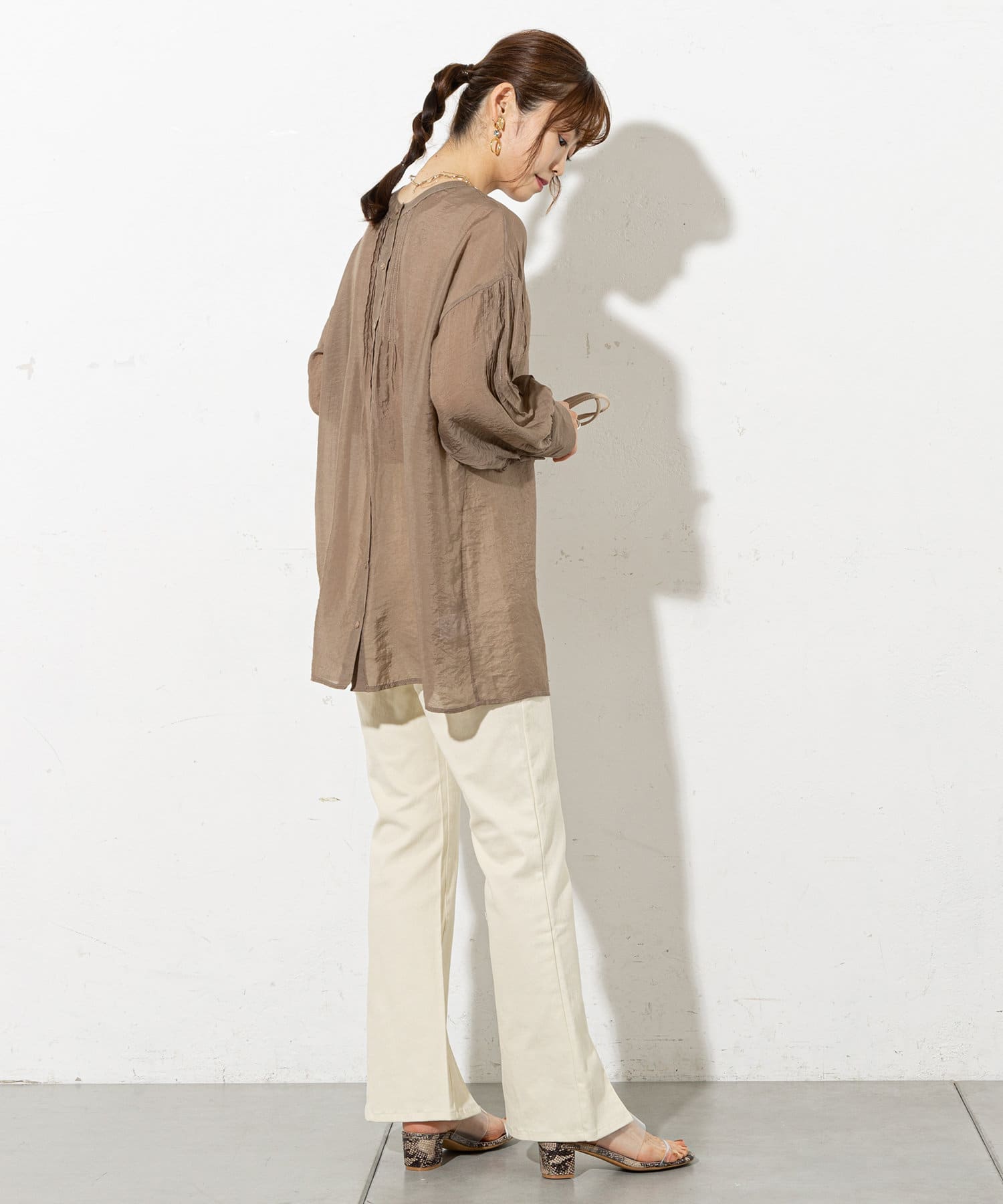 ・甘めブラウスと合わせたトレンドスタイルがオススメ