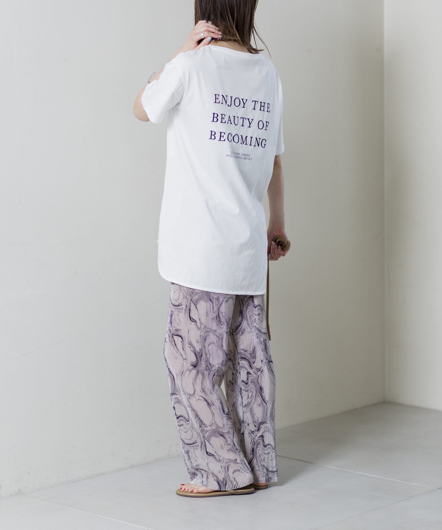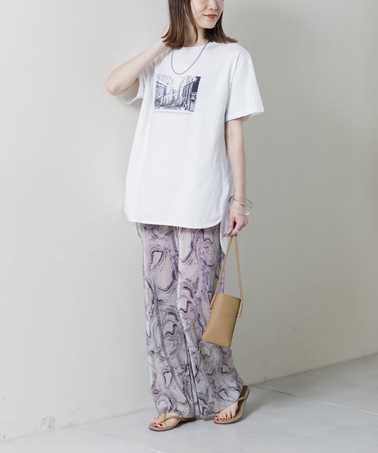 ●モノトーンのプリントと華奢ロゴが大人な印象に