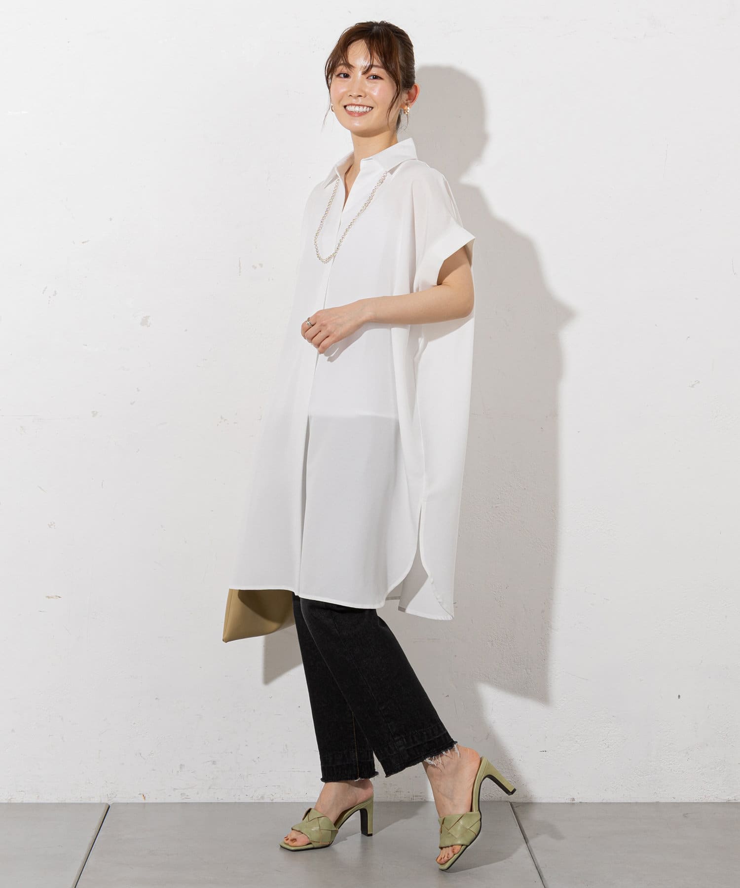 ●袖を折り上げたようなバンドスリーブがこなれた抜け感をプラス
