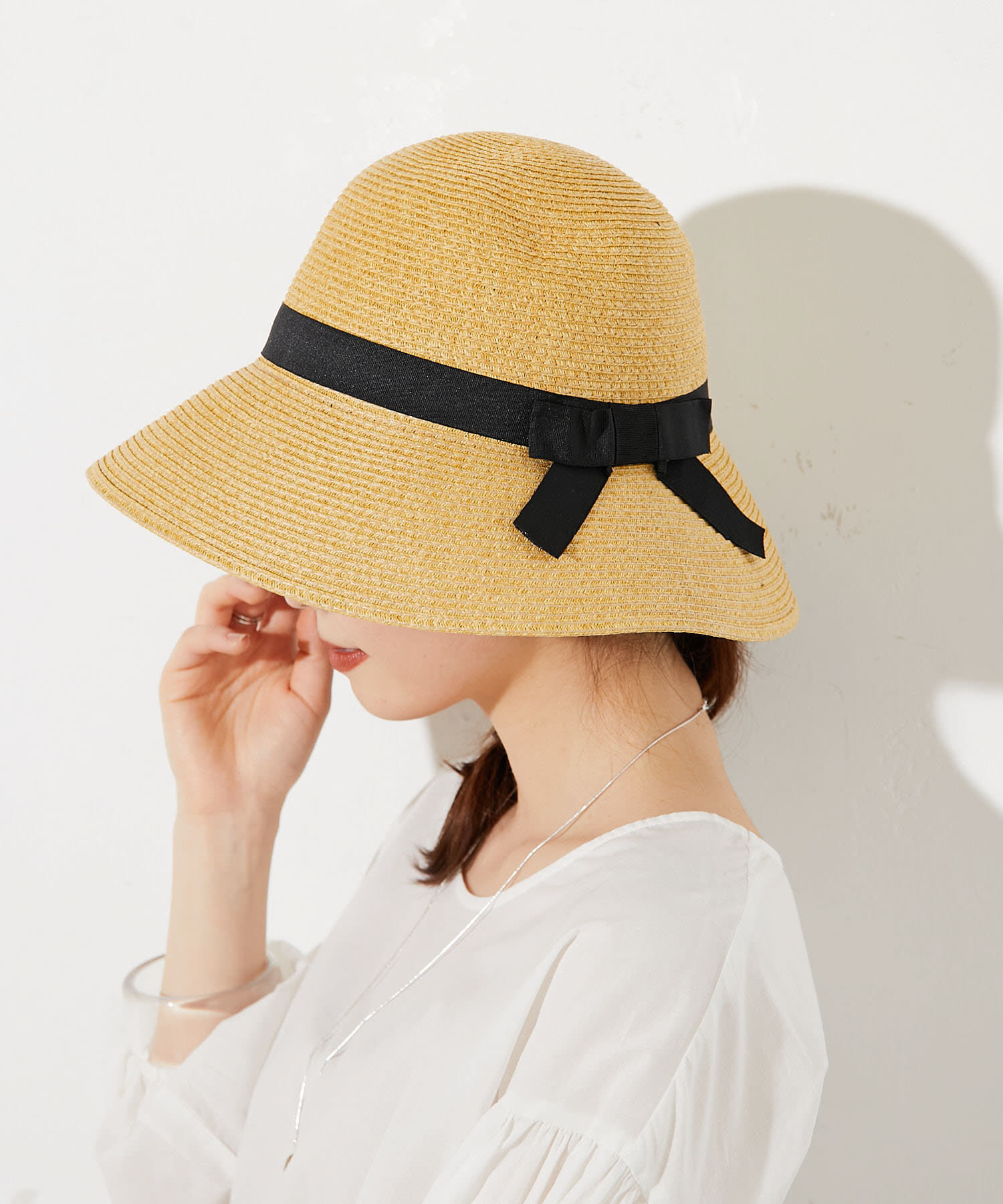 ポケッタブルリボン付きつば広ハット