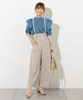 ・デザインブラウスを合わせてレディライクなトレンドスタイルに