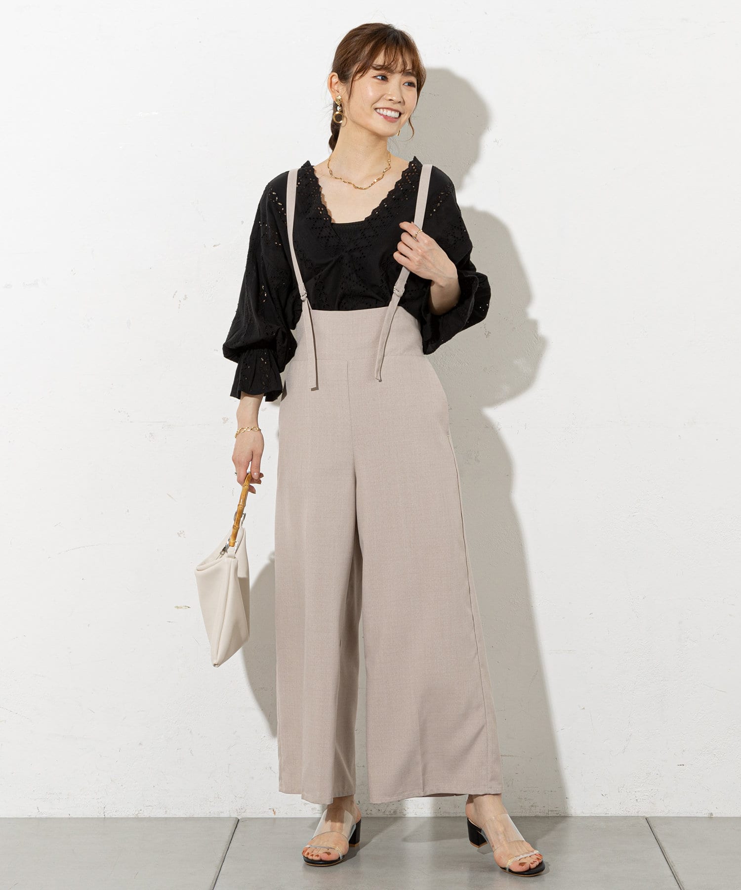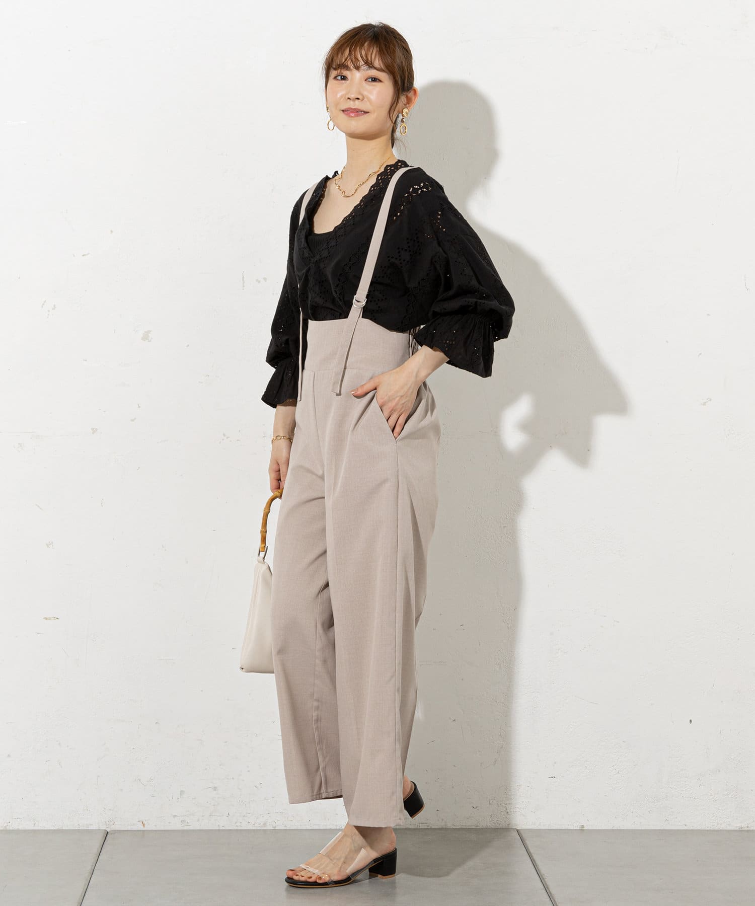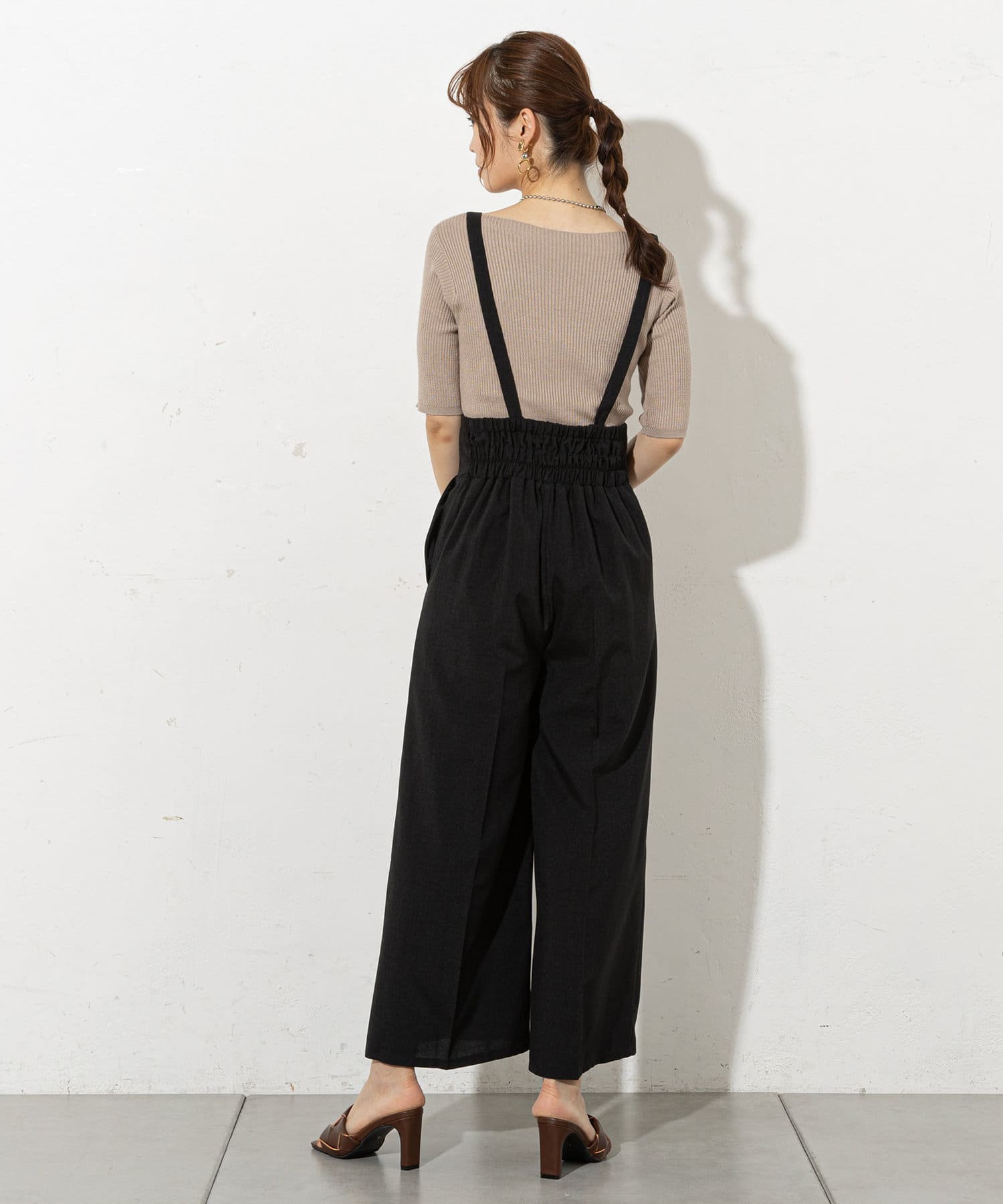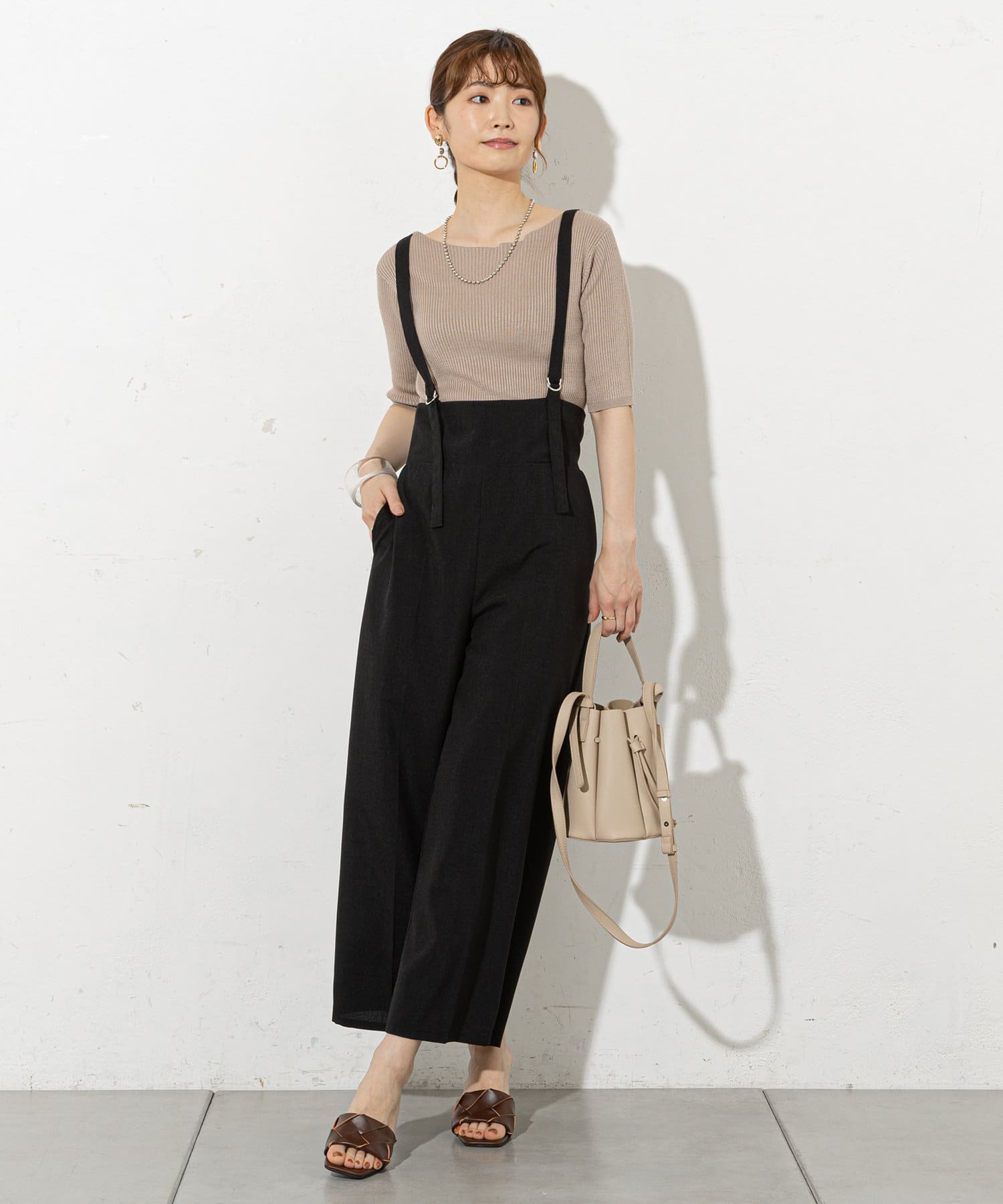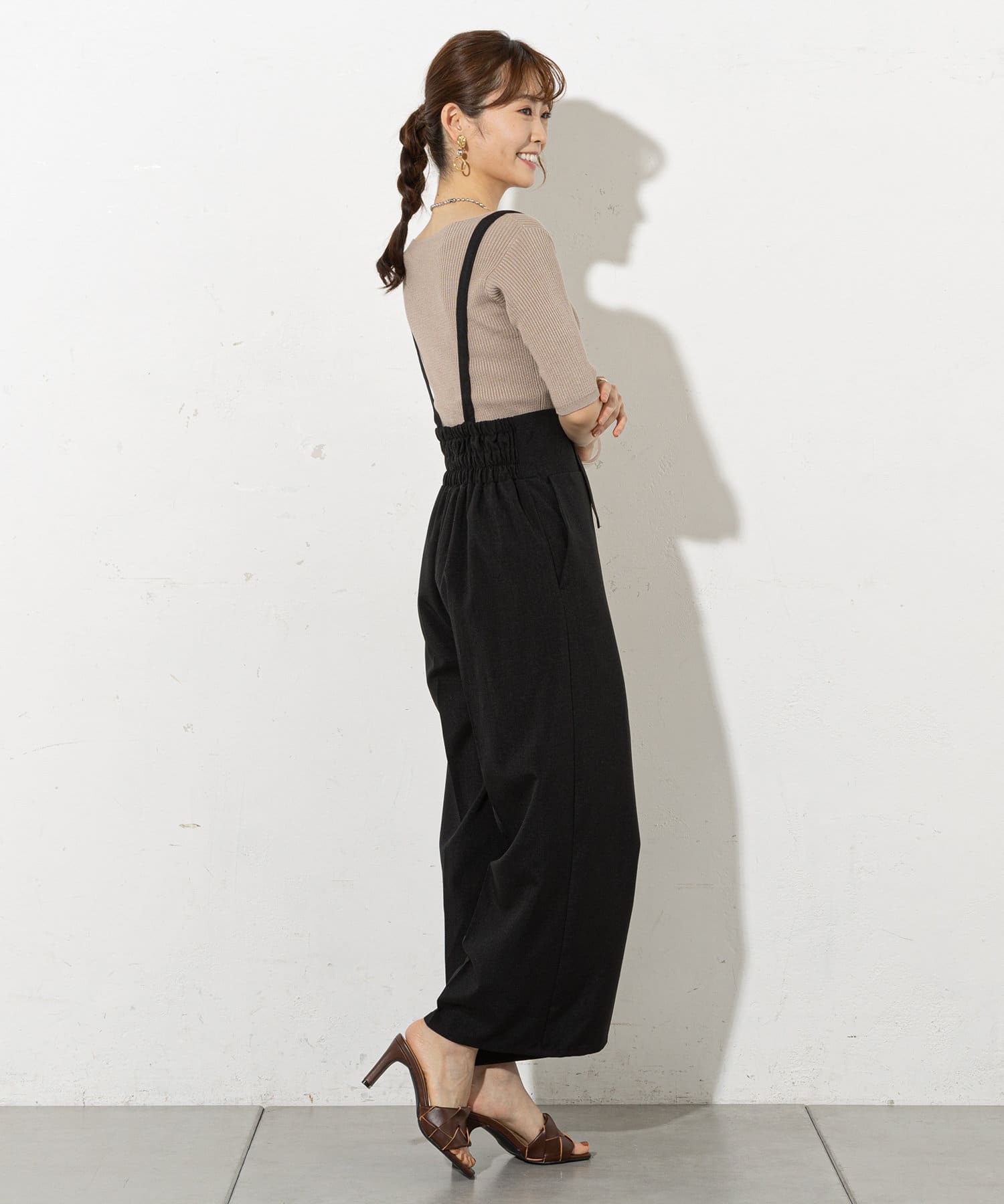 大人レディに着こなせるサスペンダーパンツ