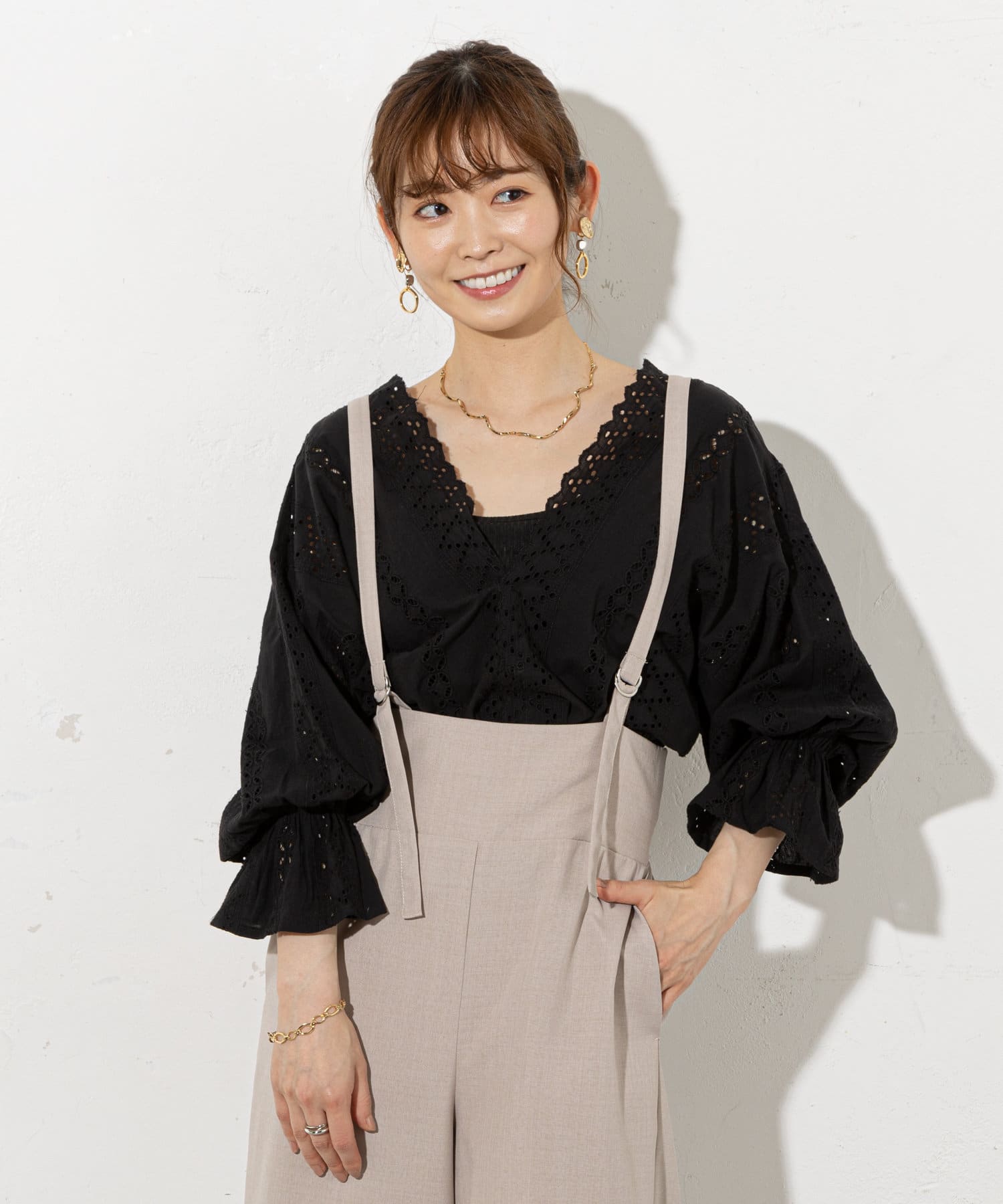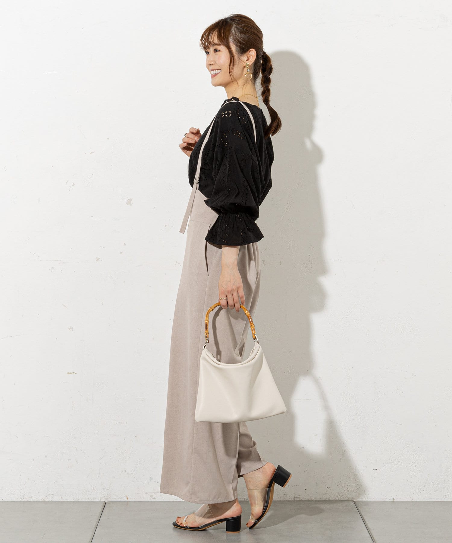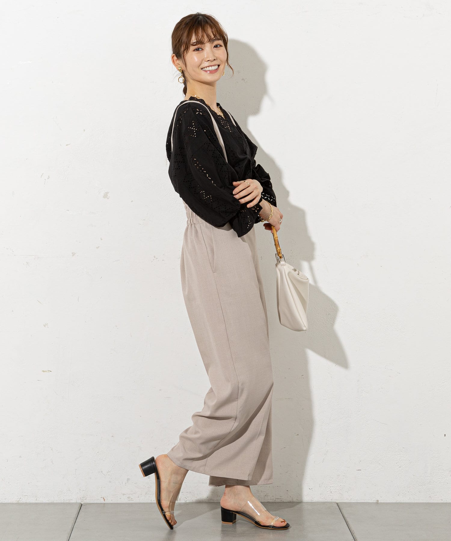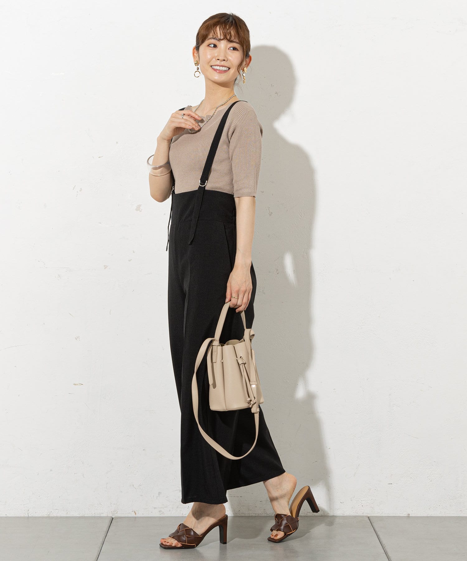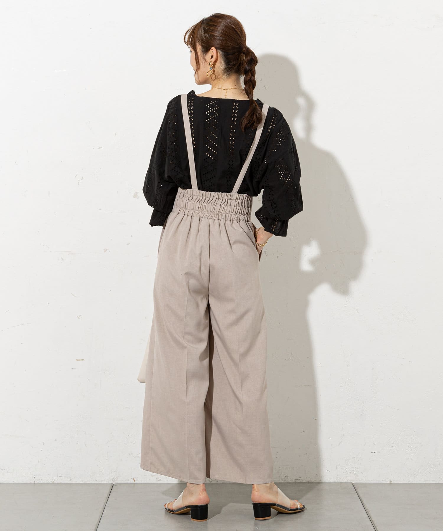 大人レディに着こなせるサスペンダーパンツ